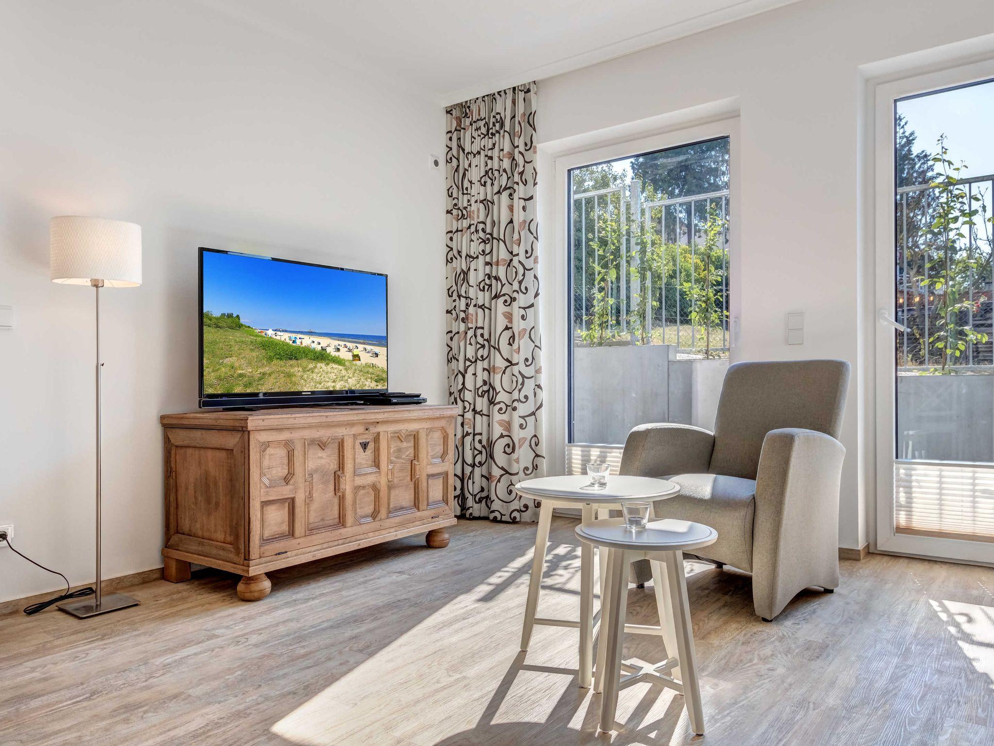 Neubau 2018 mit Fußbodenheizung. Modern eingerichtete 4-Zimmer-Wohnung mit Terrasse und Garten! Die Wohnung ist speziell für Familien mit (kleinen) Kindern gedacht, bietet aber auch bei Belegung mit 6 Erwachsenen den gewünschten Komfort.. Die Wohnung verfügt über drei separate Schlafzimmer (2 Doppelbetten, 1 Doppelschrankbett), jeweils mit zugehörigem ensuite-Bad, Wohnzimmer mit Küchenzeile und Essplatz. Von den drei Bädern sind zwei Duschbäder und eines mit Wanne und Dusche. Im eingezäunten Garten befindet sich ein kleiner Privat-Spielplatz mit Sandkasten und Spielgerät. Eines der drei Schlafzimmer (mit dem Wannenbad ensuite) verfügt über zwei Kinderreisebetten, 2 Kinderhochstühle, Wickelkommode, eine kleine Auswahl Spielzeug und ein hochwertiges ausklappbares Schrankbett, damit es auch erwachsene Gäste bequem nutzen können. Zwei Pkw-Stellplätze sind inklusive. Die Villa Teutonia liegt etwa 300m von der Strandpromenade entfernt. Zum Ortszentrum und der bekannten Ahlbecker Seebrücke sind es ca. 8-10 Minuten zu Fuß.