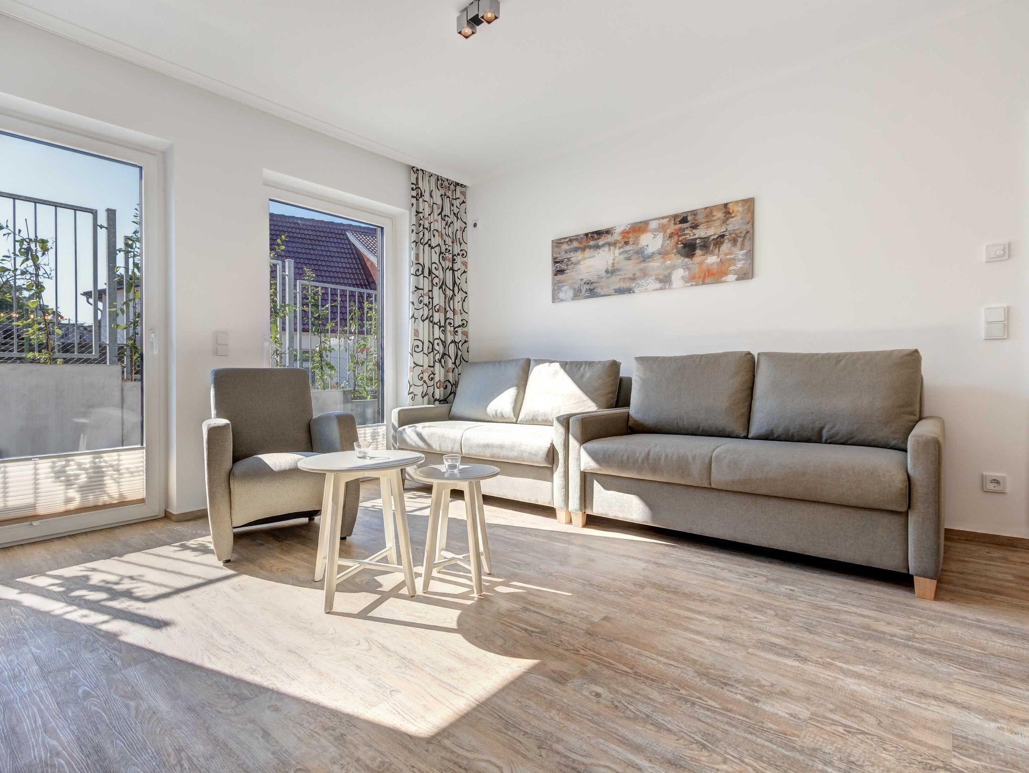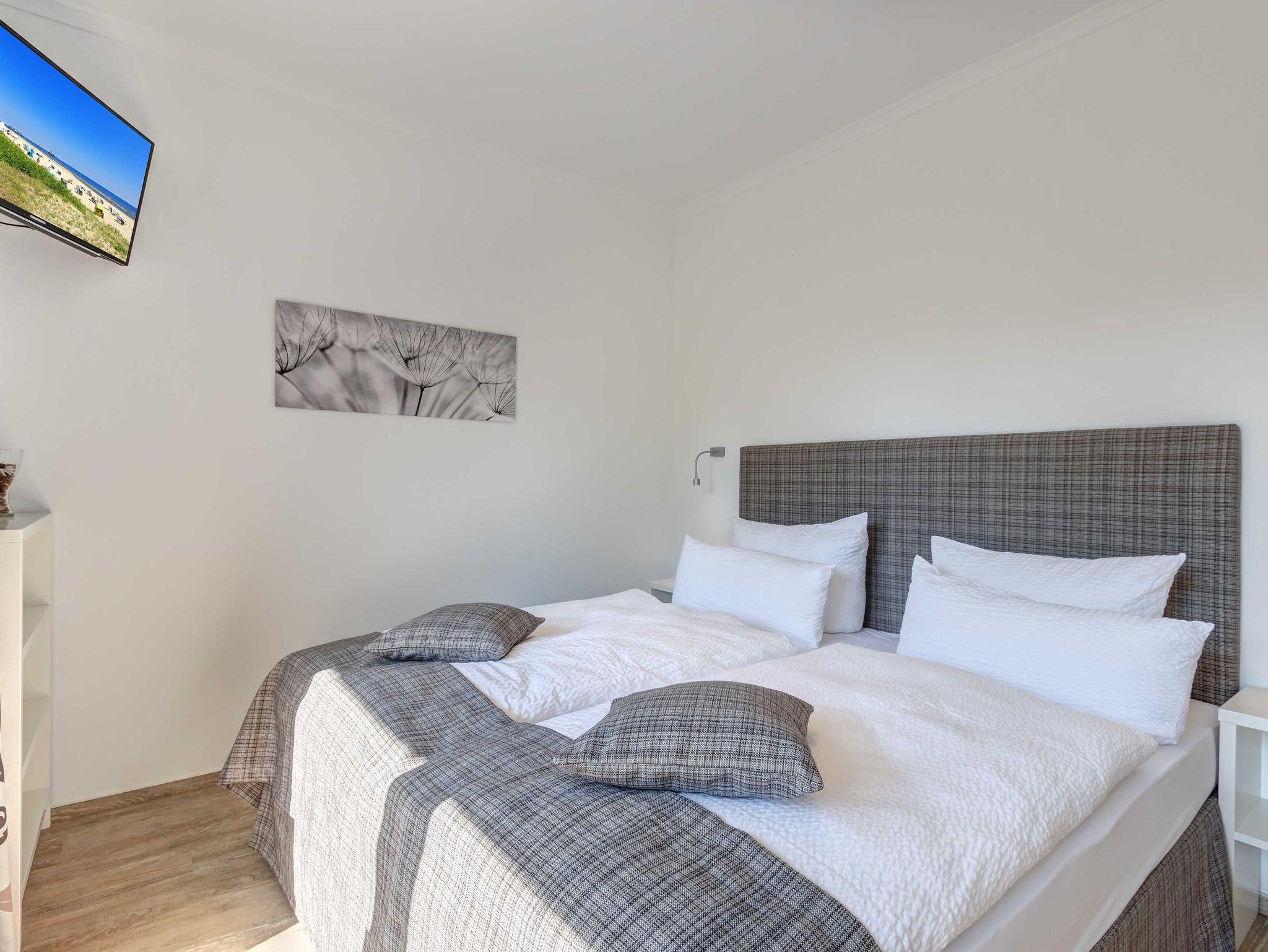 Neubau 2018 mit Fußbodenheizung. Modern eingerichtete 4-Zimmer-Wohnung mit Terrasse und Garten! Die Wohnung ist speziell für Familien mit (kleinen) Kindern gedacht, bietet aber auch bei Belegung mit 6 Erwachsenen den gewünschten Komfort.. Die Wohnung verfügt über drei separate Schlafzimmer (2 Doppelbetten, 1 Doppelschrankbett), jeweils mit zugehörigem ensuite-Bad, Wohnzimmer mit Küchenzeile und Essplatz. Von den drei Bädern sind zwei Duschbäder und eines mit Wanne und Dusche. Im eingezäunten Garten befindet sich ein kleiner Privat-Spielplatz mit Sandkasten und Spielgerät. Eines der drei Schlafzimmer (mit dem Wannenbad ensuite) verfügt über zwei Kinderreisebetten, 2 Kinderhochstühle, Wickelkommode, eine kleine Auswahl Spielzeug und ein hochwertiges ausklappbares Schrankbett, damit es auch erwachsene Gäste bequem nutzen können. Zwei Pkw-Stellplätze sind inklusive.