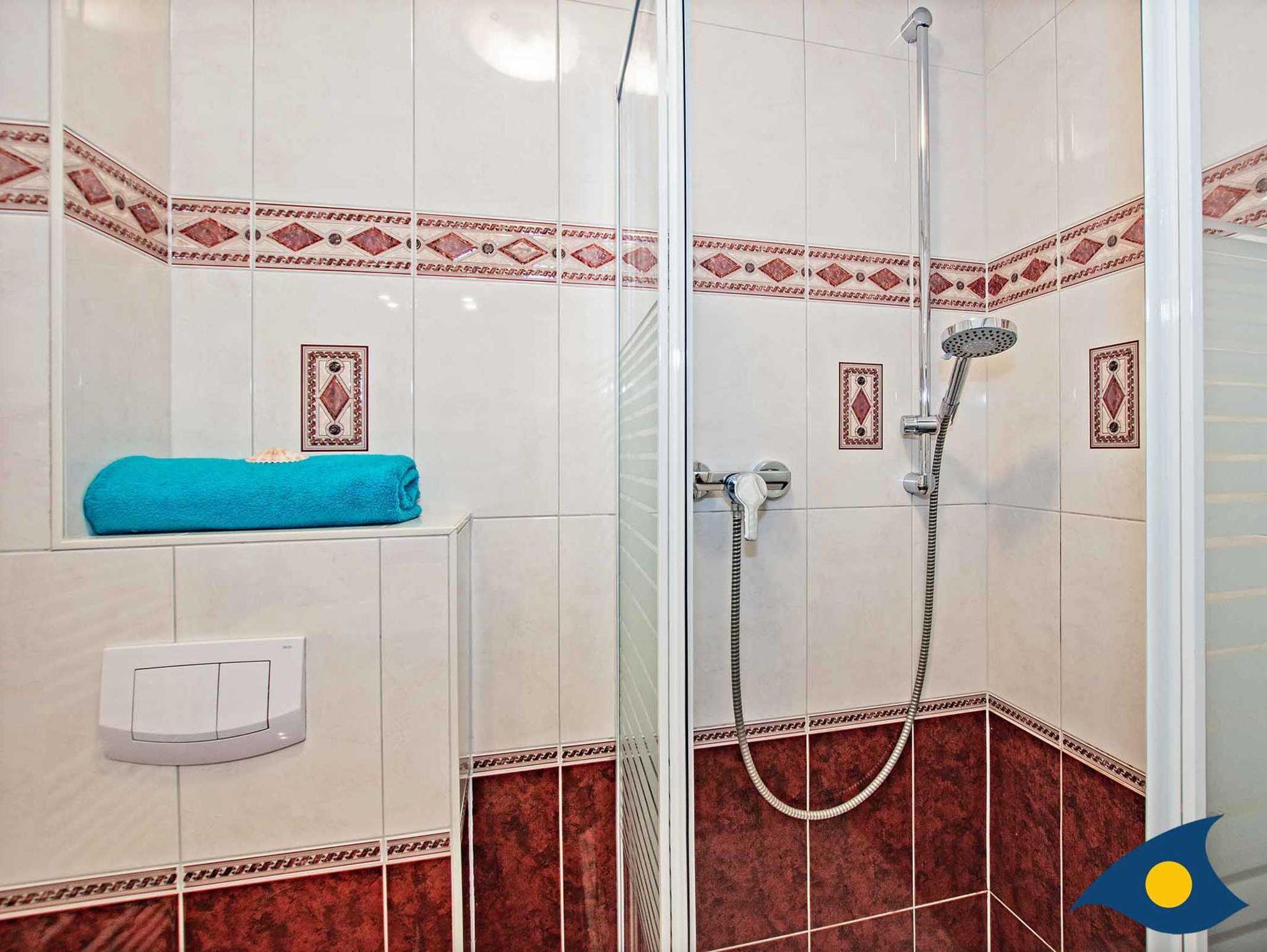 Die gemütliche, kleine Wohnung befindet sich in der ersten Etage des Hauses. Zum Wohnzimmer gehört eine komplett ausgestattete Küchenzeile. Die Couch (nicht ausziehbar) kann als Aufbettung für eine dritte Person genutzt werden. Schlafzimmer und Duschbad wurden liebevoll eingerichtet. In dem modernen Ambiente und in unmittelbarer Nähe zu Strand und Promenade können Sie erlebnisreiche, unvergessliche Urlaubstage verbringen.