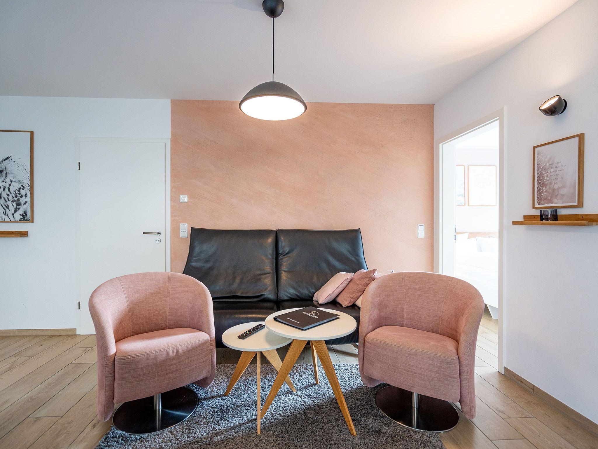 Die große Terrasse (25 Quadratmeter) ist sonnenüberflutet. Leise rauscht die Ostsee im Hintergrund. Der Nordwind trägt das Geräusch der nahen Wellen bis hierher in Ihr Urlaubsparadies. Die bequemen Gartenmöbel laden zum Relaxen und Ausspannen ein. Was will man mehr! Drinnen wartet auf 63 Quadratmeter ein stilvolles Interieur nur darauf, die Auszeit an der Ostsee so angenehm wie möglich zu machen. Vom gemütlichen Ledersofa aus haben Sie einen freien Blick auf den urigen Gas-Kamin, einen großen Flat-TV und auf das viele Grün, das das Domizil Berg 8 umgibt. Modern und trendy ist der schöne Ess-Tresen mit den hohen Schalenhockern. In den Tresen ist auf einer Seite eine freie Kochinsel eingelassen. Dahinter öffnet sich der Raum zu einer vollausgestatteten Küche mit hochwertigen Markengeräten und edlem Geschirr. Auch der Schlaf kommt in diesem wunderschönen Appartement natürlich nicht zu kurz. Zwei eigens dafür konzipierte Räume können bis zu vier Personen nicht nur schnöde beherbergen, sondern ihnen dank der beiden bequemen Doppelbetten (1,80 m x 2,00 m) eine wunderbar angenehme Entspannungszone bieten. Beide Zimmer haben einen Flat-TV. Und eines der beiden Schlafzimmer verfügt sogar über einen eigenen, kleinen Balkon (4 Quadratmeter). Auch das Badezimmer ist ein Ort zum Wohlfühlen und Runterkommen. Eine Panoramasauna sorgt für kuschelige Wärme an kühlen und tristen Tagen. Eine Dusche, ein Waschtisch und ein WC sind hier ebenfalls vorhanden. Außerdem gibt es ein Gäste-WC. Das WLAN ist in der Wohnung kostenfrei. Hier fängt der Urlaub bereits an der Haustür an. Denn alles ist für Sie vorbereitet. So sind die Betten bereits bezogen, wenn Sie anreisen und Handtücher liegen bereit. Ein wohnungseigener Pkw-Stellplatz befindet sich am Haus. Zudem besitzt die Wohnung Nummer 3 einen Abstellraum für Fahrräder. Auch Ihr kleiner Vierbeiner ( bis 7 kg) ist willkommen (gegen eine Haustierendreinigung).