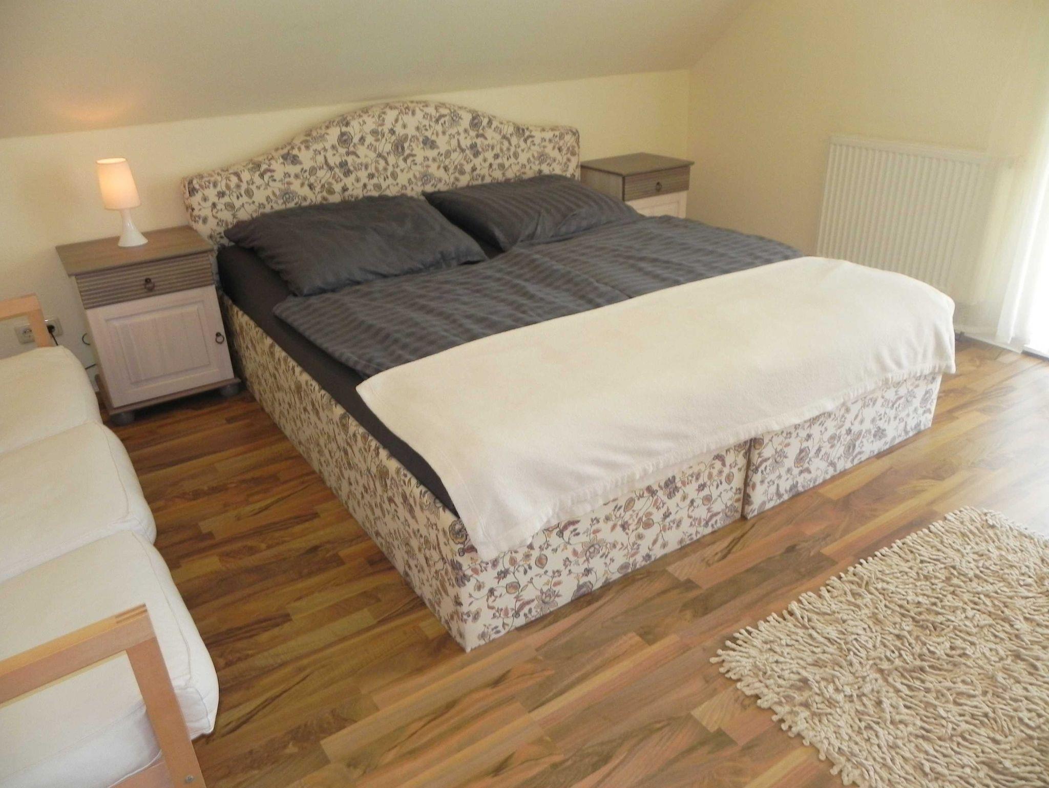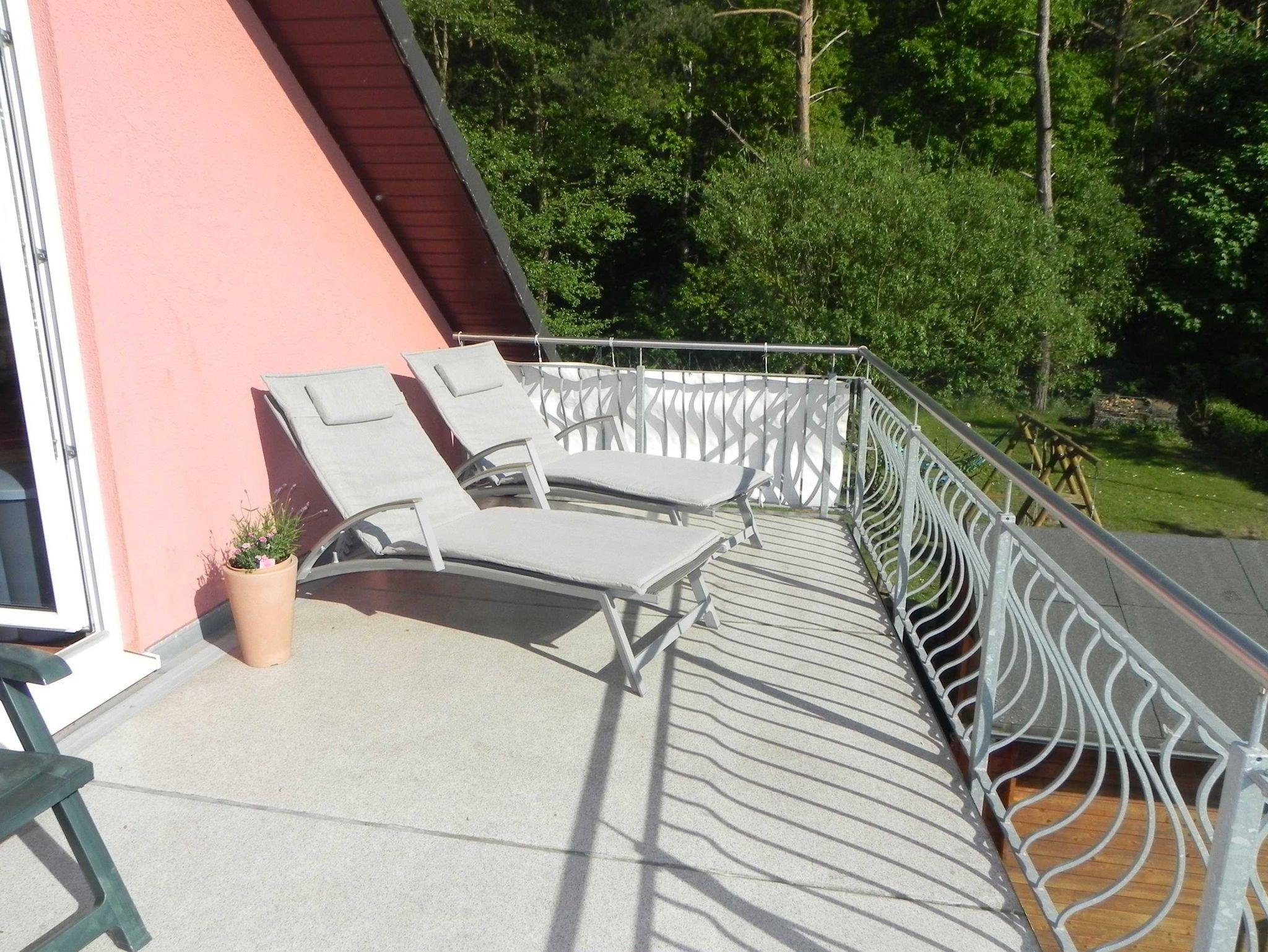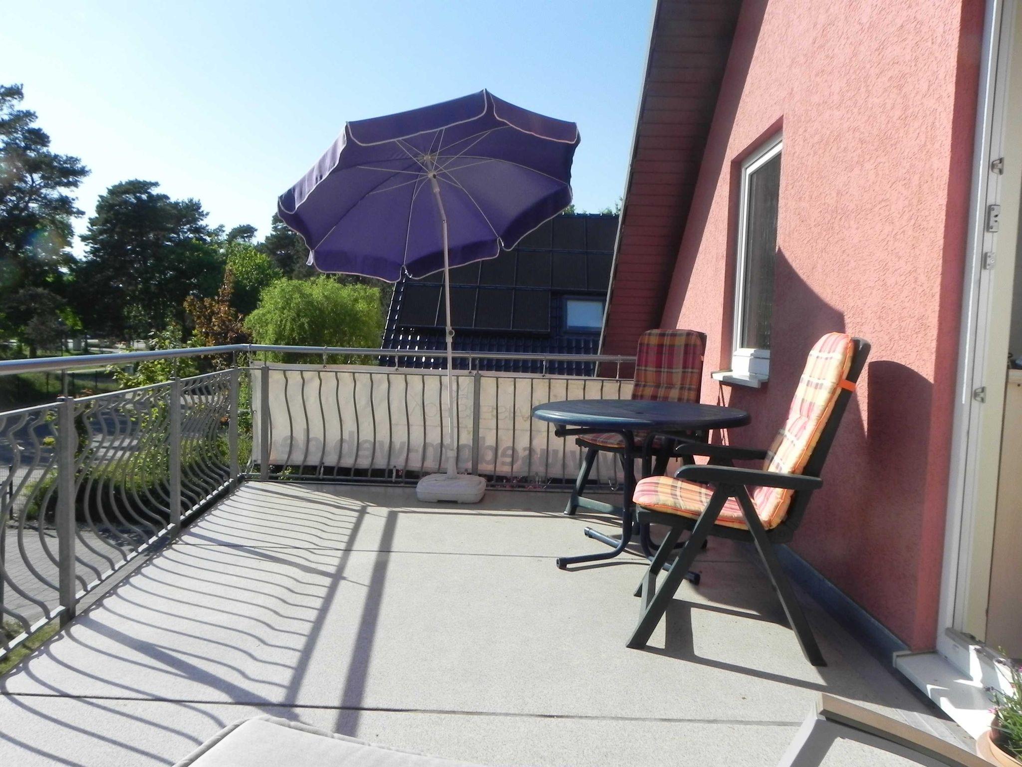 Die moderne, sonnige 2 Raum Ferienwohnung ist für maximal 3 Erwachsene und 1 Kind im Alter von 8 Jahren oder für 2 Erwachsene und 2 Kinder geeignet. Zur Ausstattung gehören ein Schlafzimmer mit Doppelbett und ein Schlafsofa, ein Wohnbereich mit Schlafcouch, Bad mit Badewanne. Der zum Süden ausgerichtete großzügige Balkon mit Elektrogrill lädt zum Verweilen ein.