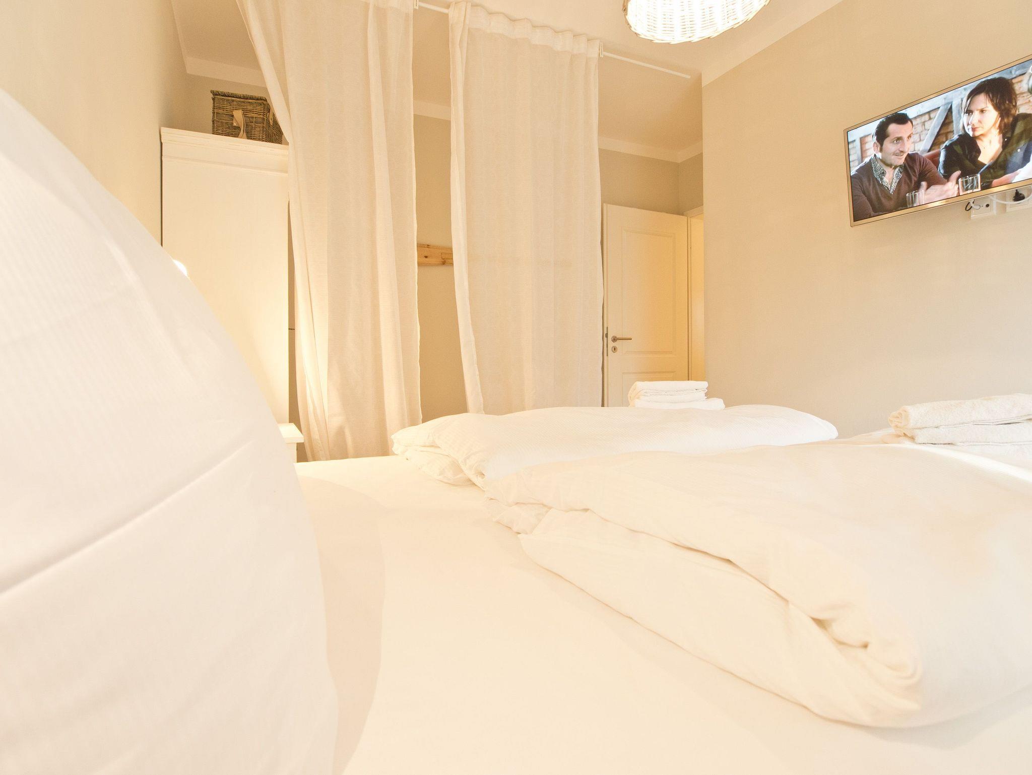 Ankommen und wohlfühlen! Im Erdgeschoss des Hauses erwartet Sie eine wunderschöne 3-Raum-Ferienwohnung (70 qm) im Beachstyle! Helle Farben und Stoffe wurden mit schönen Holzmöbeln kombiniert und durch geschmackvolle Dekorationen liebevoll ergänzt. Ein perfektes Domizil für 4 Personen und ein Kleinkind (bis 3 Jahre im Kinderreisebett). An den Wohnbereich mit bequemer Sitzgruppe, Flat-TV und schönem Gaskamin (per Fernbedienung zu benutzen) schließt sich die offene, komplett ausgestattete Küche mit Essplatz an. Zwei Schlafzimmer mit Doppelbetten und ein Bad mit Echtglasdusche und WC ergänzen die Wohnung. Für Ihren Komfort steht die Erstausstattung Wäsche (Bettwäsche [&] Handtücher) für Sie bereit. Die schöne Westterrasse ist mit Gartenmöbel ausgestattet. Ein PKW-Stellplatz steht Ihnen am Haus zur Verfügung. Das WLAN-Netz ist kostenfrei nutzbar.