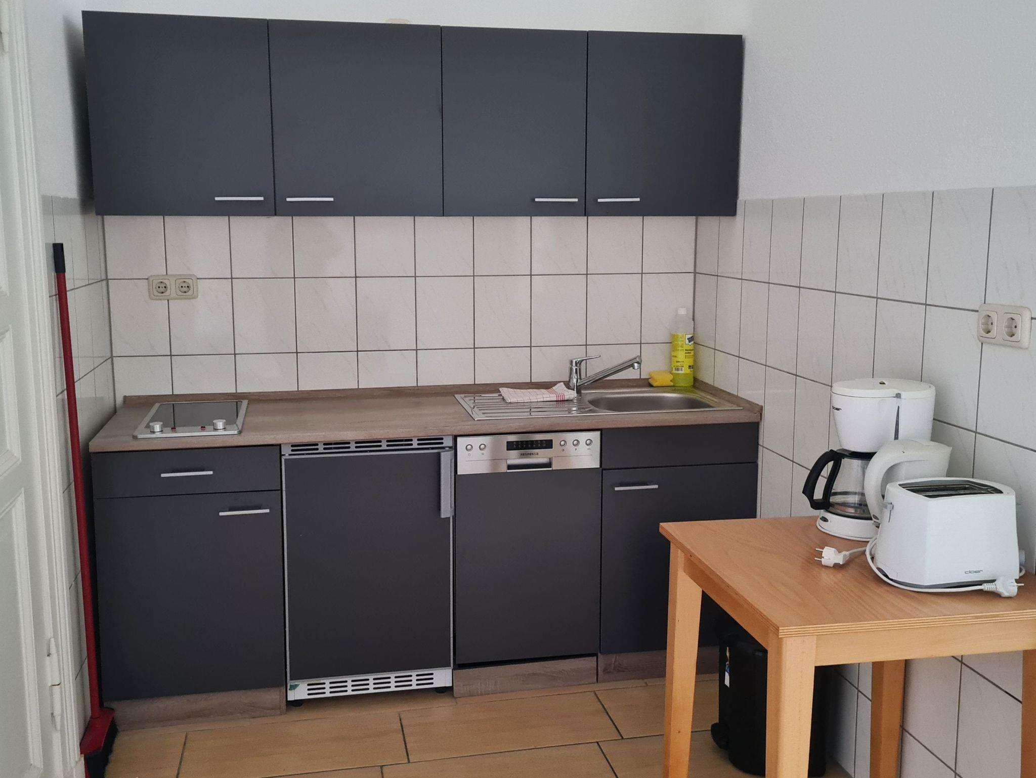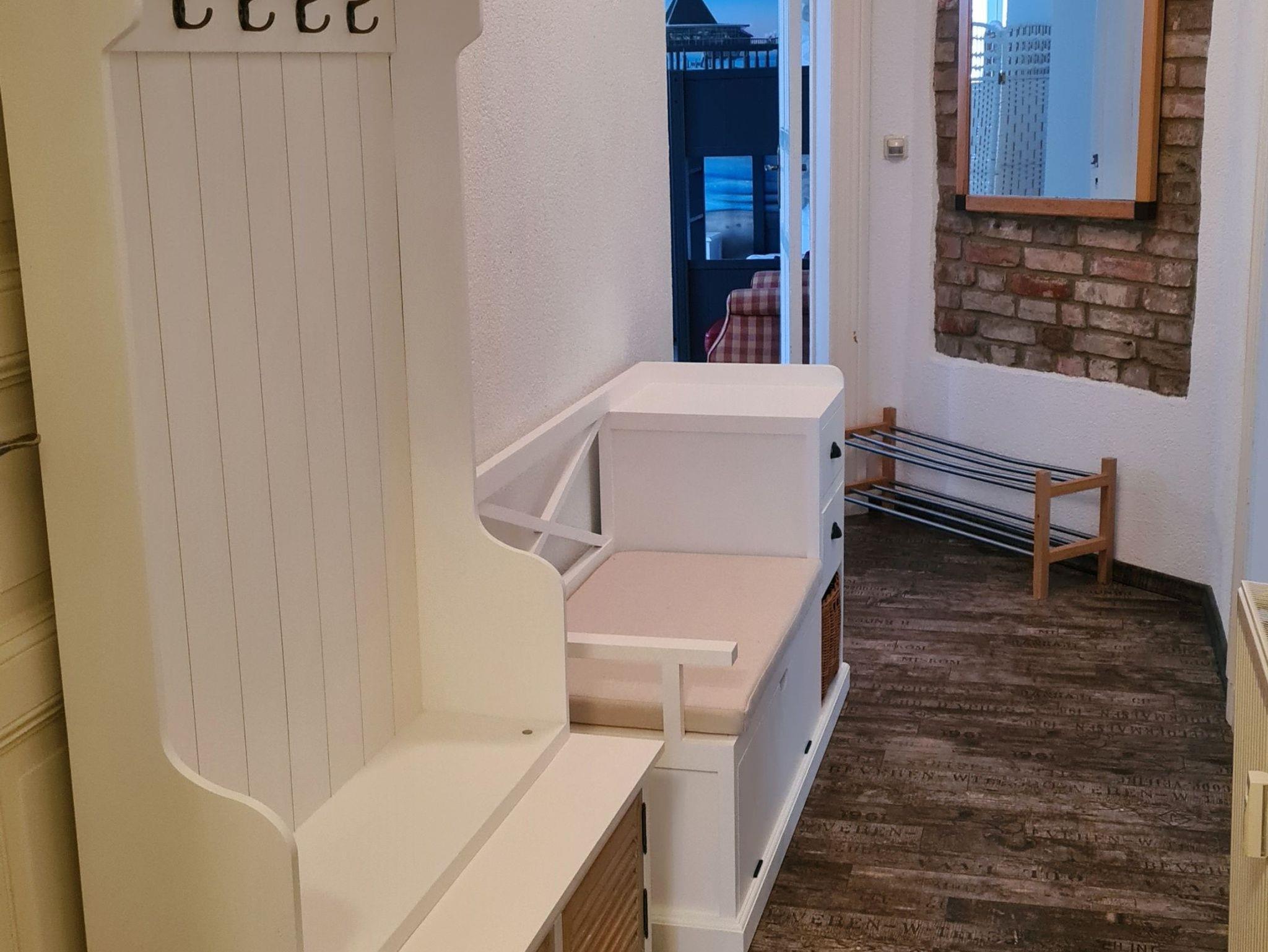 Die 61 qm große Ferienwohnung befindet sich im Obergeschoss und ist mit einem Wohnzimmer mit Sitzeck und TV und einer kleinen Küchenzeile mit Kühlschrank und Gefriermöglichkeit, 2-Platten-Ceranherd, Spülmaschine etc ausgestattet. Das Schlafzimmer verfügt über ein Doppelbett und einem Etagenbett. Bad mit Dusche und WC.