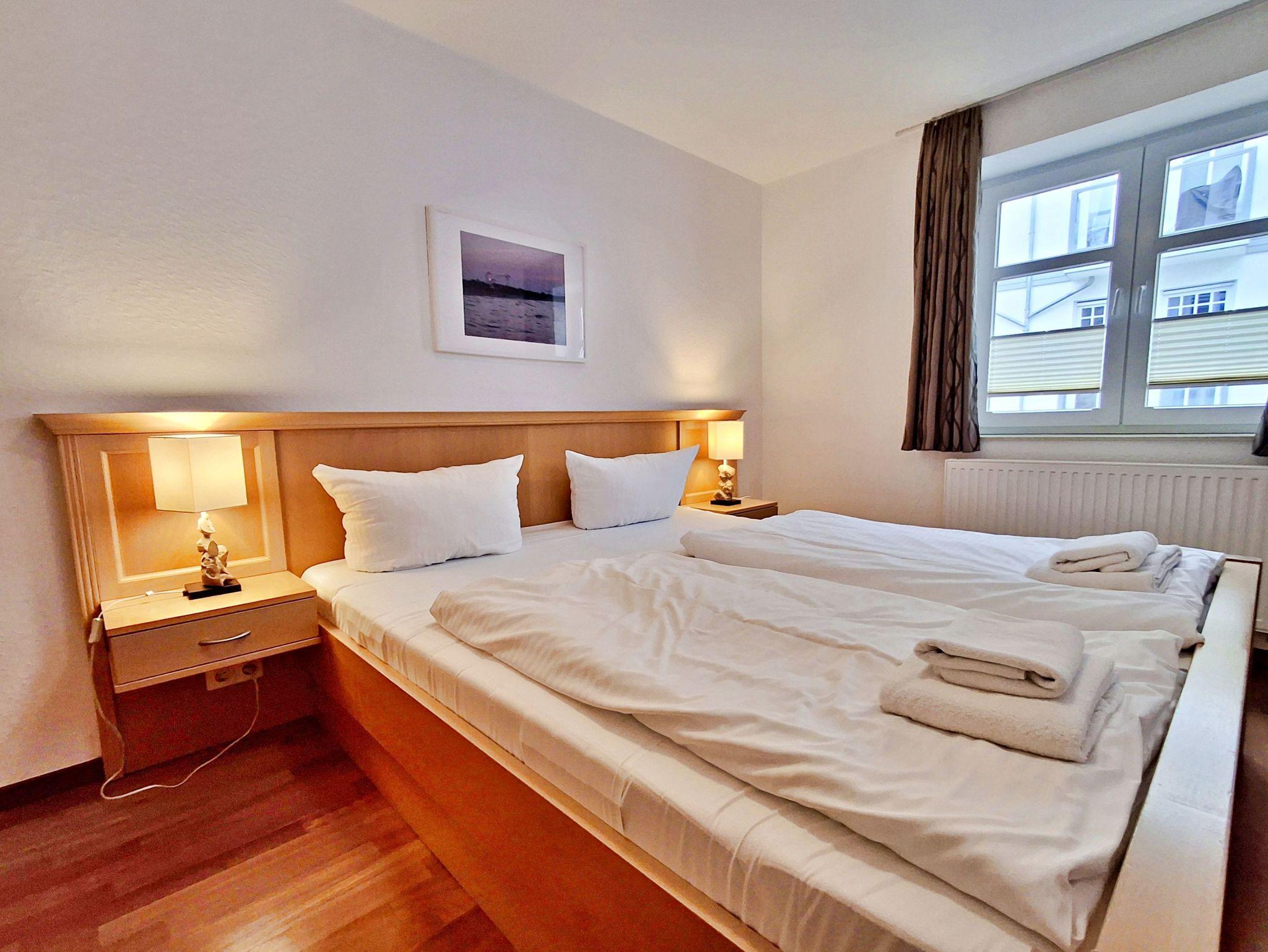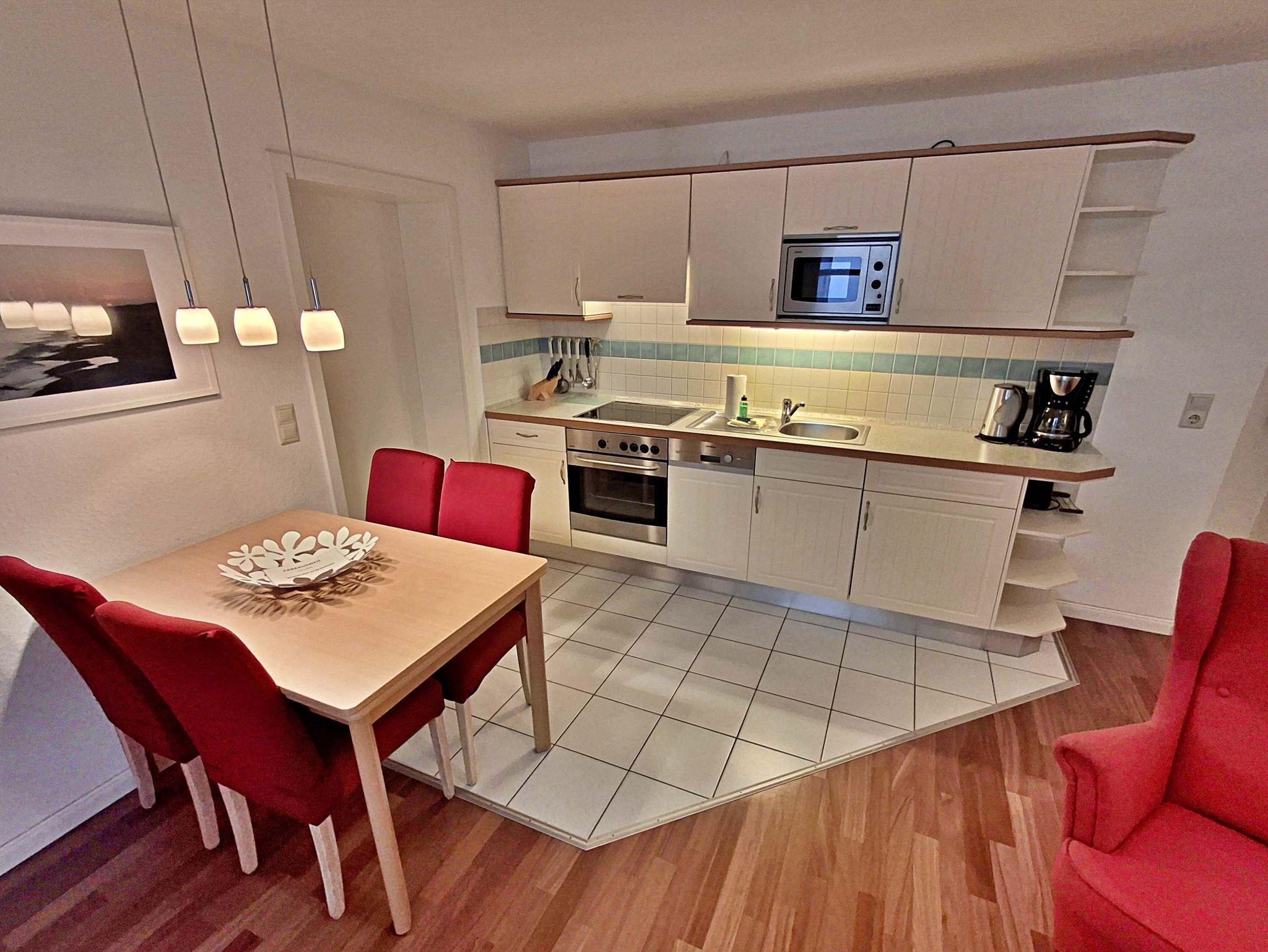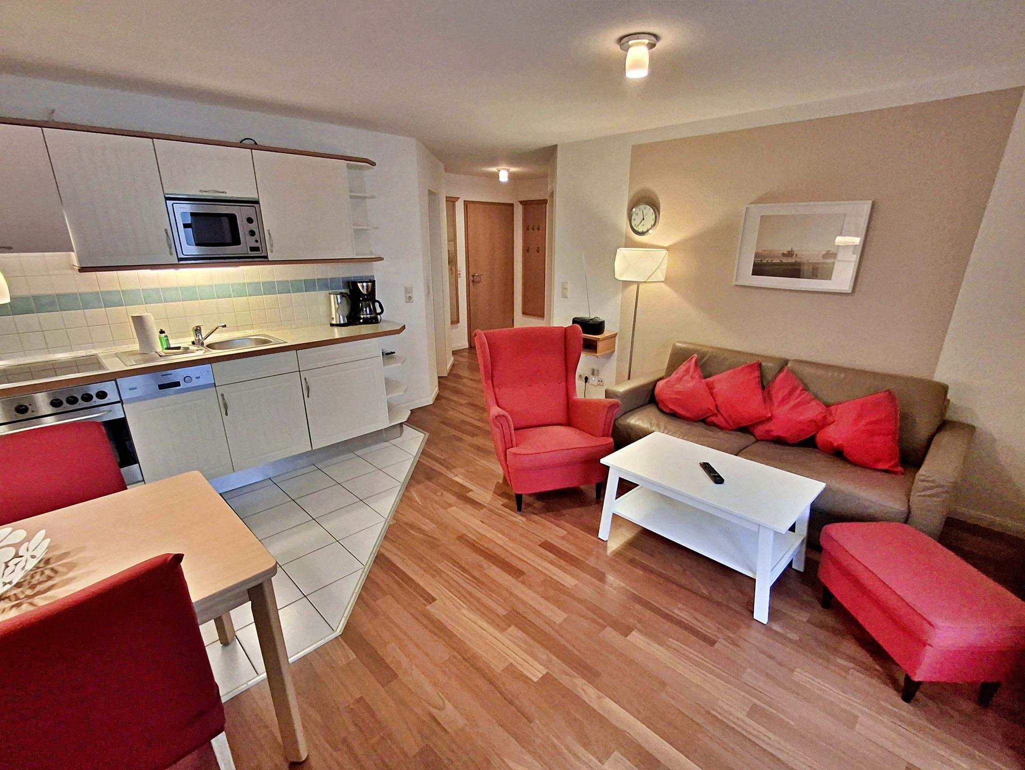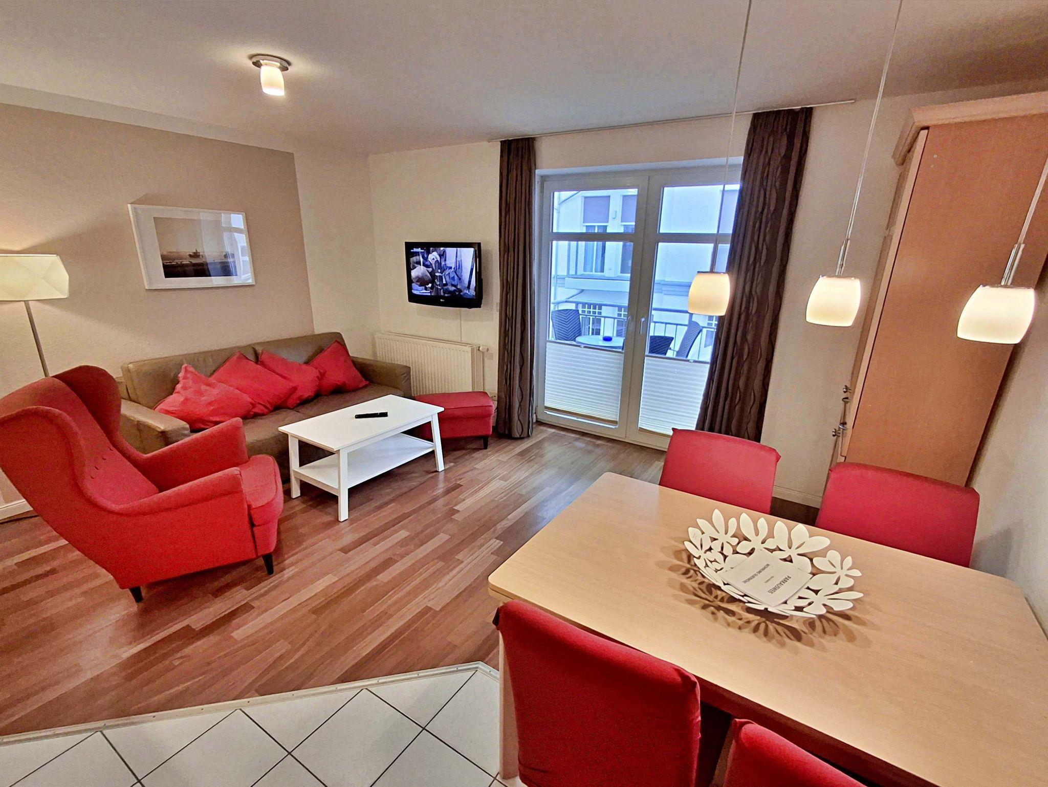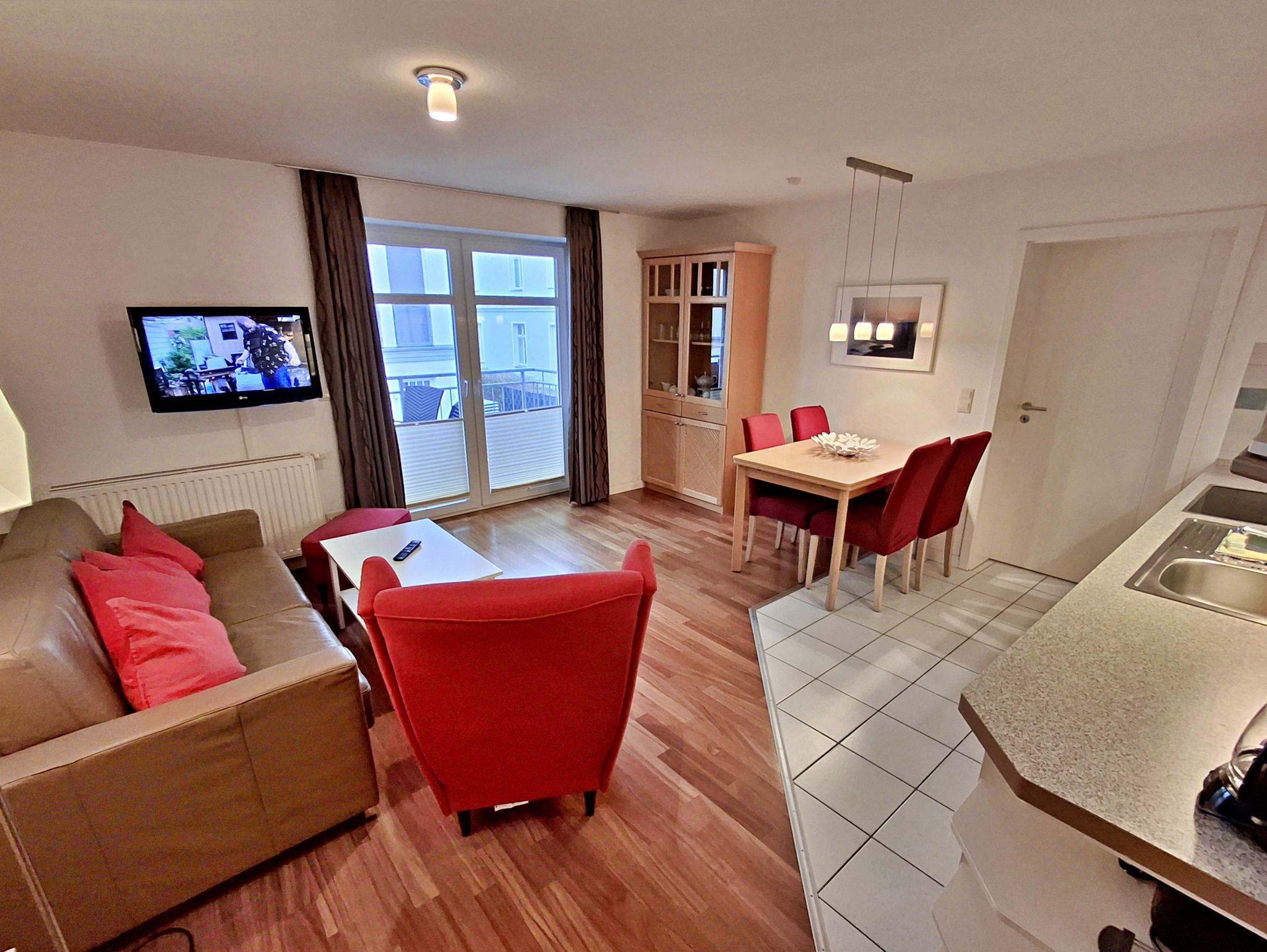 Die freundliche 3-Zimmer-Wohnung Silbermöwe in der 1. Etage mit Balkon für max. 4 Erwachsene und 1 Kind bis 14 Jahre befindet im Nebengebäude der stilvoll restaurierten Villa Ahlbeck - nur wenige Schritte von der Promenade und dem Strand entfernt. Im Wohnbereich befinden sich neben der gemütlichen Couch auch ein Sessel mit passendem Fußhocker sowie ein Esstisch mit 4 Stühlen. Das Highlight der Wohnung ist der Balkon in Nord-Ost-Ausrichtung, wo Sie bei schönem Wetter bereits morgens Ihren Kaffee genießen oder den Abend bei einem Glas Wein ausklingen lassen können. Die moderne Küchenzeile mit Ceranherd, Backofen, Geschirrspüler, Mikrowelle, Kaffeemaschine, Wasserkocher und Toaster lässt keine Wünsche offen. Für die Unterhaltung sorgen ein Flachbild-TV, Radio-CD-Player und kostenfreies W-LAN. Die beiden Schlafzimmer verfügen jeweils über ein Doppelbett und hochwertigem Frame-TV. Das Badezimmer hat DU/WC.