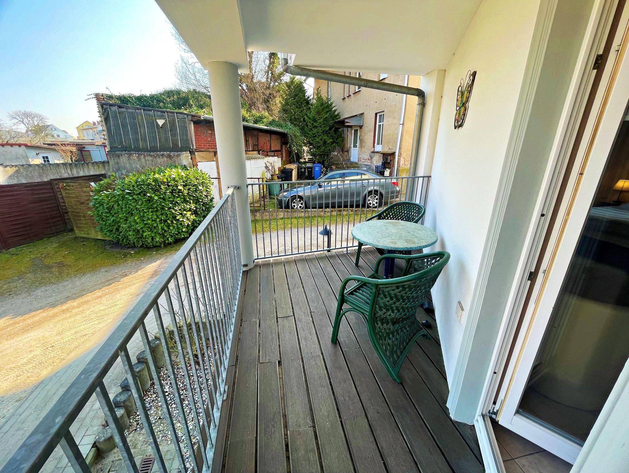 Die zweckmäßig, aber modern ausgestattete Nichtraucher-Ferienwohnung in Hochparterre mit Terrasse ebenerdig zur Straßenseite und Balkon (Hochparterre / Ostseite) zur Hofseite befindet sich im Appartementhaus Villa Aida, das im Stil der Bäderarchitektur 2004 neu erbaut wurde. Das Appartementhaus liegt in einer ruhigen Nebenstraße ca. 30m von einem kleinen Park mit Springbrunnen entfernt.