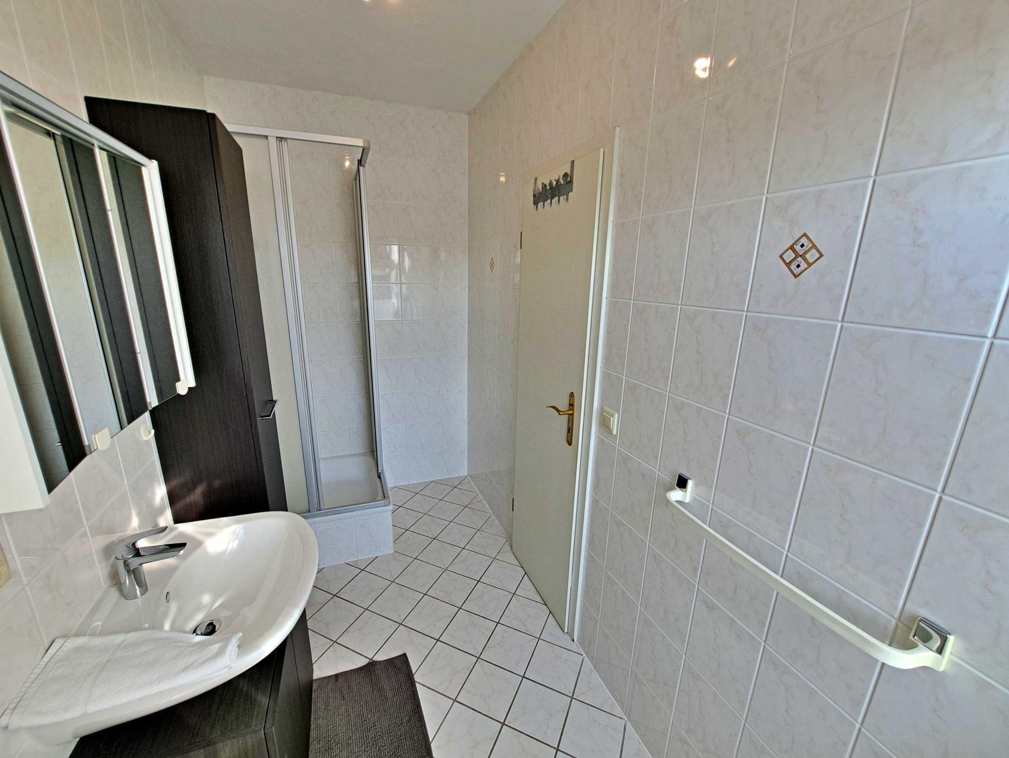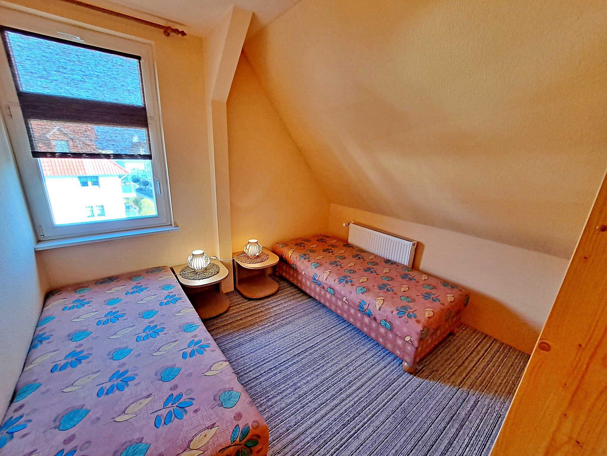 Diese großzügige ca. 70 qm große Unterkunft ist ideal für Ihren entspannten Aufenthalt und befindet sich im Dachgeschoss der Villa Haus Bella! Im einladenden Wohnzimmer finden Sie eine bequeme Couchgarnitur, Flachbild-TV, einen Esstisch mit vier Stühlen sowie eine praktische Pantry-Küche, ausgestattet mit einem Zwei-Platten-Herd, Toaster, Wasserkocher, Kaffeemaschine, Geschirr und Kühlschrank. Die Wohnung bietet Ihnen außerdem zwei gemütliche Schlafzimmer: eines mit einem Doppelbett und das andere mit zwei Einzelbetten. Das helle Tageslicht-Bad mit Dusche und WC erreichen Sie bequem direkt von einem der Schlafzimmer aus. Für Ihren Komfort stehen Ihnen der Parkplatz am Haus und WLAN selbstverständlich kostenfrei zur Verfügung.