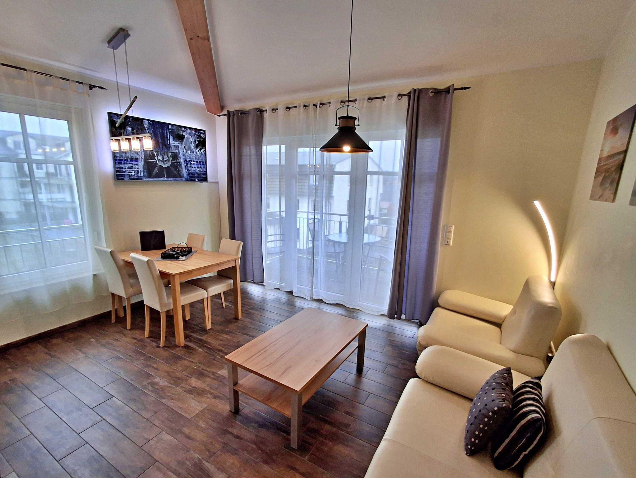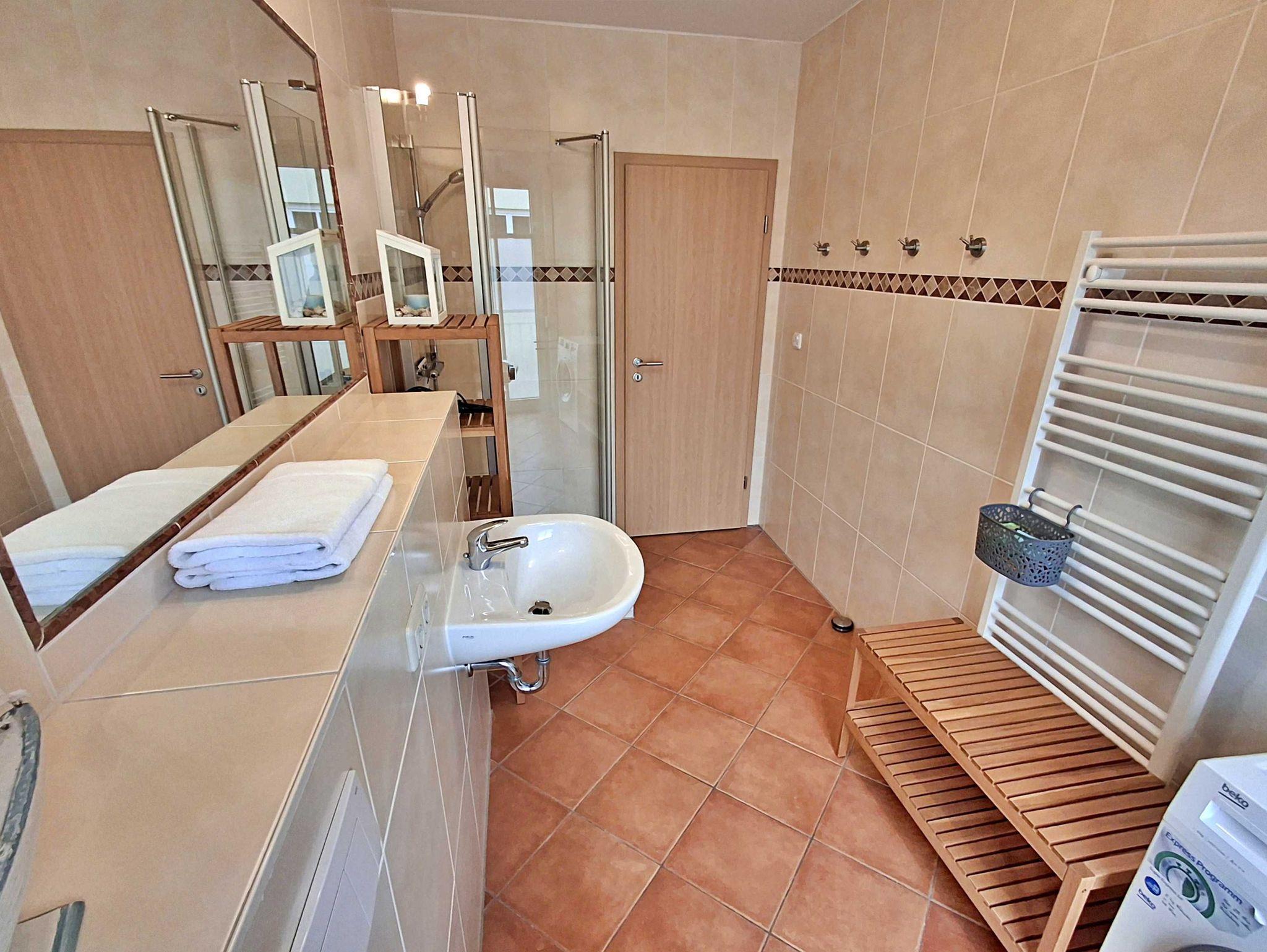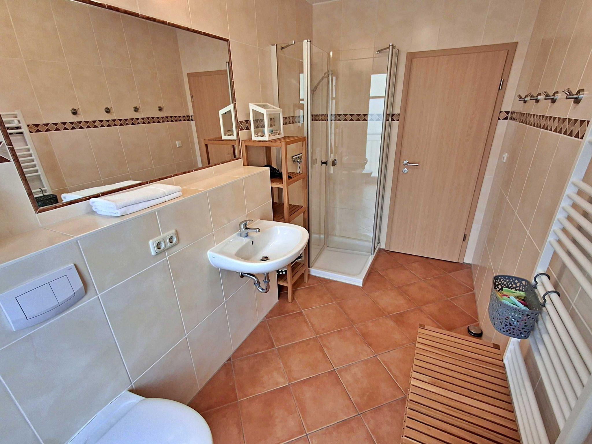 Auch in der kalten Jahreszeit ist die Wohnung durch die Fußbodenheizung angenehm warm und kuschelig. WLAN steht selbstverständlich kostenfrei zur Verfügung. Zur Wohnung gehört auch ein Parkplatz (Wohnung 5) auf dem umzäunten Grundstück. Weiterhin können Sie Ihre eigenen Räder in einem abschließbaren Holzschuppen (Nr.5) abstellen.