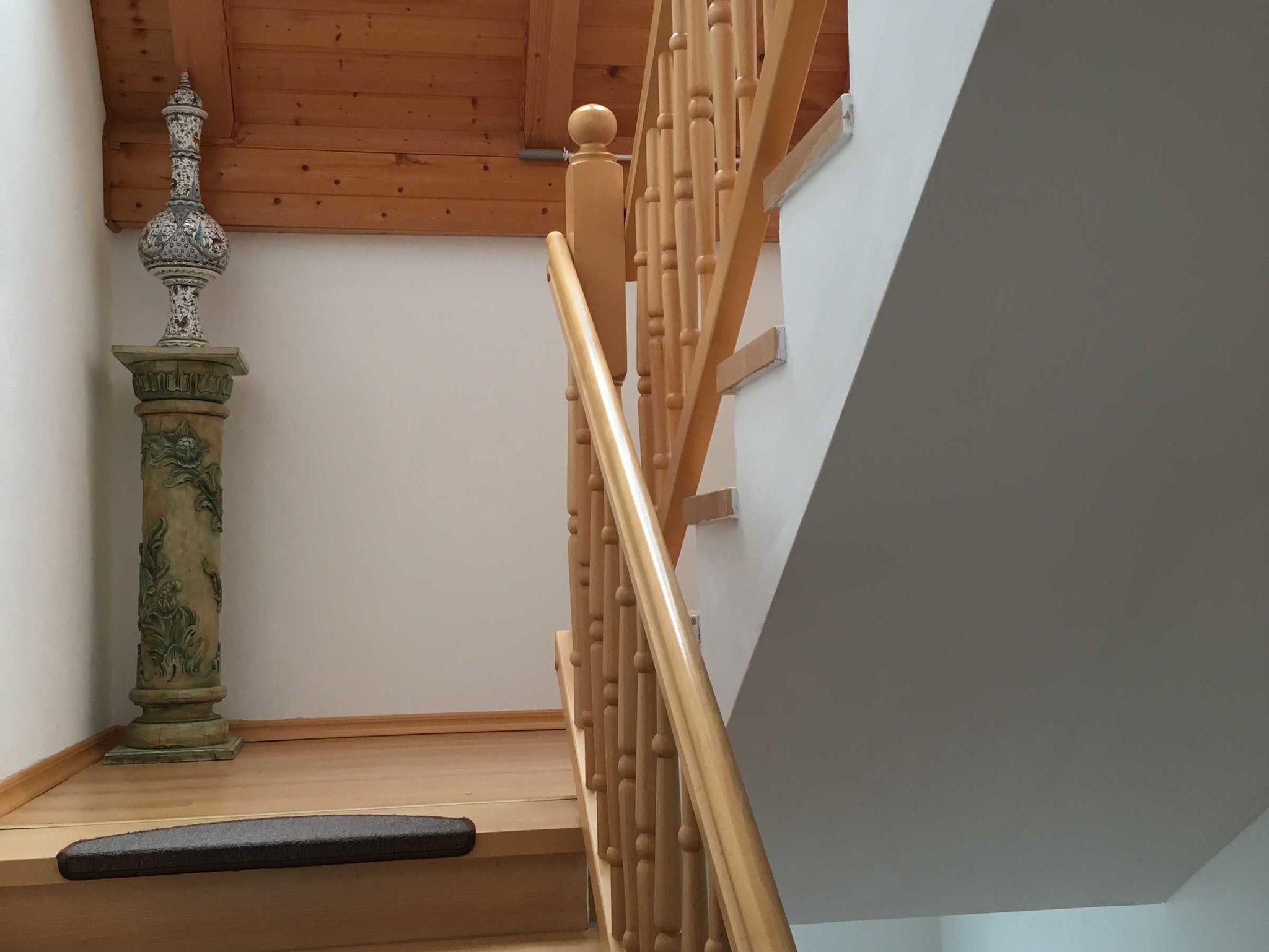 Im zweiten Stock gibt es auch 2 Schlafzimmer, eins davon mit Balkon. Das Bad hat eine Dusche und ein WC. Besonders gemütlich ist das Wohnzimmer mit Balkon. Hier gibt es einen Kühlschrank.