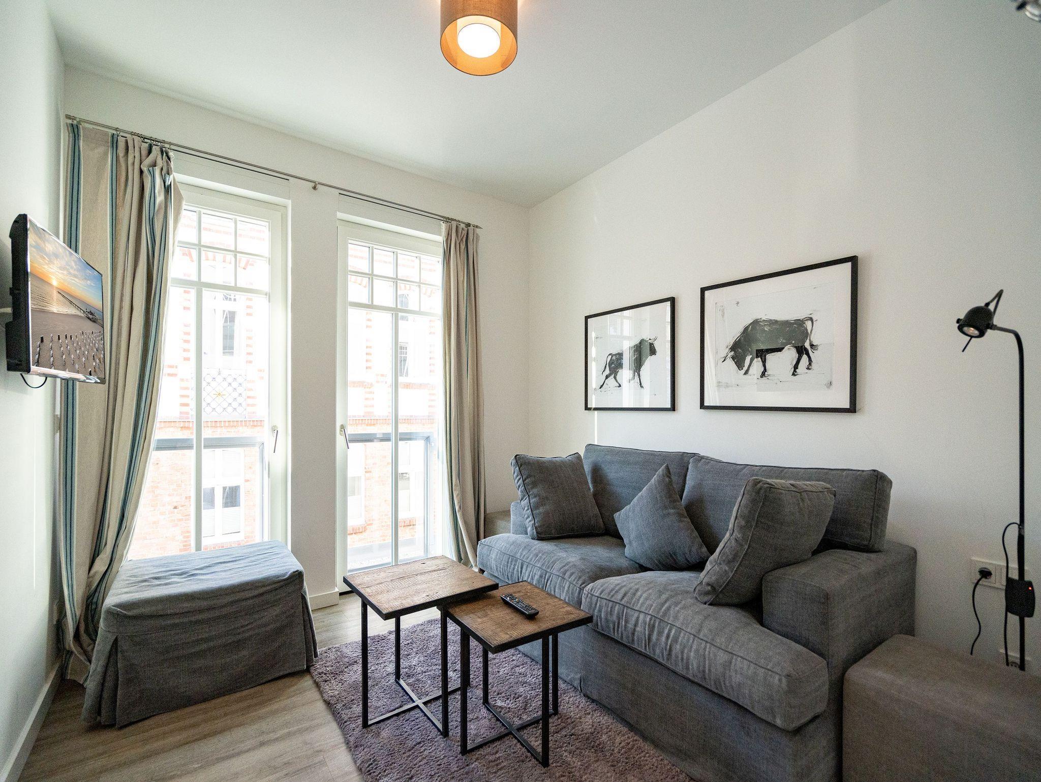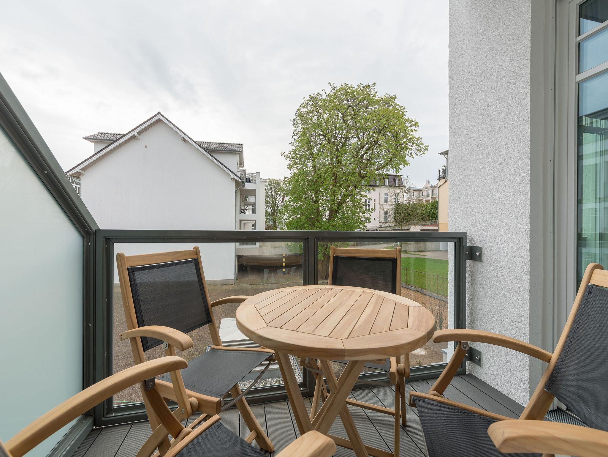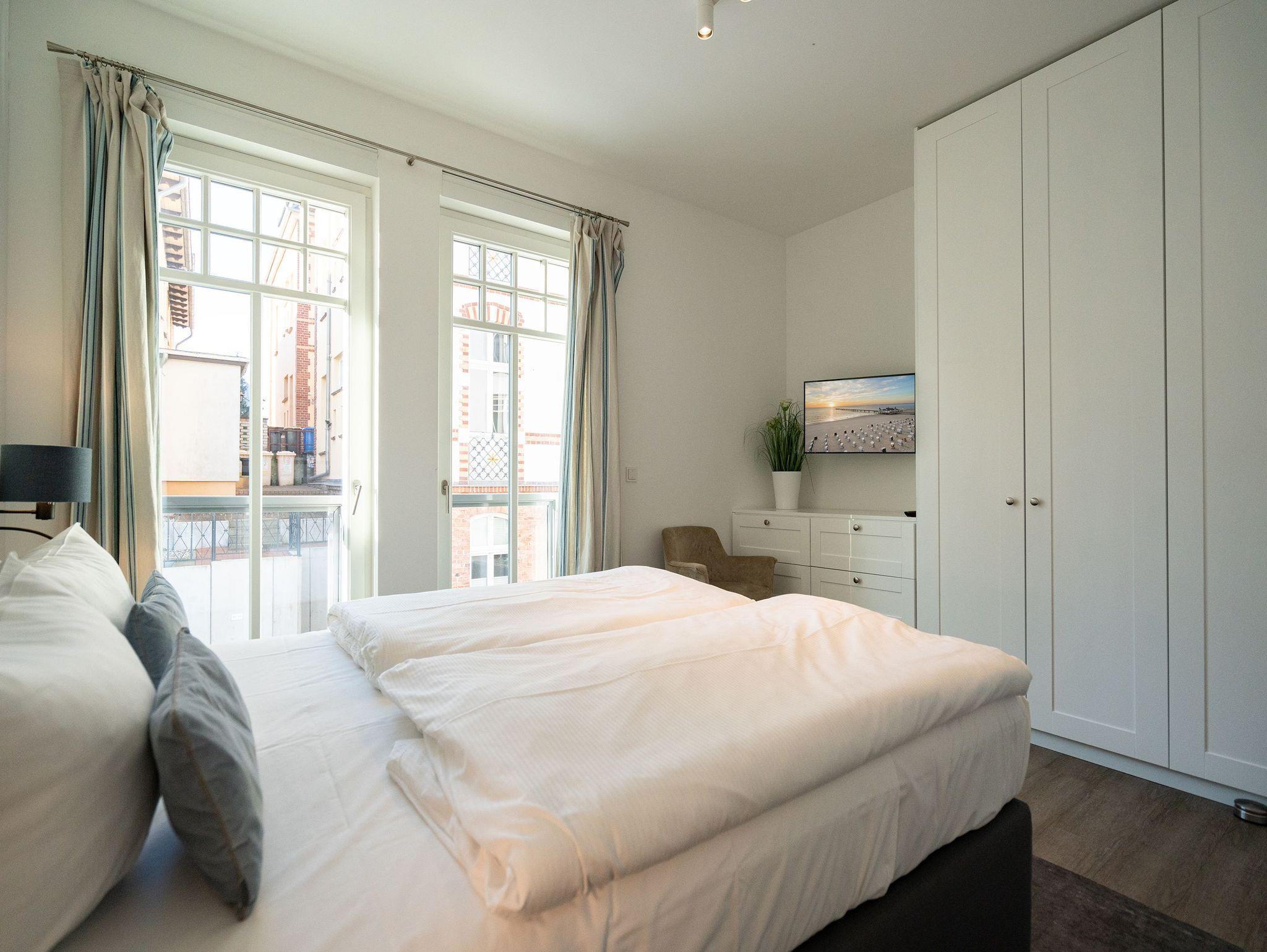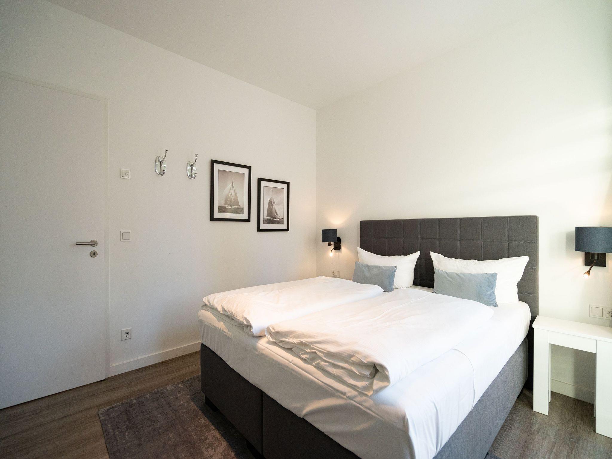 Eine harmonisch abgestimmte Inneneinrichtung und dezente Farben - so begrüßt Sie das gemütliche 68 Quadratmeter große Appartement 8 im Westendpalais. Das exklusive 3-Raum-Domizil eignet sich für maximal 2 Erwachsene, 2 Kinder und ein Kleinkind (bis 3 Jahre im Kinderreisebett). Viel Platz zum Entspannen bietet der offene Wohn-Essbereich mit Sofalandschaft und Flat-TV. Ein Elektro-Kamin sorgt für zusätzliche Wohlfühlatmosphäre, besonders an kühleren Tagen. Einen seitlichen Blick auf die Ostsee gibt der kleine Balkon frei, der auch von der angrenzenden Küche begehbar ist. Die hochwertige Küchenzeile ist u.a. mit einem Induktionsherd und allem, was Sie zum Zubereiten Ihrer Speisen benötigen, ausgestattet. Ein Essplatz für bis zu 5 Personen rundet den Wohn-Essbereich ab. Sollten Sie die Ostsee nachts einmal nicht hören, können Sie zumindest von ihr träumen. Dafür steht ein Schlafzimmer mit Doppelbett (1,60m x 2,00m) und eine Schlafcouch (1,20m x 2,00m) in einem separaten Wohnraum zur Verfügung. Beide Zimmer verfügen darüber hinaus über Flat-TVs. Das großzügig geschnittene Badezimmer mit Badewanne, Waschtisch und WC hält als Highlight eine Finnische Sauna für Sie bereit. Ein Tiefgaragenstellplatz ist für Sie reserviert. Für einen sorgenfreien Urlaub sind die Betten bei Anreise bezogen und Handtücher liegen für Sie bereit. Kostenfreies WLAN und ein Fahrstuhl machen den Komfort in diesem Appartement komplett.