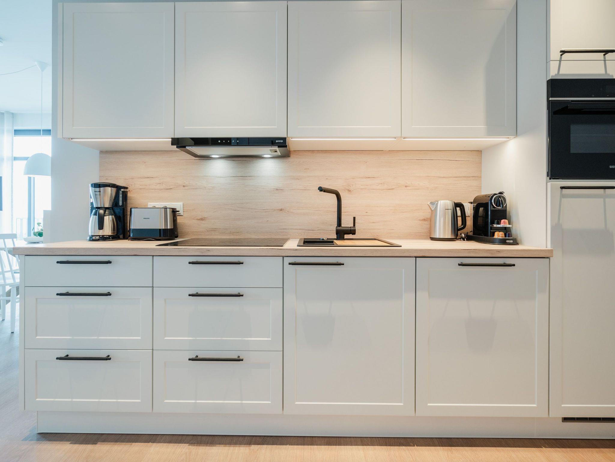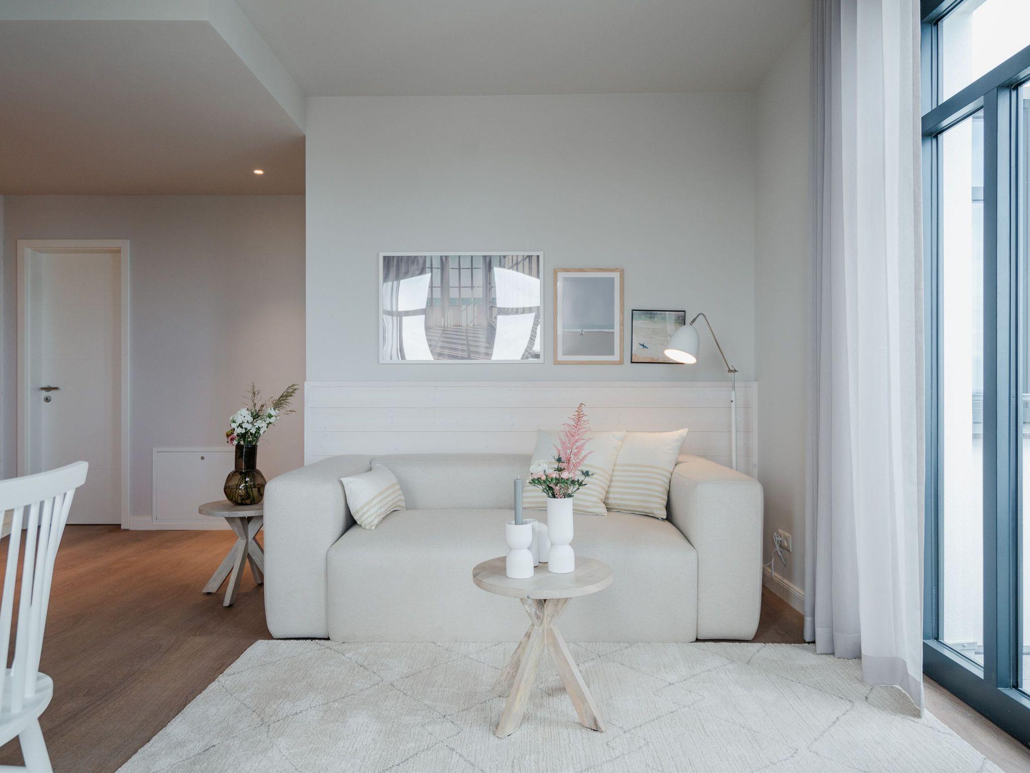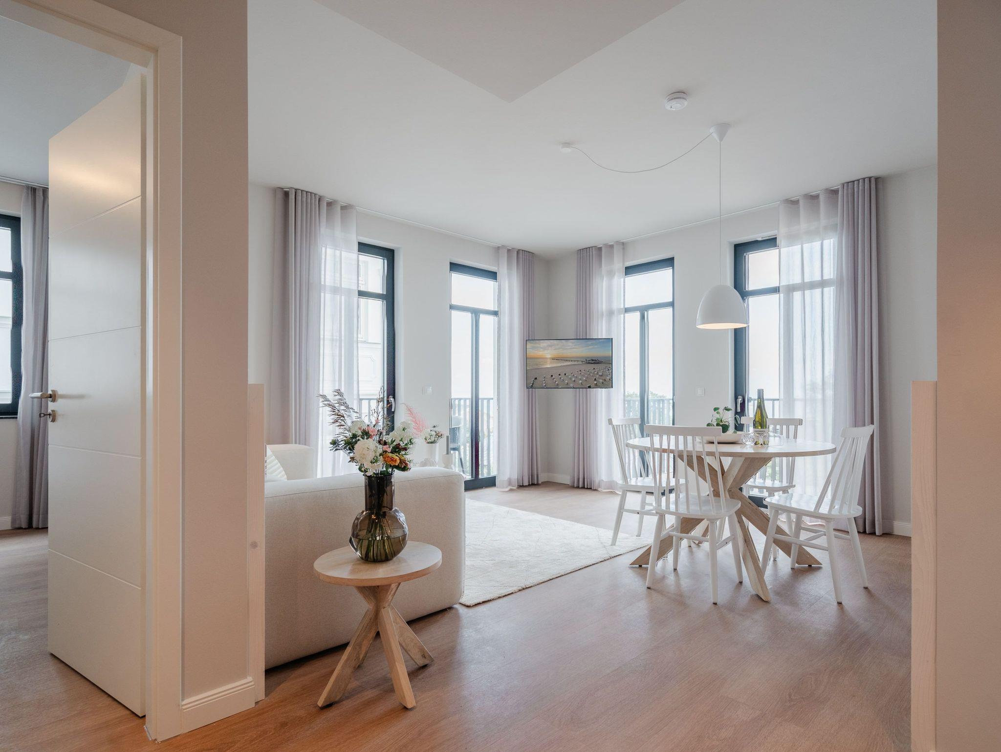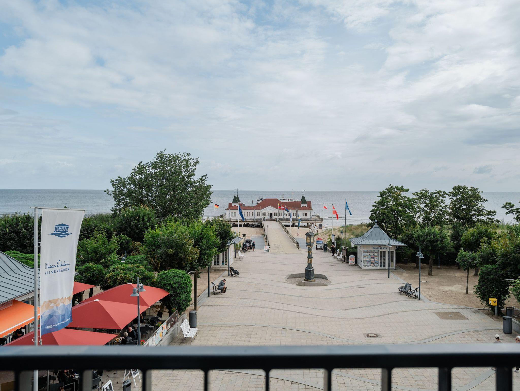Die 2024 fertig gestellte Strandterrasse liegt direkt an der belebten Strandpromenade und bietet einen einzigartigen Ausblick auf die Grand Dame der historischen Seebrücken sowie die historische Konzertmuschel, einem beliebten Treffpunkt für Kunst und Kultur. Dahinter liegt die Ostsee ? ein Panorama, das zu den schönsten in den Kaiserbädern gehört. Es ist wie das Abtauchen in eine andere Zeit. In eine Zeit, in der man mit Stock, Sonnenschirm und Hut fürs „Sehen und gesehen werden“ über die Promenade schlenderte; aber auch in eine Zeit, in der ? damals wie heute ? Zeit einmal für eine kurze Weile keine Rolle spielt. Weil man angekommen ist im Loslassen, Entspannen und Genießen. Es ist dieser besondere Geruch nach Meeresluft und Freiheit, der in Erinnerung bleibt. Dazu die Bilder, die man mitnimmt. Von langen Strandspaziergängen, vom Lachen in fröhlich schäumenden Ostseewellen, von der Zeit in einem wunderschönen Urlaubsdomizil. Denn genau das ist die Strandterrasse mit ihren 56 modernen und exklusiven Ferienappartements direkt gegenüber der Ahlbecker Seebrücke. Die Ein-, Zwei- oder Dreizimmerwohnungen ? zwischen 40 und 70 Quadratmeter groß ? sind von einer Innenarchitektin gemeinsam mit unserem Erfahrungsschatz an Gästewünschen mit viel Liebe zum Detail und ganz individuell konzipiert worden. Entspannung und Wohlfühlen stehen an erster Stelle. Alles ist aufeinander abgestimmt und sorgt für eine gemütliche Atmosphäre. Wählen Sie zwischen einem Domizil in einem hellen, sandfarbenen Designkonzept oder einem Appartement mit anthrazitfarbenen Farbakzenten. Alle Appartements verfügen gleichermaßen über eine stilvolle und komfortable Einrichtung, die passgenau angefertigt worden ist, sowie über moderne Küchen und Bäder. Jedem Schlafzimmer ist ein eigenes Bad mit Dusche zugeordnet (außer App. B4.5). Die Appartements besitzen fast alle einen Balkon ? viele schauen sogar zur Ostsee hinaus. Die meisten Feriendomizile haben einen Elektrokamin und Infrarotsaunen. Im Erdgeschoss befindet sich ein separater Gemeinschaftsraum für Fahrräder. Außerdem besteht die Möglichkeit, im Gemeinschaftswaschraum 2 Waschmaschinen [&] Trockner zu nutzen. Ergänzt wird das Angebot durch eine Gemeinschaftssauna, die täglich von 11:00 bis 22:00 Uhr nutzbar ist. In der Tiefgarage (Einfahrtshöhe 2,03 Meter) steht für jede Wohnung 1 Pkw-Stellplatz zur Verfügung. Ist alles zur Zufriedenheit untergebracht? Dann kann der Urlaub ja beginnen. Und beim Blick vom Balkon über die Ostsee treffen sich zum Sonnenaufgang das Heute und das Damals. Gelassenheit legt sich beim Gang hinunter an den Strand auf die Seele. Jetzt darf die Zeit stehenbleiben.