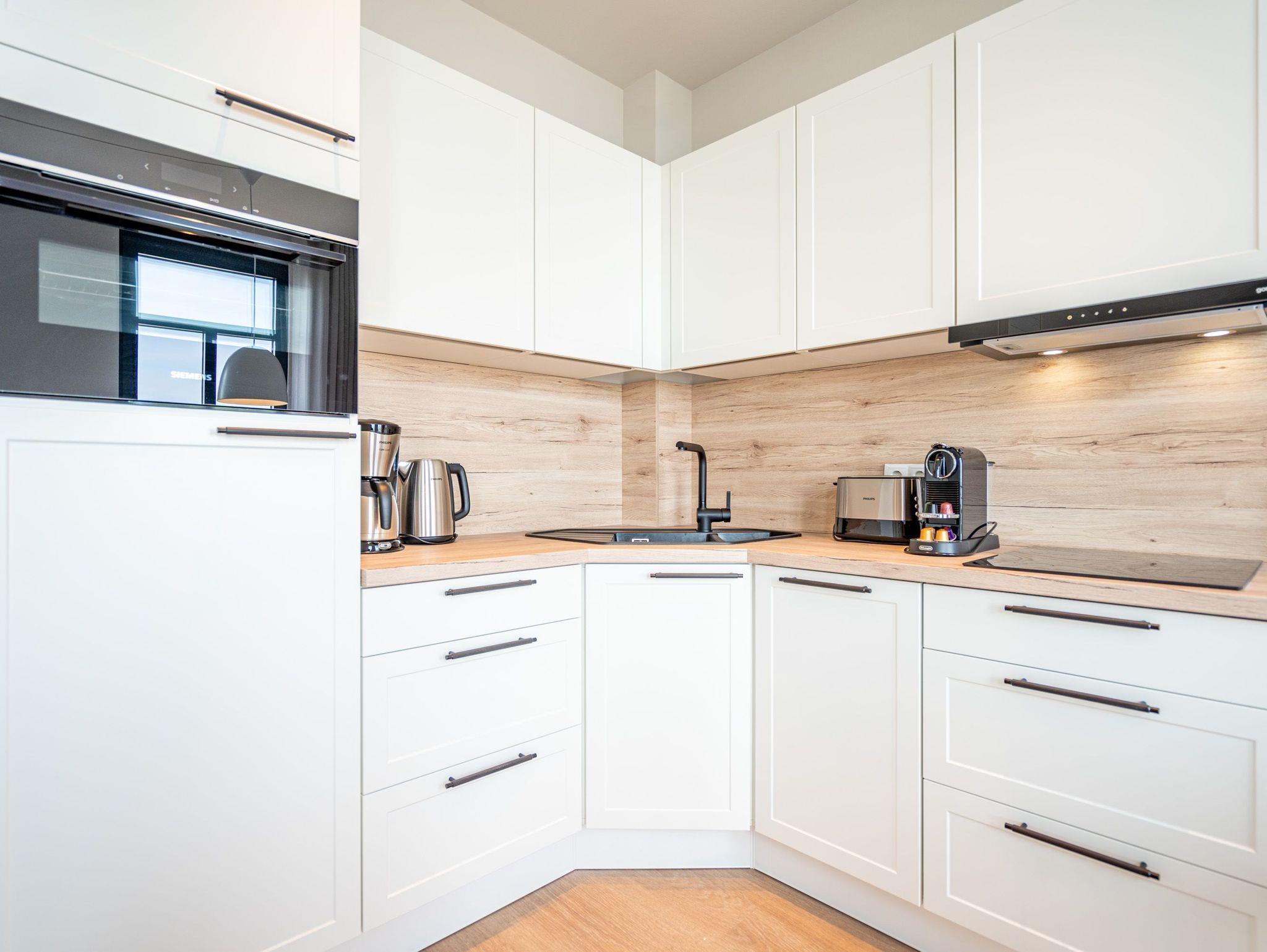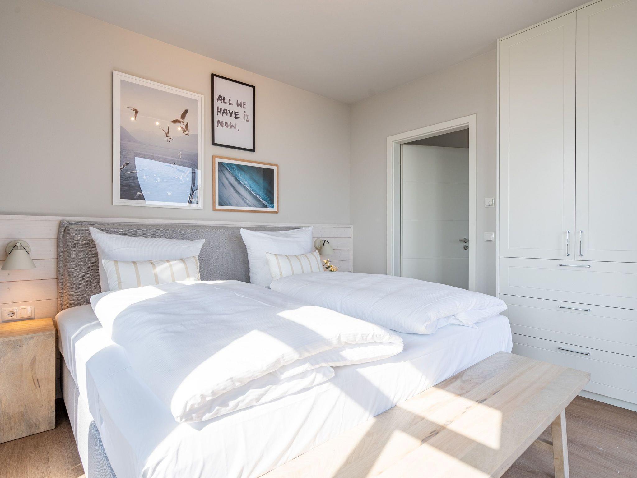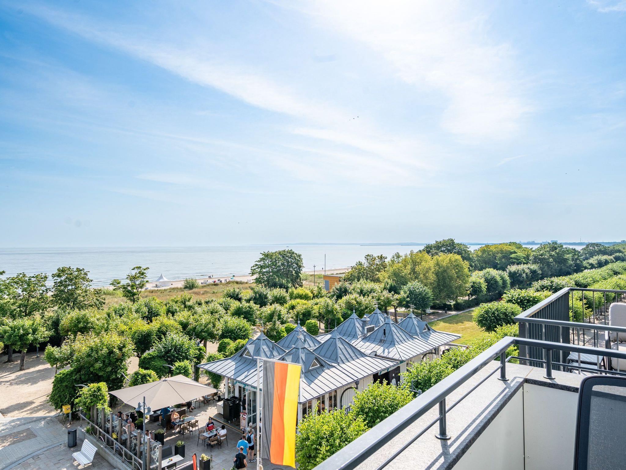 Visasvis der Seebrücke reicht der Blick aus dem exklusiven 2-Raum-Appartement A 3.4 (Haus A) in der 3. Etage von der Heringsdorfer Seebrücke bis nach Swinemünde. An Tagen mit klarer Seeluft sogar bis zu den weißen Klippen von Misdroy. Dieses kleine, aber feine Urlaubsdomizil wartet auf seinen 48 Quadratmetern mit viel Komfort und Finesse auf. Der offene Wohnbereich und das Schlafzimmer sind ideal für zwei Personen und sind ein Traum für alle Ostseeliebhaber. Denn von der werden Sie hier nicht genug bekommen. Nordisches Design gibt beim Interieur den Ton an. Modern und hyggelig zugleich. Genießen sie aus den stylischen, drehbaren Relaxsesseln die Füße auf bequeme Hocker ausgestreckt den fantastischen Blick aufs Meer. Ein Elektrokamin (ohne Wärmeabgabe) sorgt zudem für eine heimelige Atmosphäre. Sogar im Sommer. Ein 50-Zoll-Flachbildfernseher steht für Ihre Unterhaltung zur Verfügung. Die offene Küchenzeile ist mit einem Backofen, einem 3-Platten-Induktionskochfeld, einer Spülmaschine, einer Nespresso-Kapselmaschine und vielem mehr komplett ausgestattet. Hier fehlt es an nichts, um raffinierte Gerichte zu zaubern und sie anschließend am schönen Esstisch gemeinsam einzunehmen. Nur einen Schritt aus dem bodentiefen Fenster hinaus und Sie stehen auf dem ersten Ost-Balkon mit einem Beistelltisch, zwei Sesseln und einer Gartenliege. Entspannen Sie hier bei Sonnenschein und atmen die energieaufladende Brise, die direkt vom Wasser herüberweht, tief ein. Das Schlafzimmer verspricht im luxuriösen Boxspringdoppelbett (2,00m x 2,00m) wunderbare Stunden der Ruhe. Hier befindet sich ein großer Kleiderschrank und ein weiterer 43-Zoll-Flachbildfernseher. Mit Meerblick aufwachen, das ist doch purer Luxus. In diesem charmanten Appartement gehört er zur Grundausstattung dazu. Kaum aus dem Bett, können Sie vom Schlafzimmer aus auf dem zweiten Balkon (Richtung Ost) die aufgehende Sonne begrüßen. Denn auf Usedom entsteigt sie jeden Morgen der Ostsee. Das innenliegende Bad ist mit einer Dusche, einem Waschtisch und einer Toilette ausgestattet. Zur Wohnung gehört in der Tiefgarage ein PKW-Stellplatz. Genießen Sie in diesem wunderschönen Urlaubsparadies unvergessliche Tage am Meer.
