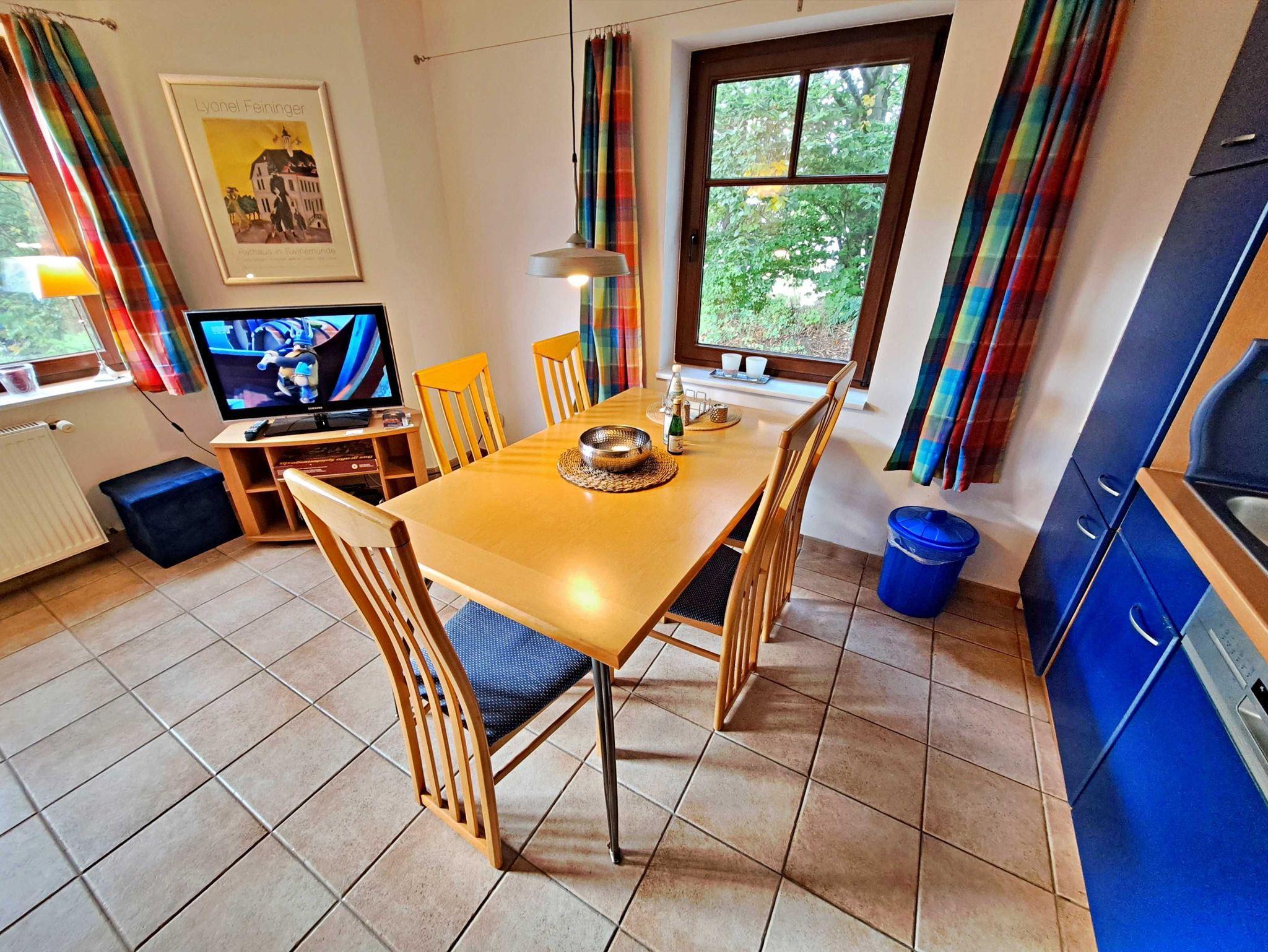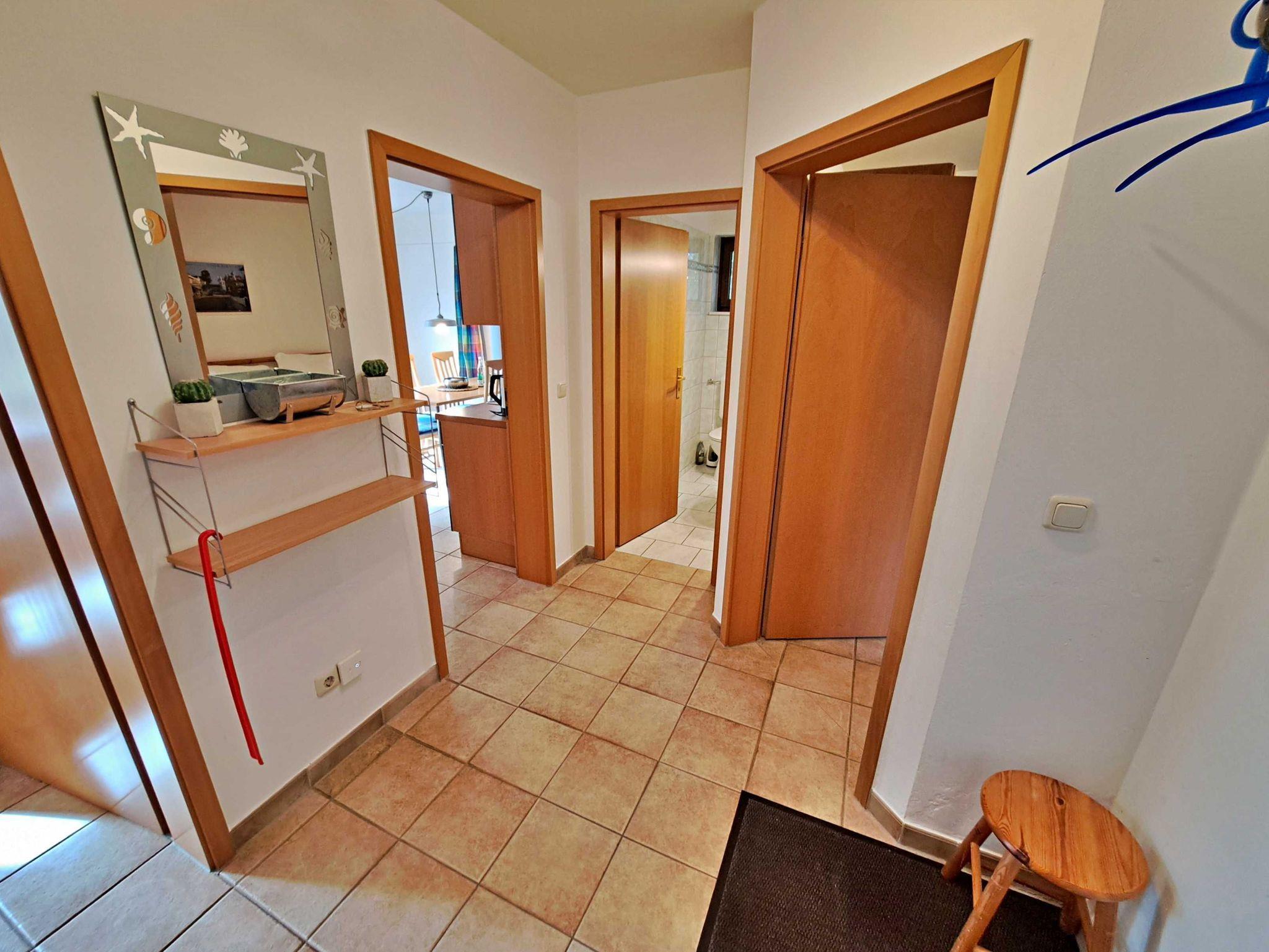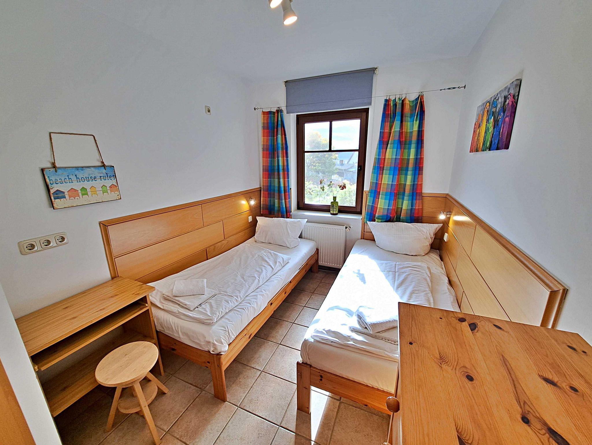 Diese großzügige, 52 qm große Unterkunft im Erdgeschoss besticht durch ihre Helligkeit und Freundlichkeit. Sie erwartet ein komfortables Wohnzimmer, das mit einer gemütlichen Sitzecke und einem einladenden Essplatz ausgestattet ist. Die offene Küche lässt keine Wünsche offen und bietet Ihnen alles, was Sie für einen entspannten Aufenthalt benötigen - von Herd und Backofen über Spülmaschine und Kühlschrank mit Gefrierfach bis hin zu Kaffeemaschine, Wasserkocher und Toaster. Die Wohnung verfügt über zwei behagliche Schlafzimmer: eines mit einem Doppelbett und das andere mit zwei Einzelbetten - ideal für Familien oder Freunde. Das Tageslicht-Bad mit Dusche und WC sorgt für zusätzlichen Komfort und ist vom Hauptschlafzimmer aus zugänglich. Ein weiteres WC sowie ein praktischer Abstellraum, der an das Schlafzimmer mit den Einzelbetten angeschlossen ist, runden das Angebot ab. Genießen Sie zudem die Annehmlichkeiten eines kostenfreien Parkplatzes direkt vor dem Haus sowie den kostenlosen Zugang zum W-LAN.