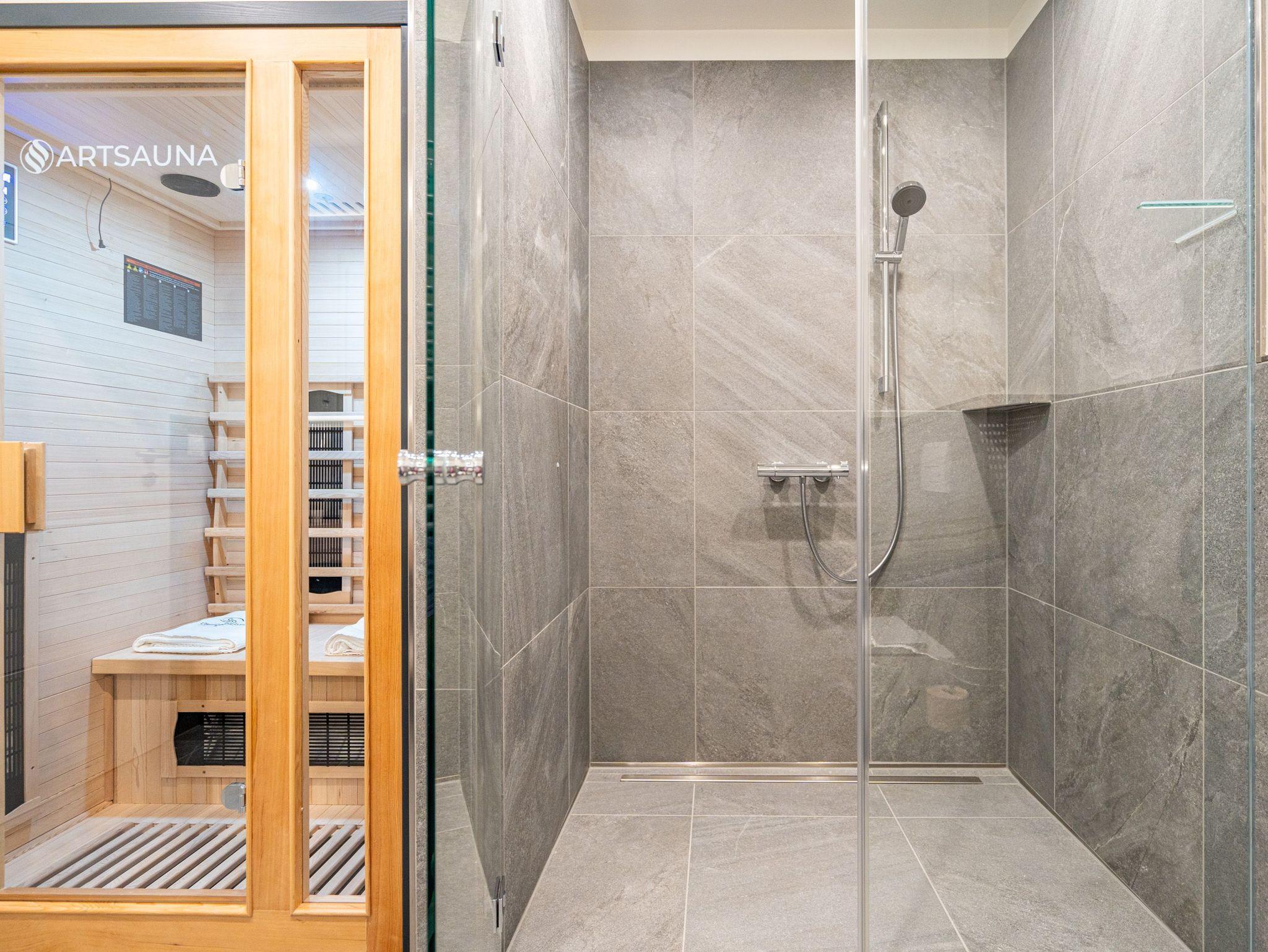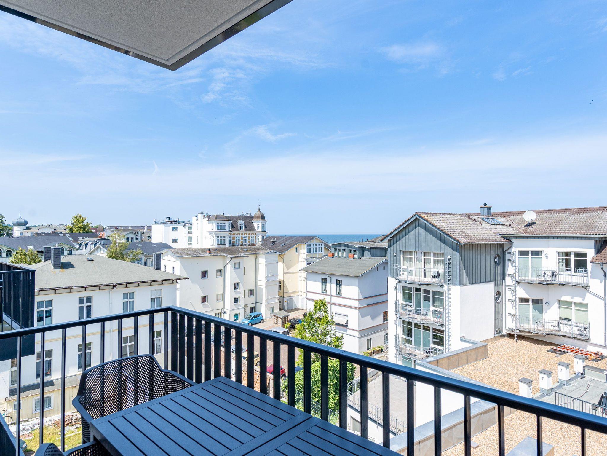 Die Nummer B 3.9 (Haus B) in der 3. Etage der Strandterrasse ist ein wunderschönes Appartement mit Blick über die Dächer von Ahlbeck und über die Ostsee. Einfach mal abschalten und die Zeit, Zeit sein lassen, runterkommen und an einem wunderschönen Wohlfühlort neue Energie tanken, das können Sie in den 60 Quadratmetern dieser charmanten Ferienwohnung auf jeden Fall. Viel Komfort und Gemütlichkeit erwarten die bis zu 2 Gäste hier. Auch ein kleines Kind (bis 5 Jahre) wird hier ein tolles Urlaubszuhause vorfinden. Das Wohnzimmer ist das Herzstück des Appartements. Ein bequemes Sofa lädt zum Faulenzen und Entspannen ein. Ein Elektrokamin (ohne Wärmeabgabe) schafft mit seinem Flammenspiel selbst an Sommerabenden eine romantische Atmosphäre. Schauen Sie sich auf dem großen Flat-TV (50 Zoll) Ihren Lieblingsfilm an oder streamen Sie Ihre Lieblingsserie. Eine offene Küche bietet zum Kochen viele moderne Annehmlichkeiten. Sie ist mit hochwertigen Siemensgeräten wie einem Backofen, einem 3-Platten-Induktionsherd, einem Geschirrspüler und vielem mehr ausgestattet. Ob Kaffeemaschine oder Nespresso-Kapselmaschine ? ein guter Morgenkaffee ist der beste Start in den Urlaubstag. Dem steht hier nichts im Weg. Genießen Sie ihn beim Frühstück am schönen Esstisch oder auf dem Nord-West-Balkon mit Blick aufs Meer und der Ostseebrise in der Nase. Jetzt kann?s losgehen ? an den Strand, der direkt vor der Haustür liegt oder über die Insel. Frische Seeluft macht bekanntlich müde. Damit Ihre Träume süß und die Nächte erholsam werden, steht Ihnen im Schlafzimmer ein komfortables Boxspringdoppelbett (1,80m x 2,00m) zur Verfügung. Auch Ihr Kind wird in seinem Kindertagesbett (0,80m x 1,40m) himmlisch schlafen. Zum Schlafzimmer gehört außerdem ein geräumiger Kleiderschrank und ein Flat-TV (43 Zoll). Das Badezimmer ist modern mit Dusche, Waschtisch und WC bestückt. Und für wohlige Entschleunigung an kühlen Abenden sorgt eine Infrarotsaunakabine. Damit Ihre Auszeit vom ersten Moment an entspannend ist, brauchen Sie nicht lange nach einem Parkplatz zu suchen. In der Tiefgarage gehört zu Ihrer Wohnung ein PKW-Stellplatz dazu. Sie können sich also von Anfang an auf eine schöne Ostseeauszeit freuen.