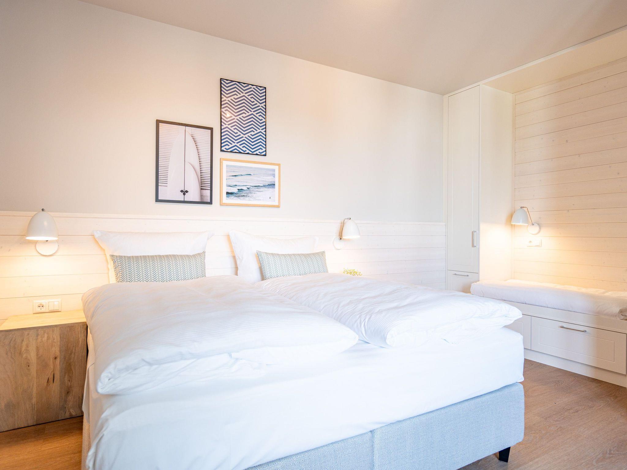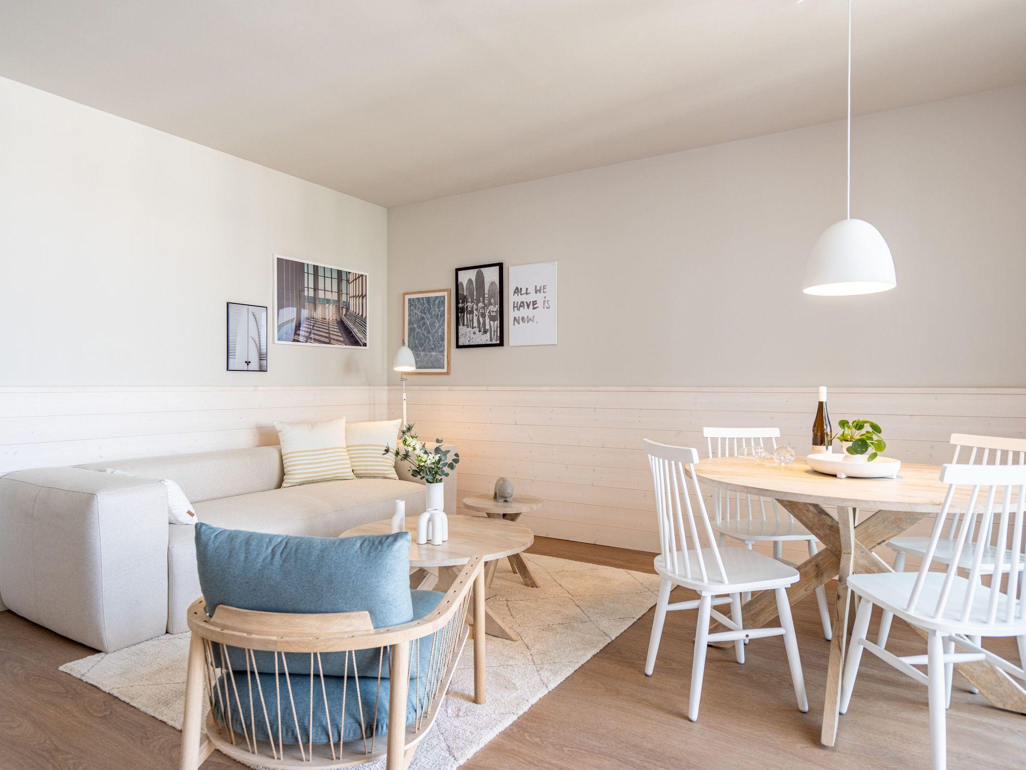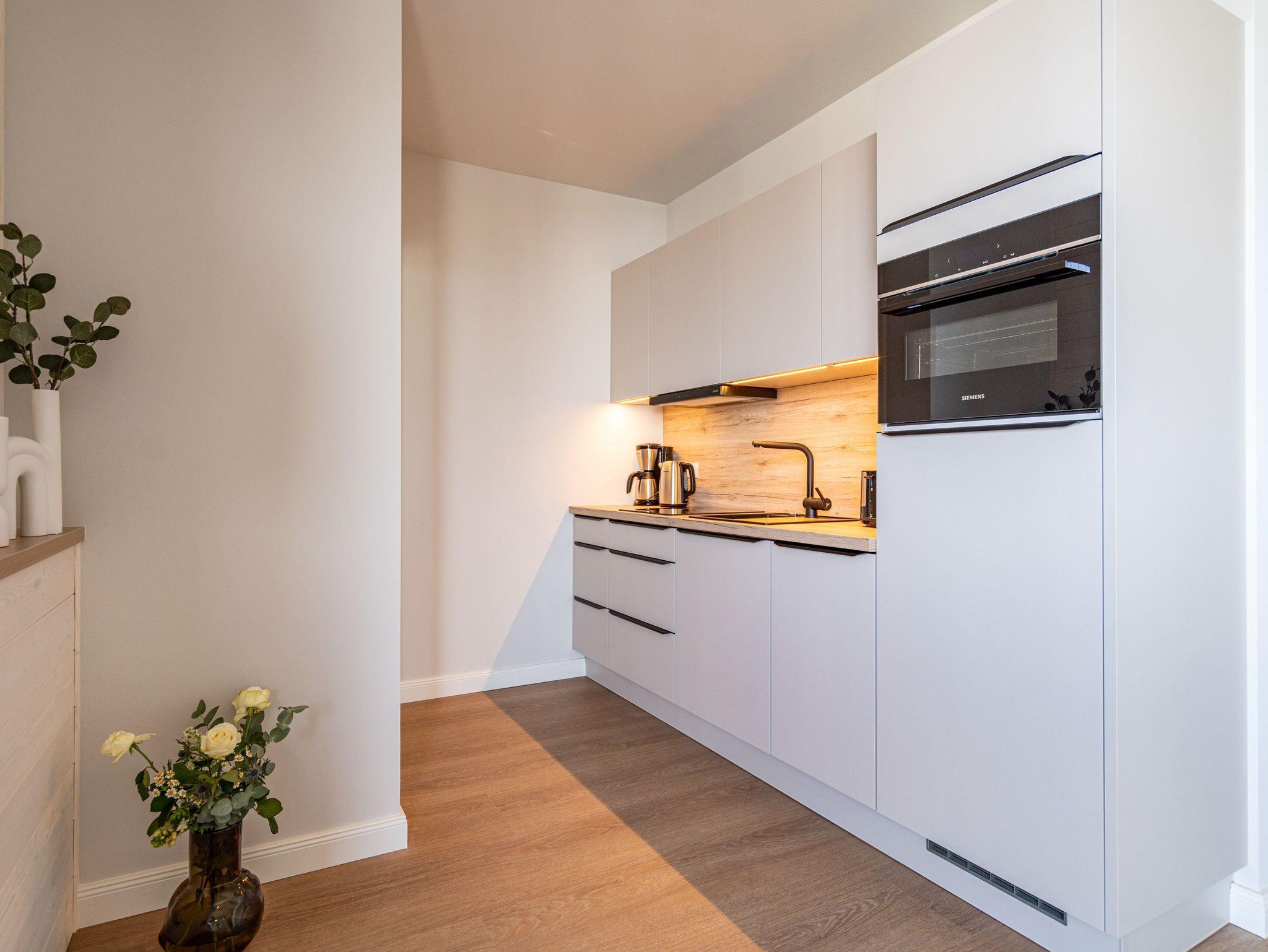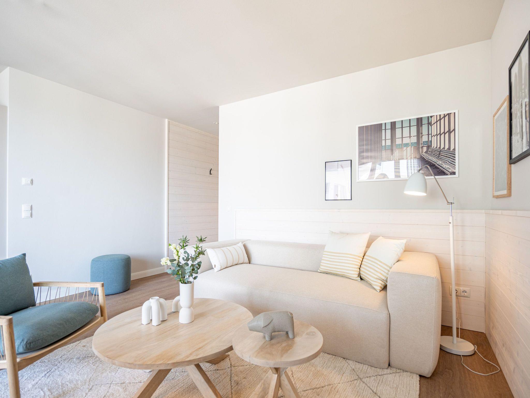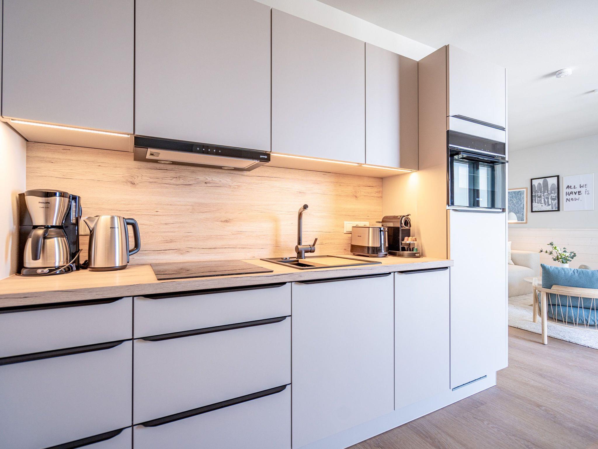 Die 2024 fertig gestellte Strandterrasse liegt direkt an der belebten Strandpromenade und bietet einen einzigartigen Ausblick auf die Grand Dame der historischen Seebrücken sowie die historische Konzertmuschel, einem beliebten Treffpunkt für Kunst und Kultur. Dahinter liegt die Ostsee ? ein Panorama, das zu den schönsten in den Kaiserbädern gehört. Es ist wie das Abtauchen in eine andere Zeit. In eine Zeit, in der man mit Stock, Sonnenschirm und Hut fürs „Sehen und gesehen werden“ über die Promenade schlenderte; aber auch in eine Zeit, in der ? damals wie heute ? Zeit einmal für eine kurze Weile keine Rolle spielt. Weil man angekommen ist im Loslassen, Entspannen und Genießen. Es ist dieser besondere Geruch nach Meeresluft und Freiheit, der in Erinnerung bleibt. Dazu die Bilder, die man mitnimmt. Von langen Strandspaziergängen, vom Lachen in fröhlich schäumenden Ostseewellen, von der Zeit in einem wunderschönen Urlaubsdomizil. Denn genau das ist die Strandterrasse mit ihren 56 modernen und exklusiven Ferienappartements direkt gegenüber der Ahlbecker Seebrücke. Die Ein-, Zwei- oder Dreizimmerwohnungen ? zwischen 40 und 70 Quadratmeter groß ? sind von einer Innenarchitektin gemeinsam mit unserem Erfahrungsschatz an Gästewünschen mit viel Liebe zum Detail und ganz individuell konzipiert worden. Entspannung und Wohlfühlen stehen an erster Stelle. Alles ist aufeinander abgestimmt und sorgt für eine gemütliche Atmosphäre. Wählen Sie zwischen einem Domizil in einem hellen, sandfarbenen Designkonzept oder einem Appartement mit anthrazitfarbenen Farbakzenten. Alle Appartements verfügen gleichermaßen über eine stilvolle und komfortable Einrichtung, die passgenau angefertigt worden ist, sowie über moderne Küchen und Bäder. Jedem Schlafzimmer ist ein eigenes Bad mit Dusche zugeordnet (außer App. B4.5). Die Appartements besitzen fast alle einen Balkon ? viele schauen sogar zur Ostsee hinaus. Die meisten Feriendomizile haben einen Elektrokamin und Infrarotsaunen. Im Erdgeschoss befindet sich ein separater Gemeinschaftsraum für Fahrräder. Außerdem besteht die Möglichkeit, im Gemeinschaftswaschraum 2 Waschmaschinen [&] Trockner zu nutzen. Ergänzt wird das Angebot durch eine Gemeinschaftssauna, die täglich von 11:00 bis 22:00 Uhr nutzbar ist. In der Tiefgarage (Einfahrtshöhe 2,03 Meter) steht für jede Wohnung 1 Pkw-Stellplatz zur Verfügung. Ist alles zur Zufriedenheit untergebracht? Dann kann der Urlaub ja beginnen. Und beim Blick vom Balkon über die Ostsee treffen sich zum Sonnenaufgang das Heute und das Damals. Gelassenheit legt sich beim Gang hinunter an den Strand auf die Seele. Jetzt darf die Zeit stehenbleiben.