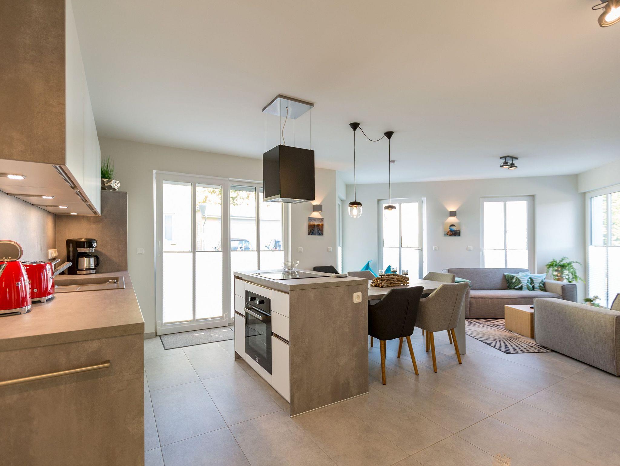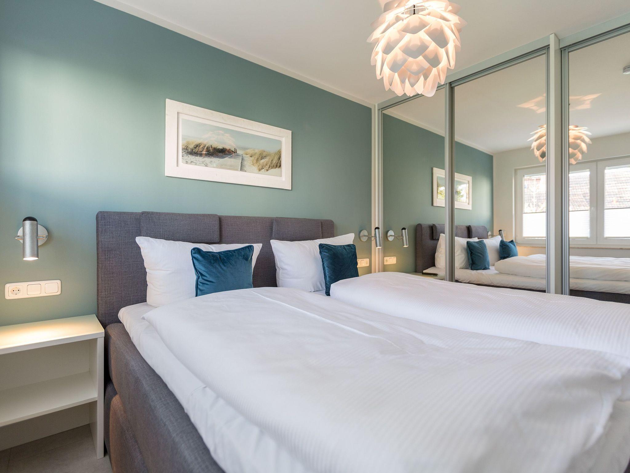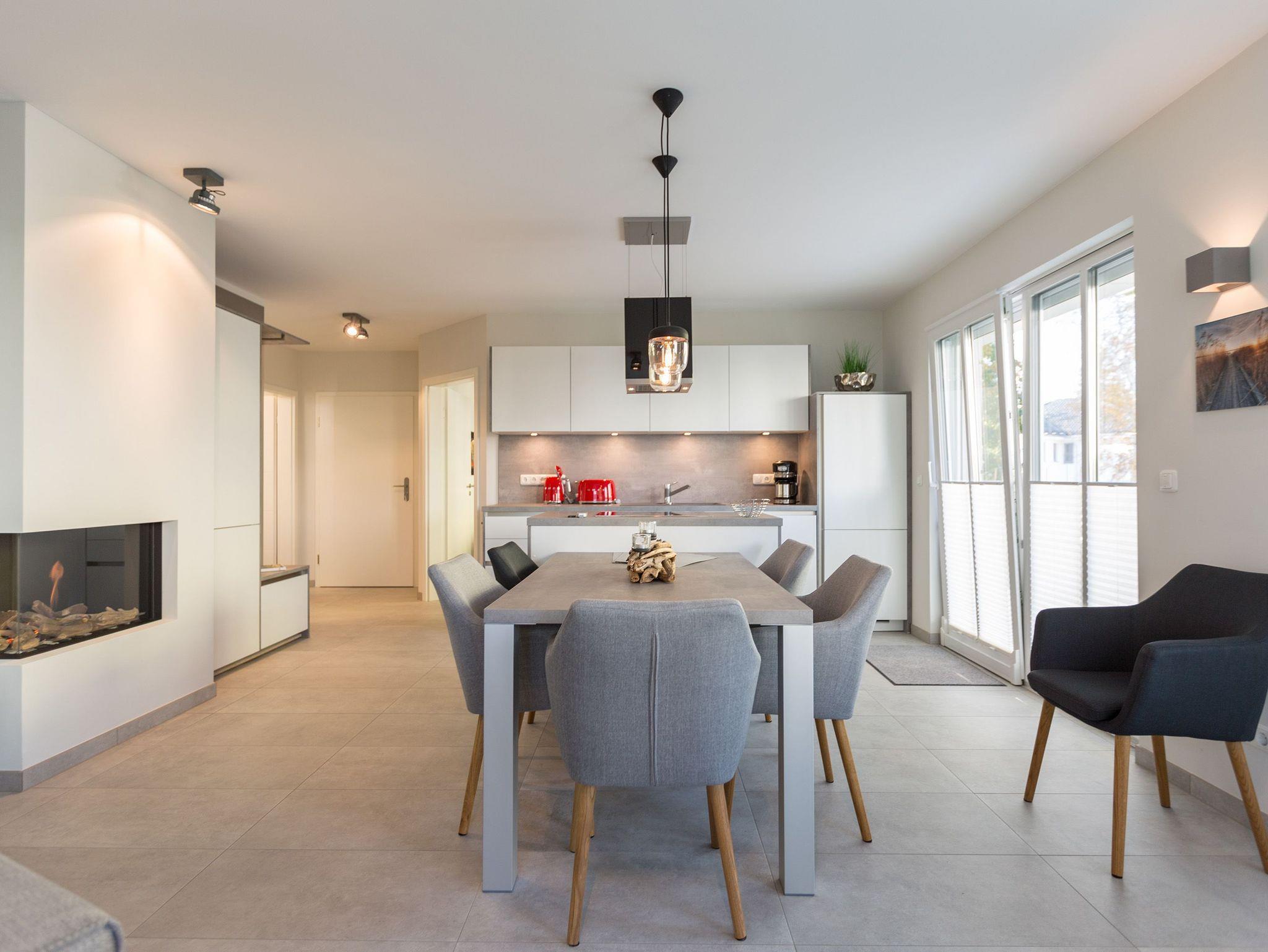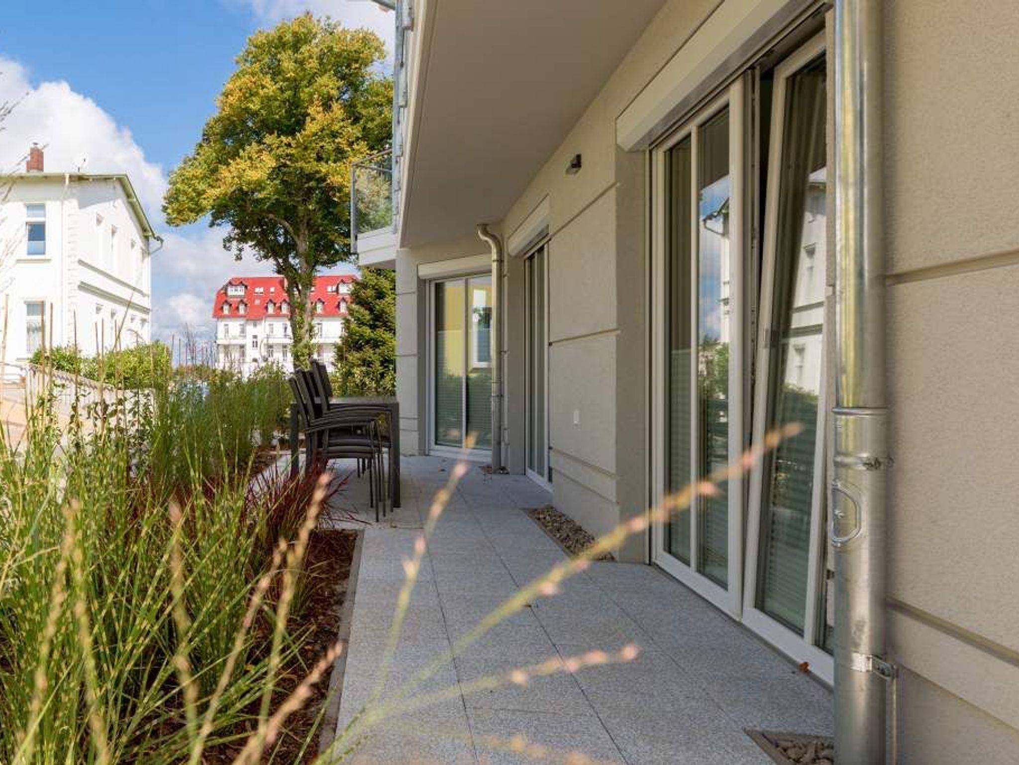 Individualisten werden sich in diesem Drei-Raum-Appartement im Erdgeschoss ganz besonders wohlfühlen. Denn ausgefallen, stylisch und modern empfängt es seine Gäste mit viel Komfort und Eleganz. Zeitlose Betonoptik, eine Einrichtung, die mit exklusivem Designgeschmack ausgesucht und mit den passenden Dekorationen ergänzt wurde. Das große und offene Wohnzimmer lässt viel Sonnenlicht ein. Zwei Terrassen (15 Quadratmeter groß Richtung Norden [&] 37 Quadratmeter groß Richtung Nord-Westen) schauen direkt auf die Ostsee. Hier ist Entspannung pur angesagt ? egal, ob beim Sonnenbaden oder zum gemütlichen Essen. Das Innere der Ferienwohnung lockt mit viel Platz ebenfalls zum Entspannen. Ganz besonders die beiden großen Sofas eignen sich dafür perfekt. An ungemütlichen Tagen und Abenden sorgt der Gas-Kamin für eine wohlige Kuschelatmosphäre. Natürlich steht hier für die Unterhaltung ein großer Flat-TV zur Verfügung. Das Wohnzimmer öffnet sich zu einem geräumigen und gemütlichen Ess- und Küchenbereich. Die Kochzeile ist voll ausgestattet mit hochwertigen Geräten und Marken-Geschirr. Gemeinsam kochen ? an der modernen und freistehenden Kochinsel ist das möglich. Am schönen Esstisch mit gemütlichen Sesseln haben bis zu fünf Personen ausreichend Platz zum Schlemmen und Genießen. In den beiden Schlafzimmern können bis zu vier Personen und ein Kleinkind im Kinderreisebett schlafen. Zwei bequeme Boxspringdoppelbetten (1,80 m x 2,00 m) verleihen Ihren Träumen behagliche Leichtigkeit. Im Badezimmer wartet ein besonderes Highlight auf Sie: eine Panorama-Sauna. Gerade an kühlen Abenden ist die Finnische Sauna eine kleine Wellness-Oase, die Sie trübe Gedanken schnell vergessen lässt. Eine geräumige Dusche, ein Waschtisch und ein WC gehören ebenfalls zur Bad-Ausstattung. Zudem verfügt die Wohnung über ein Gäste-WC. Bei Anreise sind die Betten für Sie schon bezogen und Handtücher liegen bereit. Ihr Auto können Sie auf dem für Sie am Haus reservierten und überdachten Stellplatz parken.