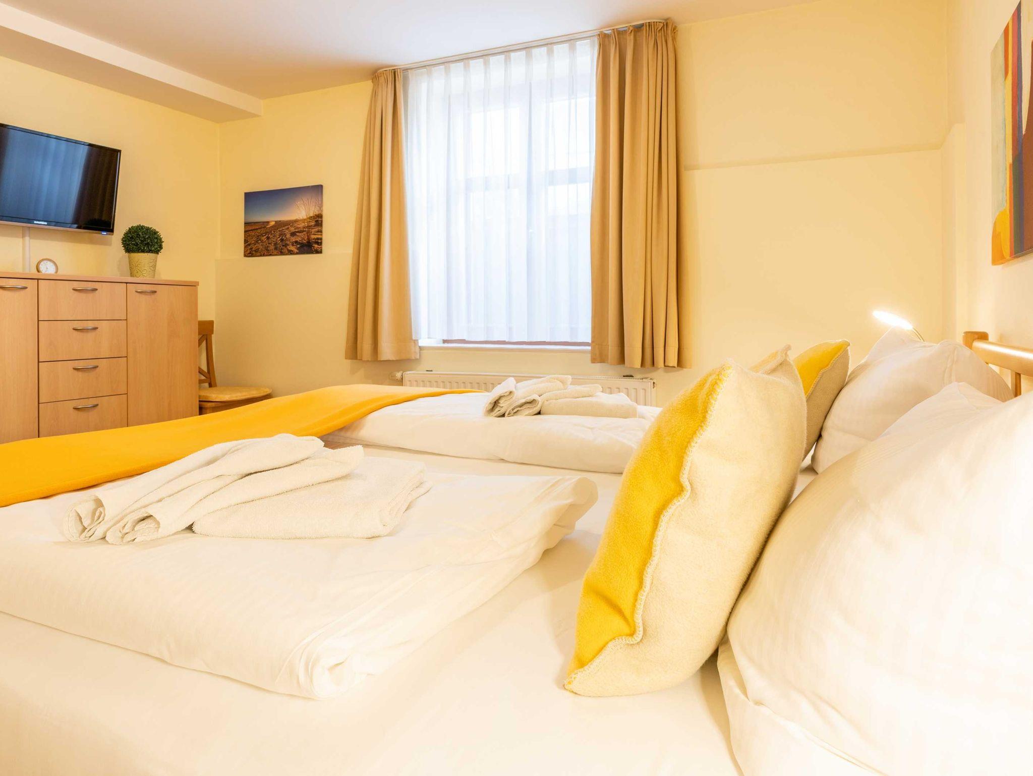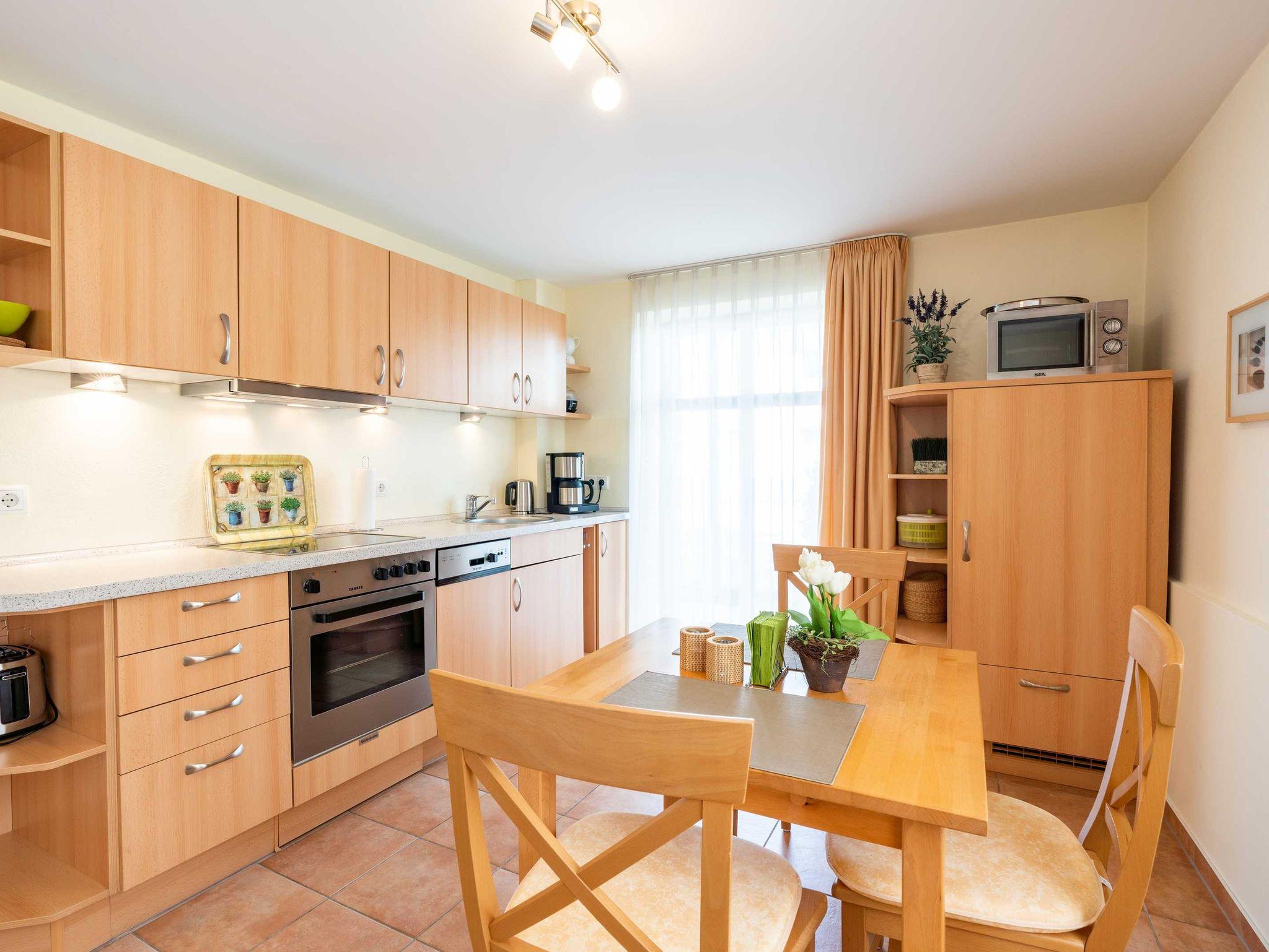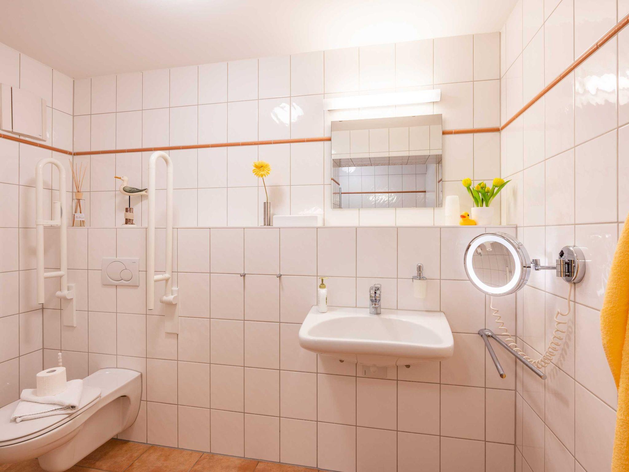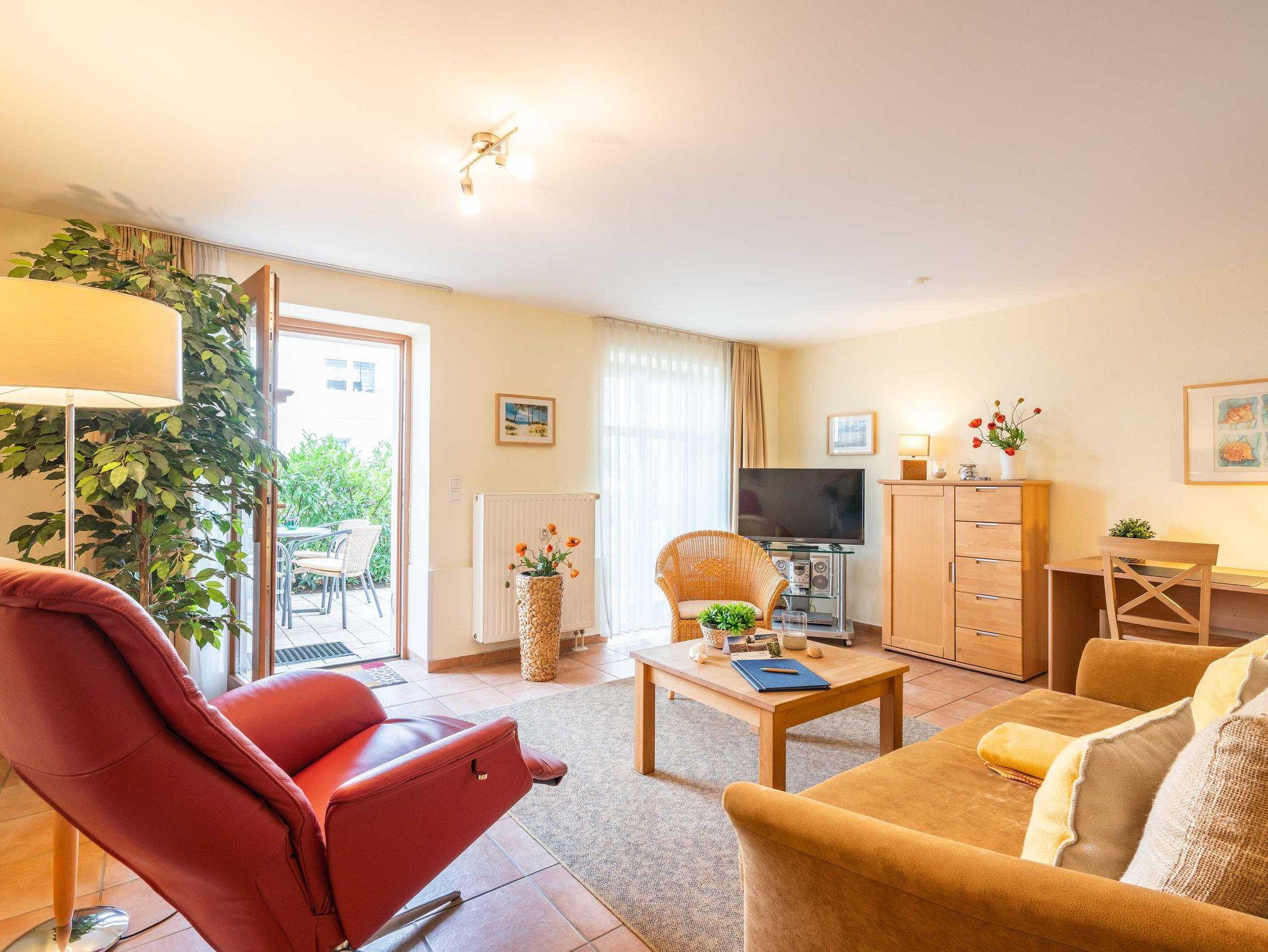 Die helle, freundliche & behindertenfreundliche Ferienwohnung befindet sich im Souterrain des Altbaus der Villa Linquenda. Die 86 qm große Wohnung ist hochwertig eingerichtet und bietet Platz für maximal 3 Personen und ein Kleinkind. Sie verfügt über ein Wohnzimmer mit Sitzgruppe (Schlafsofa) & Flat-TV, eine komplett ausgestattete Küche, ein Schlafzimmer mit Doppelbett (1,80m x 2,00m, verstellbares Lattenrost am Kopf- und Fußteil) und zusätzlichem Flat-TV sowie ein separates befahrbares Ankleidezimmer. Das Bad verfügt über eine ebenerdige Dusche (mit Klappsitz und Haltegriff) und Toilette (klappbare Haltebügel). Eine Terrasse rundet das Angebot der Wohnung ab.