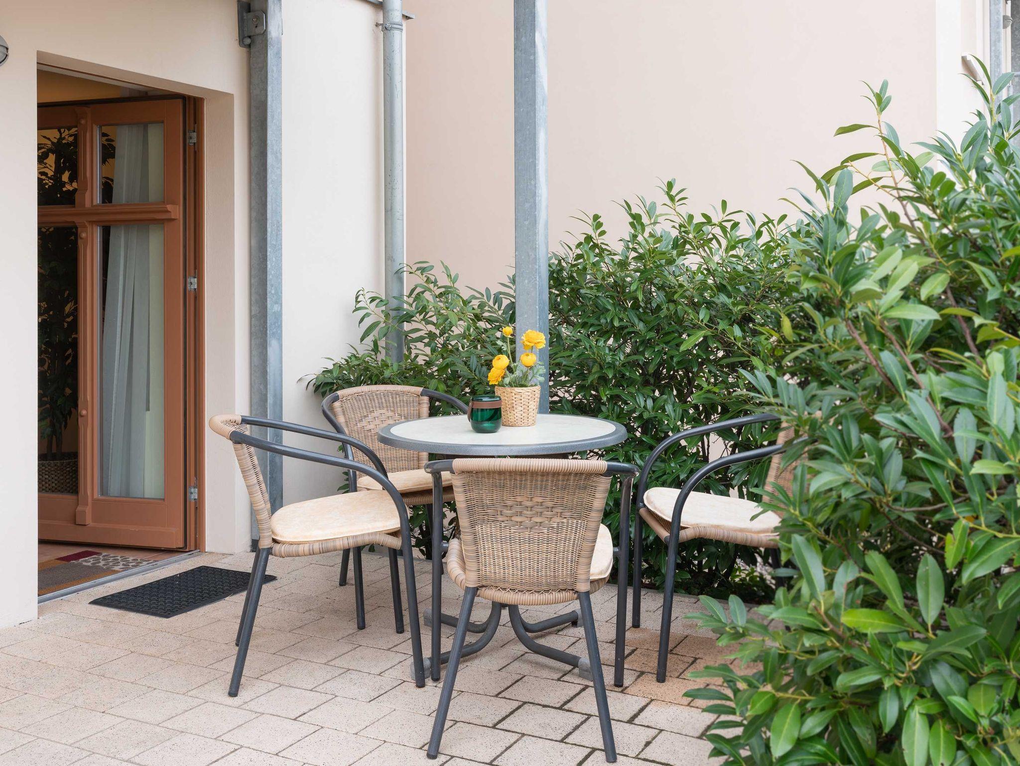Alle Wohnungen sind mit viel Liebe zum Detail und hochwertigem Interieur ausgestattet. Warme Terrakottafliesen und harmonische Dekostoffe schaffen ein einladendes Ambiente. Für Familien stellen wir Ihnen auf Anfrage gerne kostenlos ein Kinderreisebett und einen Hochstuhl zur Verfügung. Zudem ist für jedes Appartement ein PKW-Stellplatz reserviert. Bitte beachten Sie, dass bei größeren Fahrzeugen die Parkmöglichkeiten etwas eng ausfallen könnten. Selbsverständlich ist auch WLAN inklusive. Genießen Sie die Zeit auf Ihrem Balkon oder Ihrer Terrasse, wo Balkonmöbel zur Verfügung stehen.