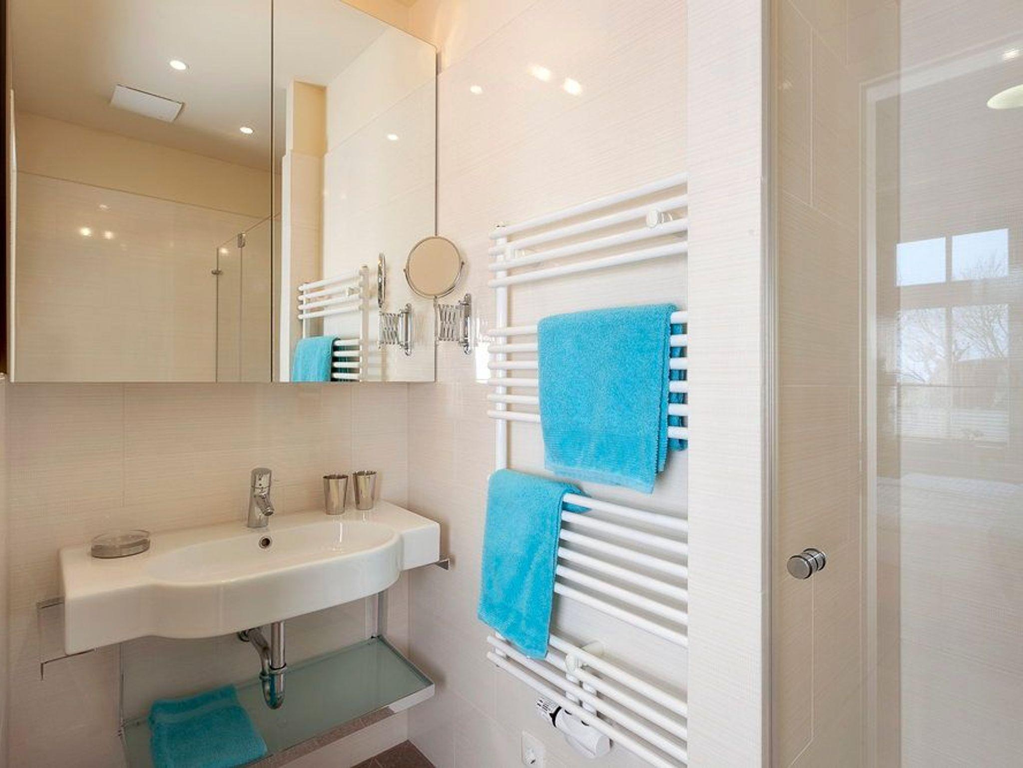 Das Appartement verfügt über zwei Badezimmer. Das erste Bad knüpft an das Schlafzimmer an (Bad en Suite), das zweite Bad erreichen Sie vom Flur. Beide Bäder sind mit einer Echtglas-Dusche, bodengleicher Duschtasse, Handbrause, zusätzlicher Regenbrause und großzügigen Spiegelschränken mit viel Stauraum, WC und einem Haarfön ausgestattet.