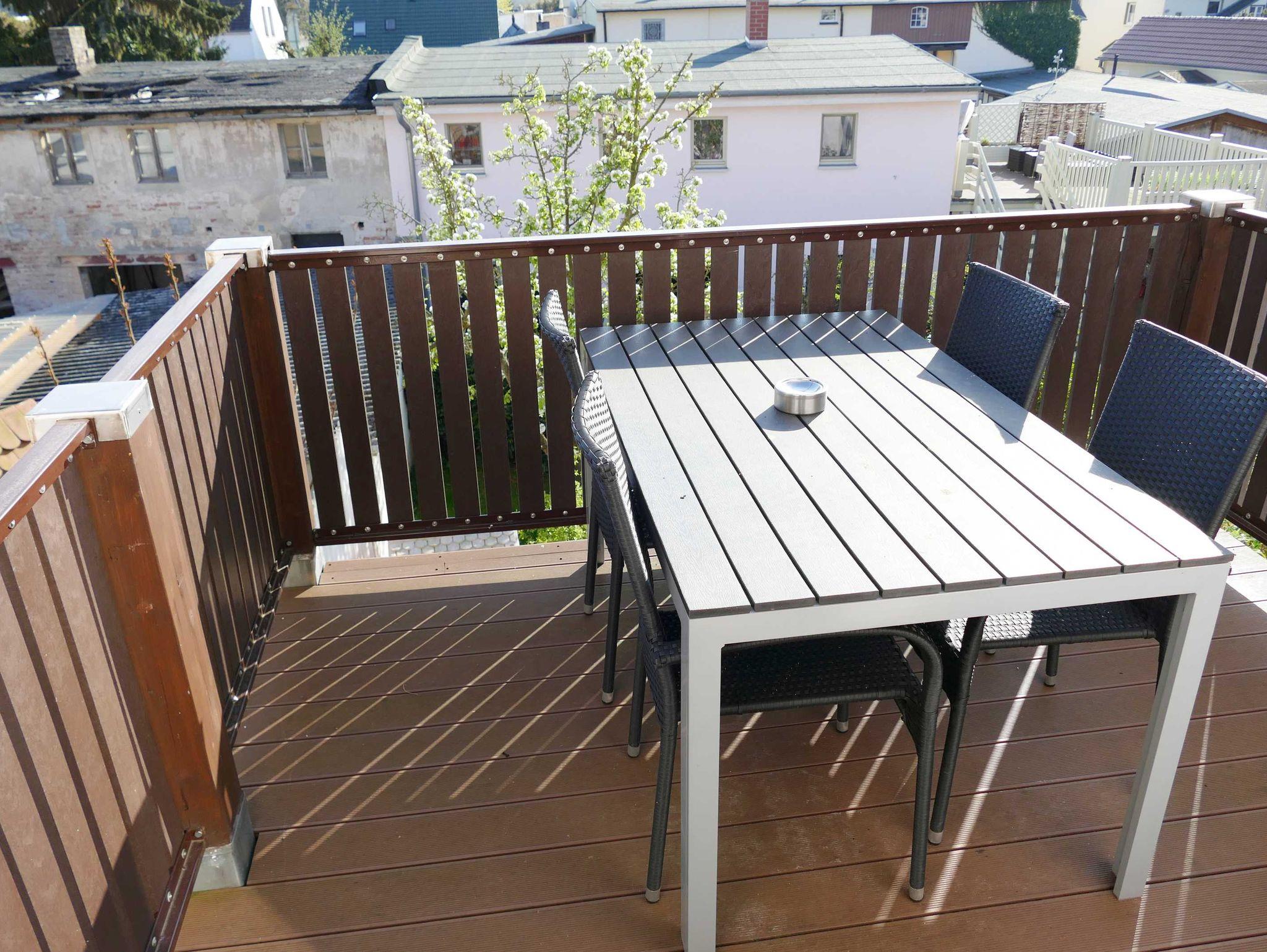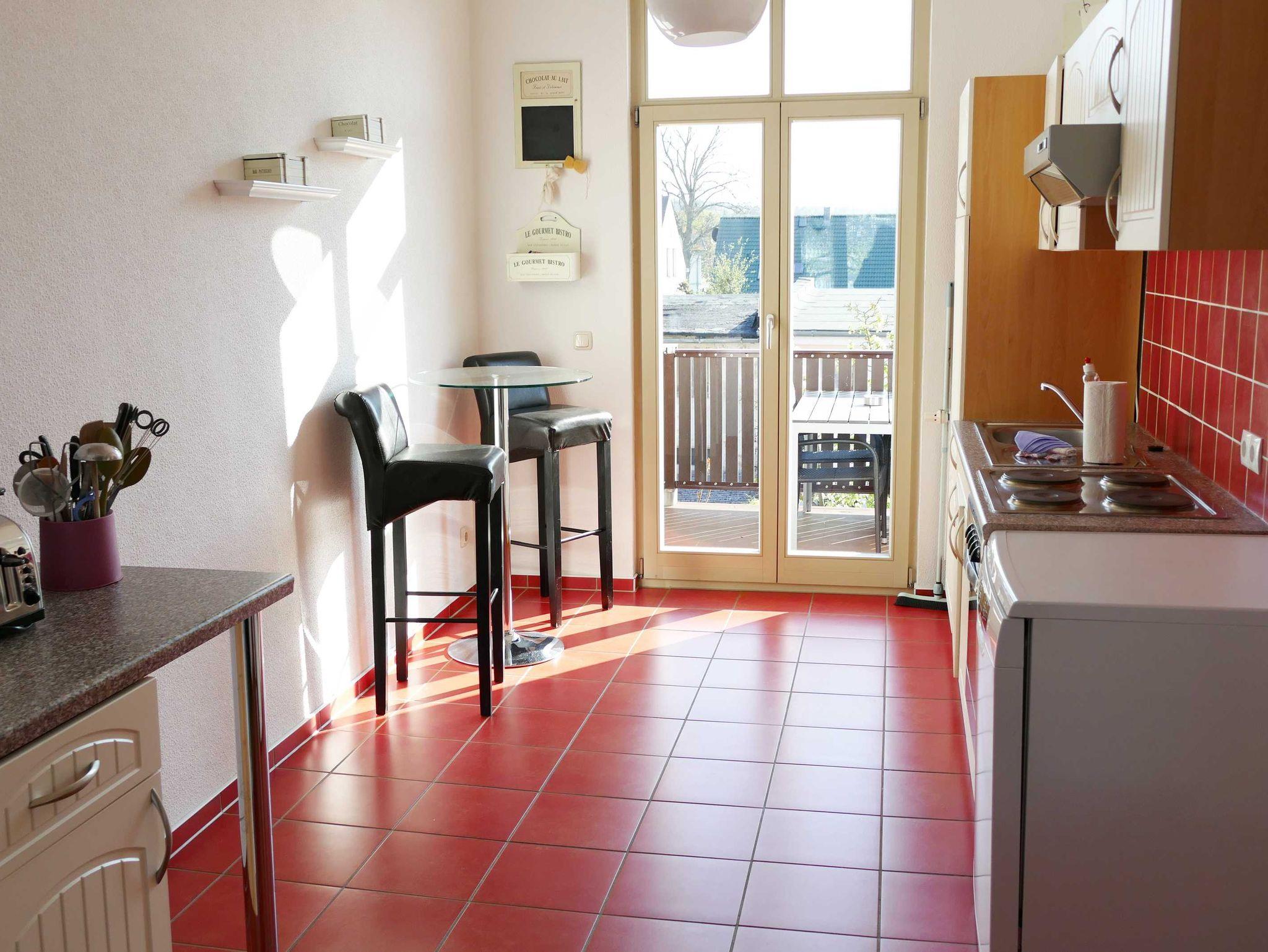 Die 85 qm große Ferienwohnung Inga befindet sich im ersten Obergeschoss und ist romantisch und liebe voll eingerichtet. Sie verfügt über einen möblierten Balkon zur Gartenseite (Südseite), der für Romantik und Ruhe beim Sonnenuntergang sowie auch beim Frühstück gern genutzt wird. Die Wohnung ist aufgeteilt in Wohnzimmer und 2 Schlafzimmer (wobei ein Schlafzimmer (Doppelbett) als Durchgangszimmer zum 2. Schlafzimmer (Rollbett) dient, Veranda mit Essbereich und komplett ausgestatteter Küche, Bad mit Dusche und WC. Die Wohnung verfügt über einen Kaminofen, damit es auch im Herbst und Winter gemütlich ist.
