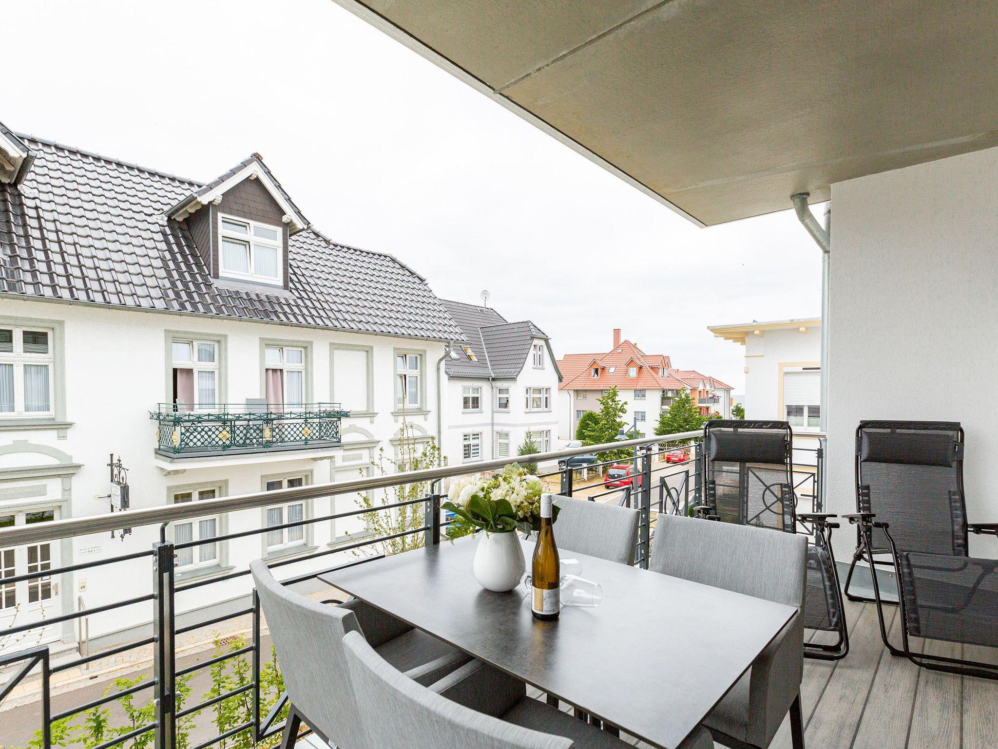 Bodentiefe Fenster lassen viel Licht in dieses moderne und gemütliche Drei-Zimmer-Appartement hinein. Die 76 Quadratmeter im ersten Obergeschoss bestechen mit stylischen Möbeln, mit viel Glas und Holz. Bis zu vier Personen und ein Kleinkind (im Babyreisebett) finden hier viel Platz für ihren Ostseeurlaub. Das Urlaubsdomizil hat ein offenes Wohn-Esszimmer mit einer bequemen Design-Landschaft aus Sofa und Sesseln, Smart-TV und einem Kaminofen. Vom Alltag abschalten? Das gelingt hier garantiert. Vom Wohnzimmer aus treten Sie auf einen West-Balkon mit Gartenmöbeln und zwei Sonnenliegen hinaus. Ob ein gemeinsames Essen unter freiem Himmel oder Entspannen in der Sonne ? hier geht beides. Sonne und Ostseeluft machen hungrig. Die Küche besitzt alles, was man sich für die Zubereitung eines ordentlichen Essens nur wünschen kann. Induktionsherd, Mikrowelle, Geschirrspüler? Alle Geräte sind hochwertig und auf dem neuesten Stand. Geschirr und Töpfe finden Sie in den Schränken. Die beiden Schlafzimmer sind identisch eingerichtet mit jeweils einem komfortablen Boxspringdoppelbett (1,80 m x 2,00 m), Smart-TVs und geräumigen Kleiderschränken. Es gibt zwei Bäder. Das Masterbad hat Tageslicht, Dusche, WC und eine kleine Finnische Sauna. Zudem ist es mit einer Waschmaschine ausgestattet. Das zweite Bad verfügt über eine Dusche und ein WC. Handtücher und Bettwäsche sind im Preis inbegriffen. Auch das WLAN ist kostenfrei. In der Tiefgarage ist für Sie ein Stellplatz reserviert. Im Keller gibt es einen separaten Fahrradraum.