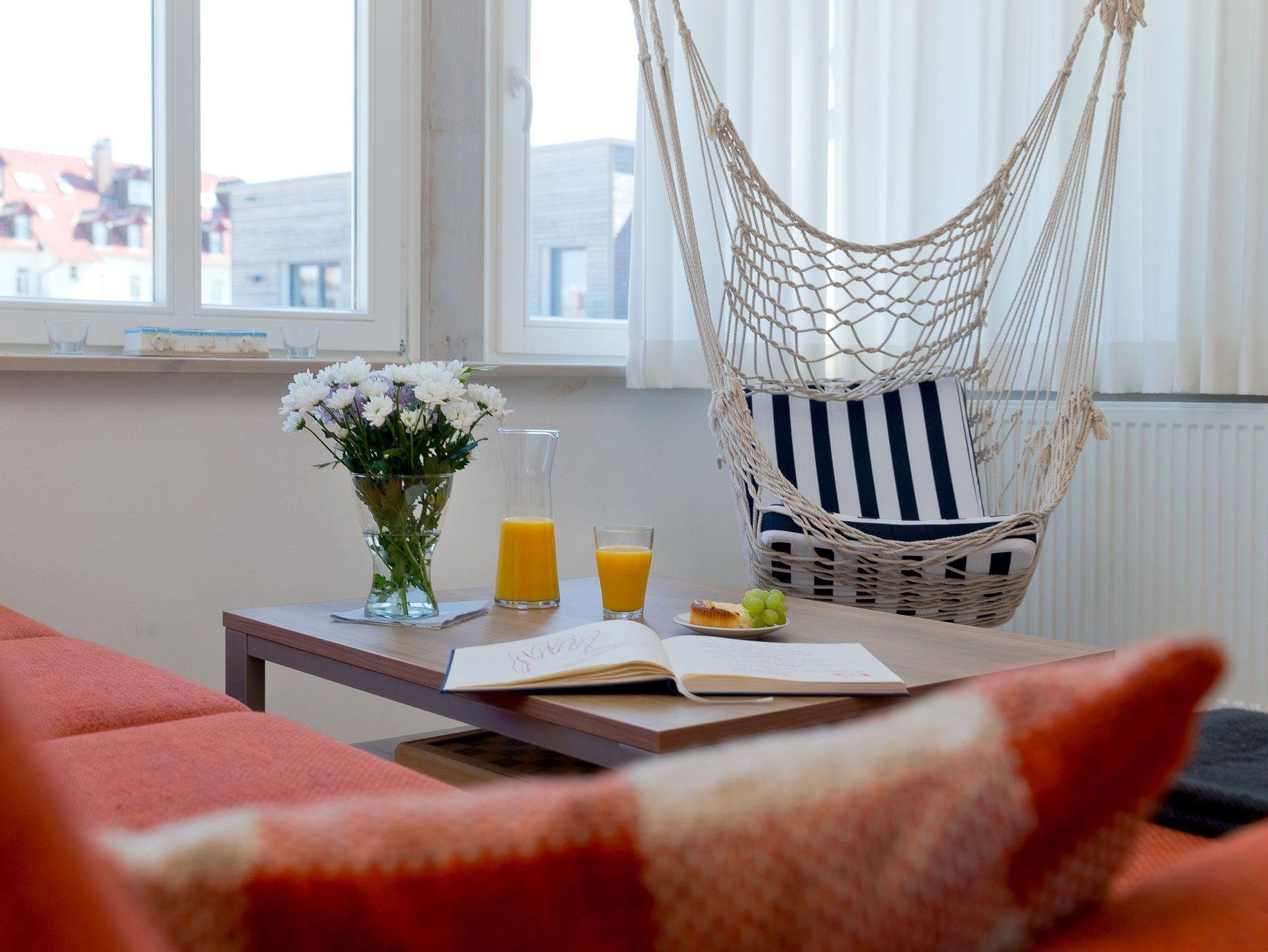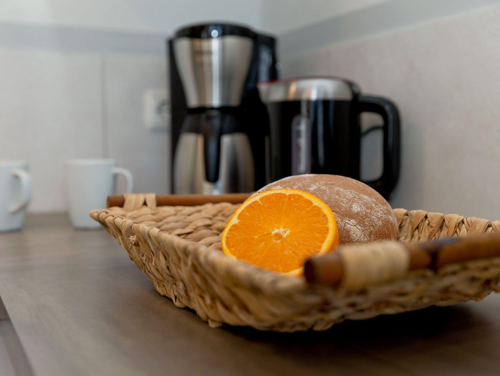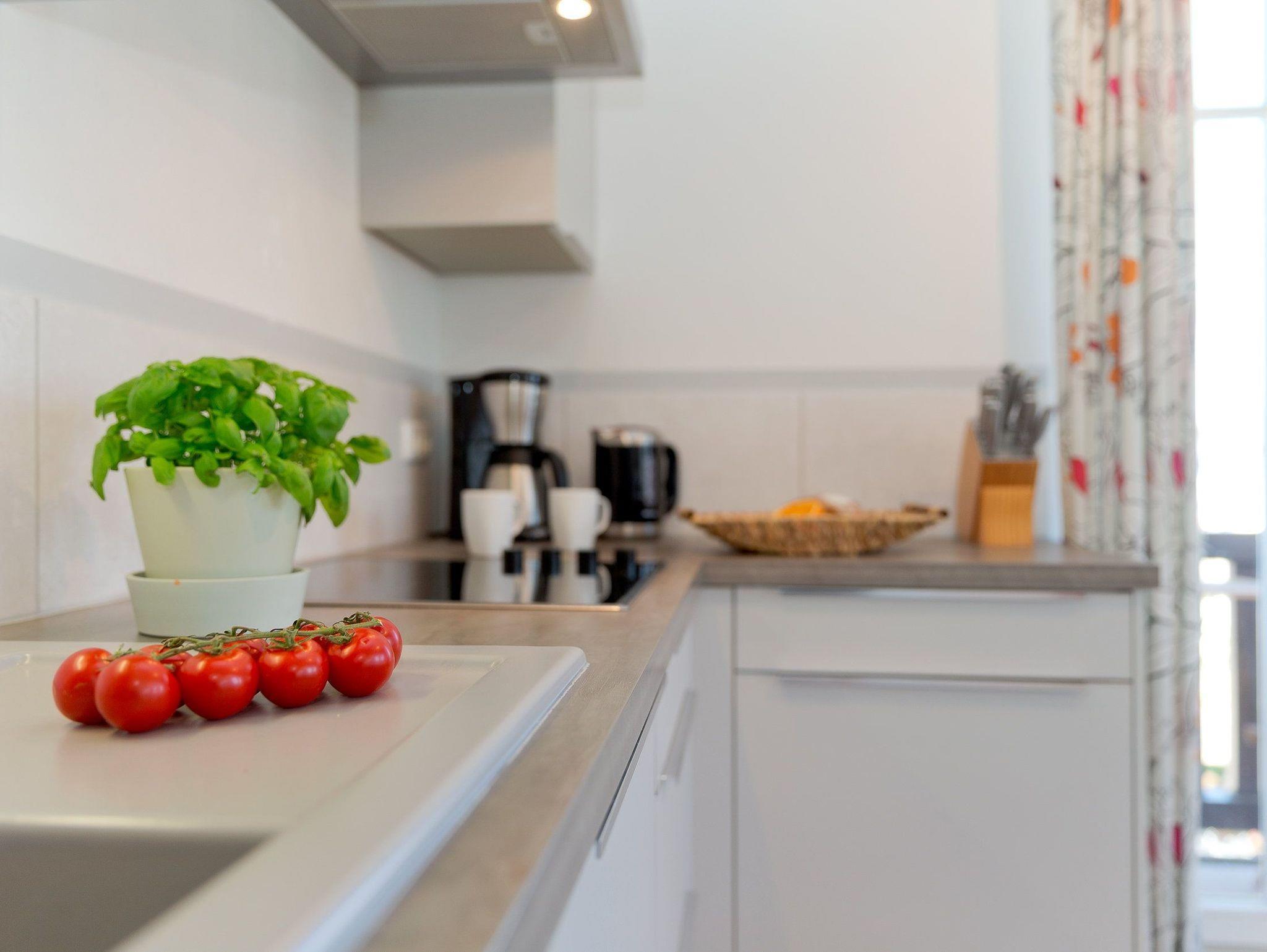Der Wohnbereich verfügt über eine gemütliche Couch (mit Ausziehfunktion für Aufbettung) mit Leselampe, Flachbild-TV (32 Zoll), CD / DVD System, iPod-Dockingstation sowie einen Esstisch mit Schwingstühlen und einen Hängesessel zum Relaxen. Die im Wohnbereich integrierte komplett ausgestattete Einbauküche verfügt zudem über Kühlschrank mit Gefriermöglichkeit, Mikrowelle, Ceran-Kochfeld (4 Platten), Spülmaschine, Wasserkocher, Toaster, Kaffeemaschine (4er Filter), Messerblock. Das Schlafzimmer ist mit einem hochwertigen Boxspringbett (140 x 200 cm) mit Leselampe ausgestattet.