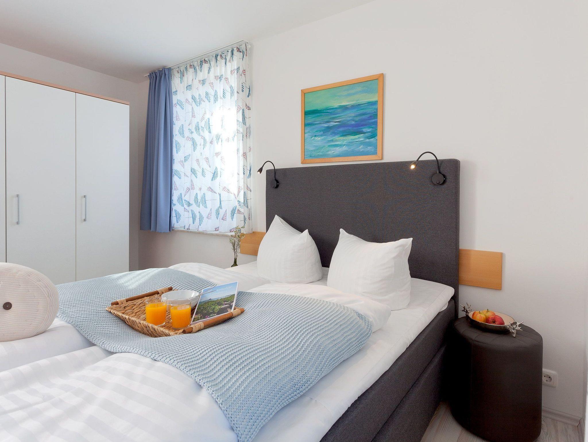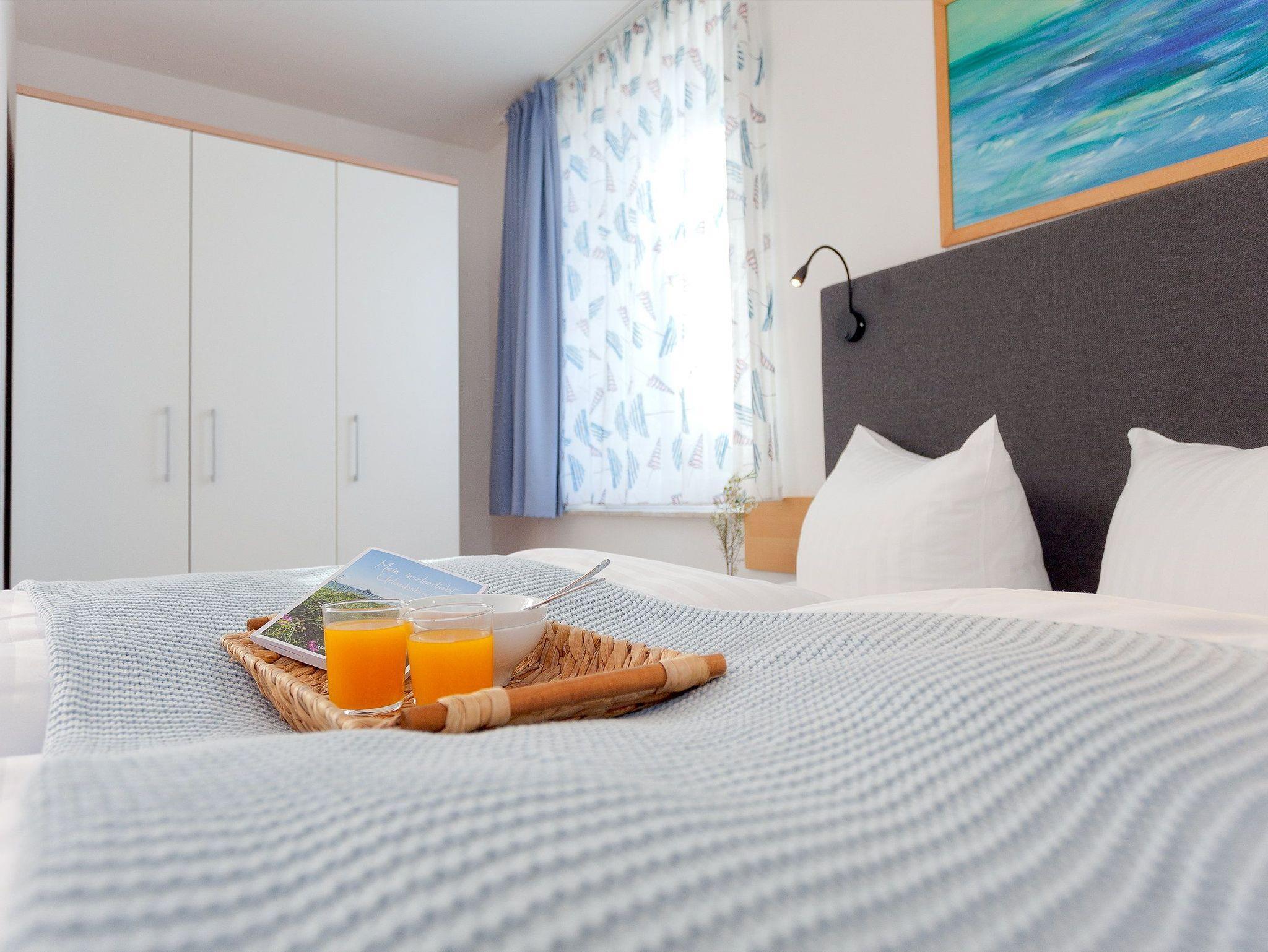 Damit Sie Ihre wohlverdiente Urlaubszeit bereits am Anreisetag in vollen Zügen genießen können, haben wir das Bett für Sie und das für Ihre lieben Mitreisenden bereits bezogen und ein Duschtuch sowie ein kleines Handtuch bereitgelegt. Die Aufbettung für ein Kind ist im Schlafzimmer im Babyreisebett (max. 3 Jahre) oder auf Faltmatratze (3 - 10 Jahre) 80 x 200 cm möglich. Wohn- und Schlafzimmer verfügen jeweils über bodentiefe Fenster mit kleinem Austritt. Das Badezimmer ist mit Dusche, WC, Handtuchtrockner und Fußbodenheizung ausgestattet.