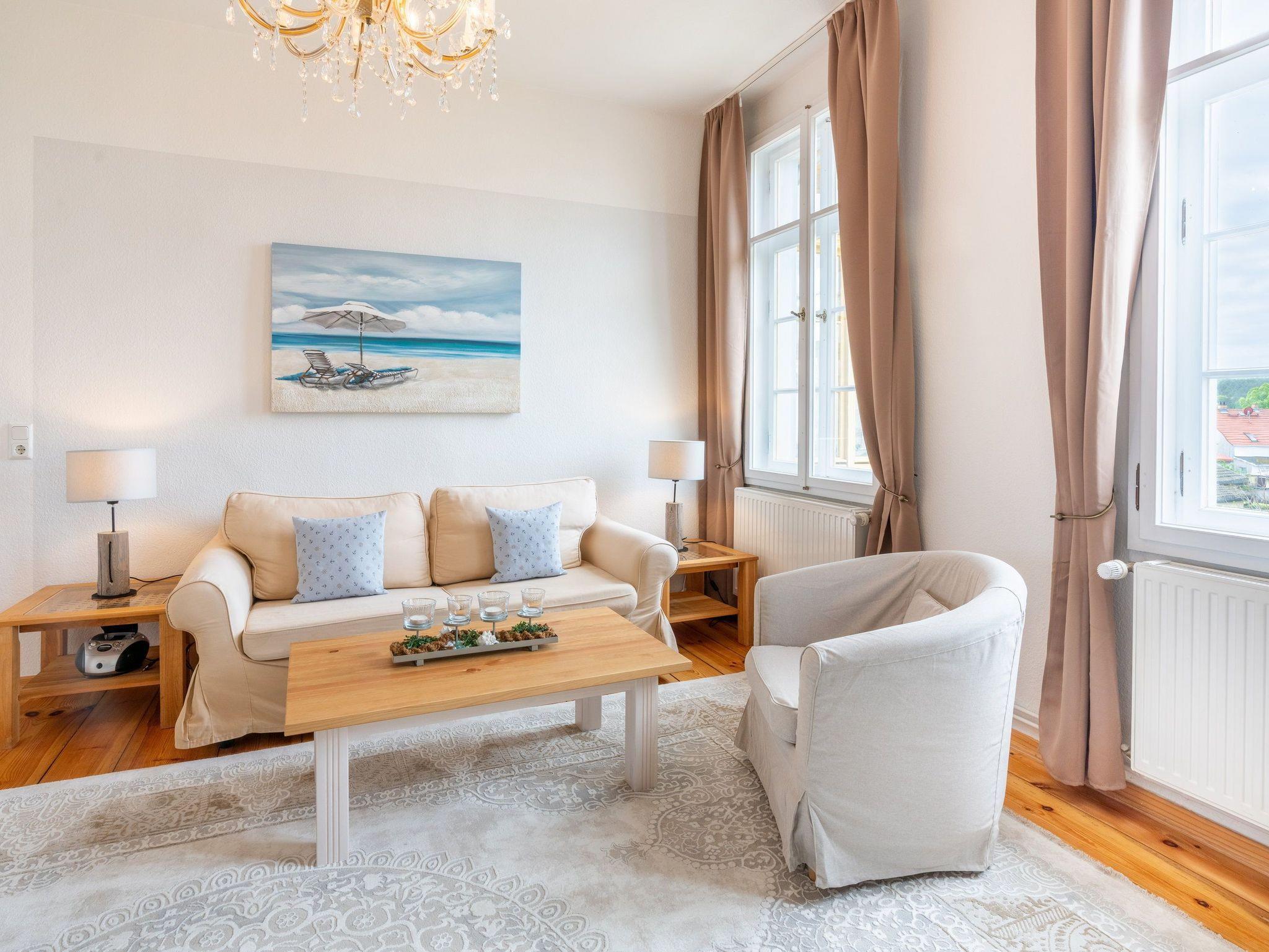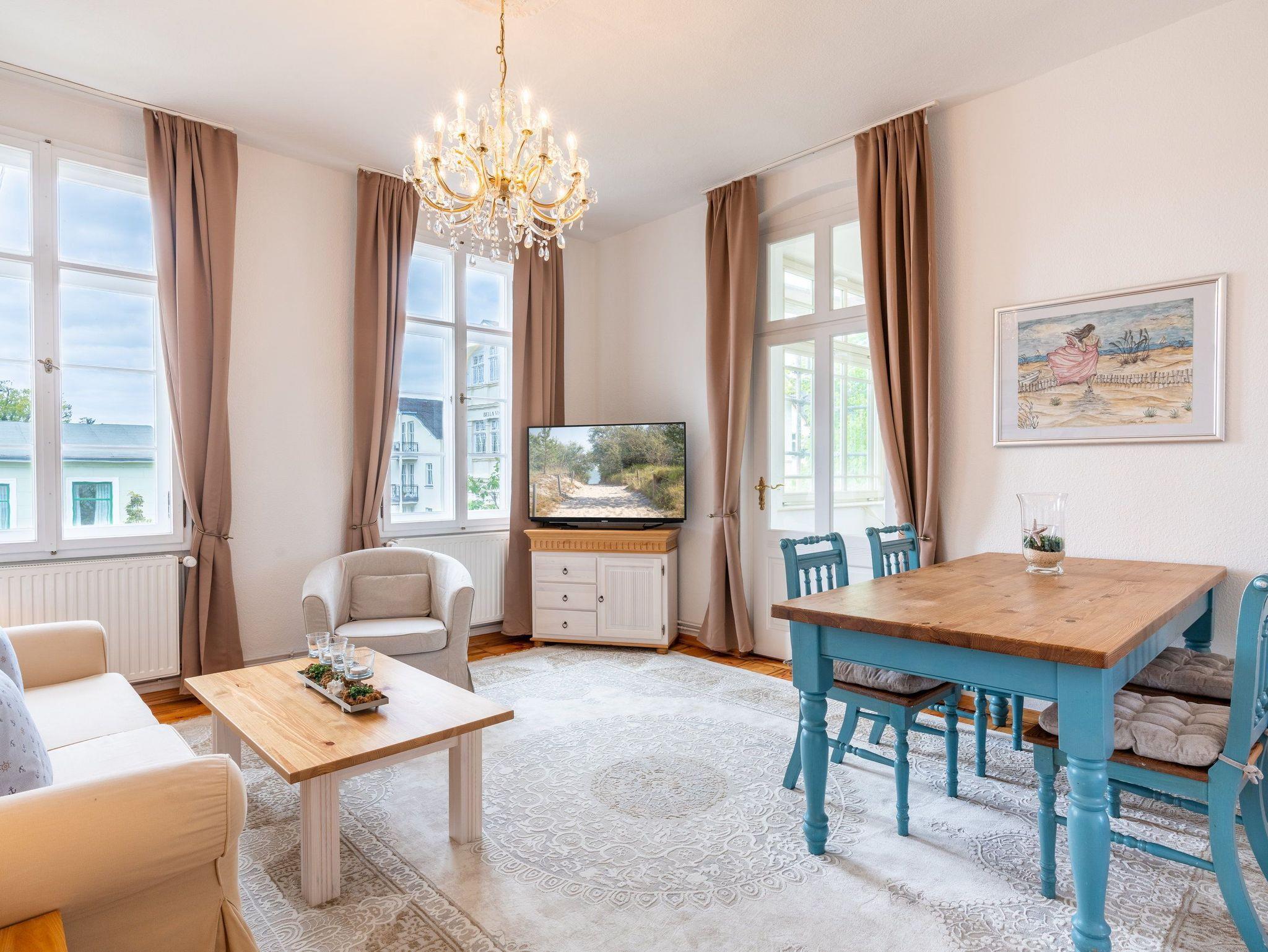 Das großzügige neu möblierte 3-Raum-Appartement im Stil der alten Bäderarchitektur bietet ausreichend Platz auf 83 Quadratmetern für einen erholsamen Urlaub mit bis zu 6 Personen.
