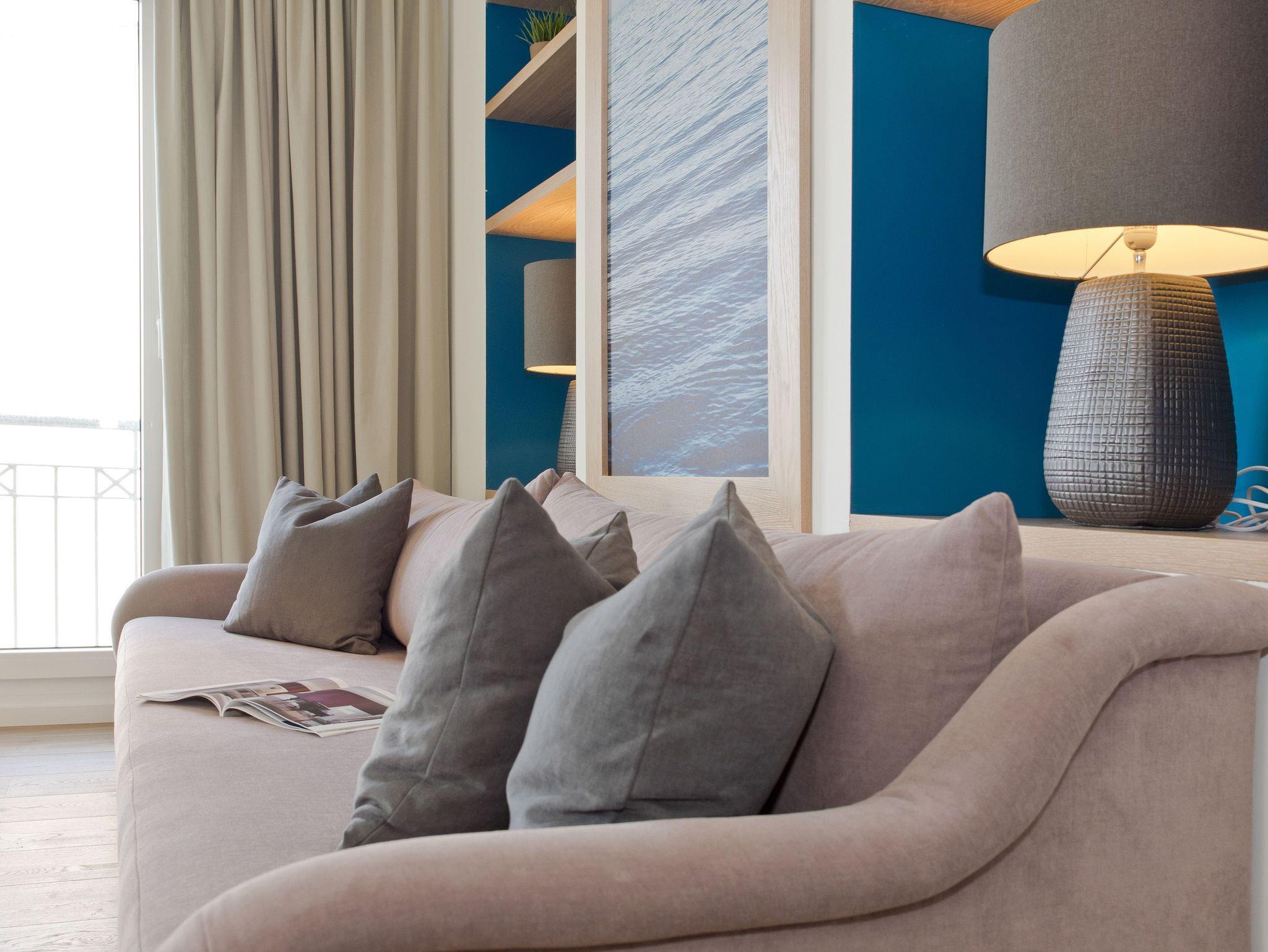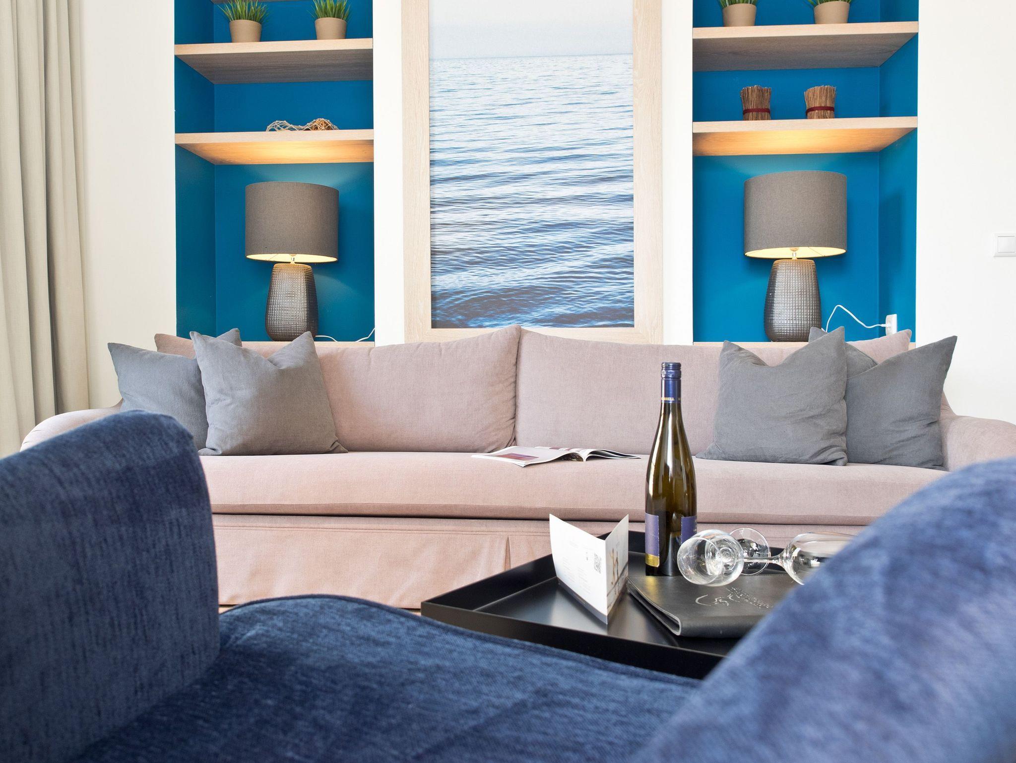 Hier ist Wohlfühlen Programm! Die stylische 3-Raum-Ferienwohnung (88 qm) im 1. Obergeschoss des Vorderhauses im Dünenpalais wird Sie begeistern! Harmonische Farben und Stoffe, edle Holzdielen, wertige Einbauten und ein ausgezeichneter Innenarchitektengeschmack inklusive! Der helle Wohnbereich mit gemütlicher Sitzgruppe, Flat-TV und modernem Design-Gaskamin (per Fernbedienung zu nutzen) schließt sich die offene Küche mit Essplatz an. Zwei Schlafzimmer mit Einbauten und hochwertigen Boxspringbetten (1,80 m x 2,20 m) sorgen für bequemen Schlafkomfort (1 Schlafzimmer mit Flat-TV). Im Bad mit Waschtisch und WC ist die wohnungseigene Sauna integriert, ein Highlight nicht nur in der kalten Jahreszeit. Auf dem Südbalkon lässt es sich entspannt auf 2 Liegen Relaxen. Ein Pkw-Stellplatz steht vor dem Haus zur Verfügung. Für Ihren Komfort steht die Erstausstattung Wäsche für Sie bereit. Für Kleinkinder können ein Babyreisebett (ohne Matratze und Kinderbettzeug) und ein Kinderhochstuhl gegen einen Aufpreis bestellt werden.