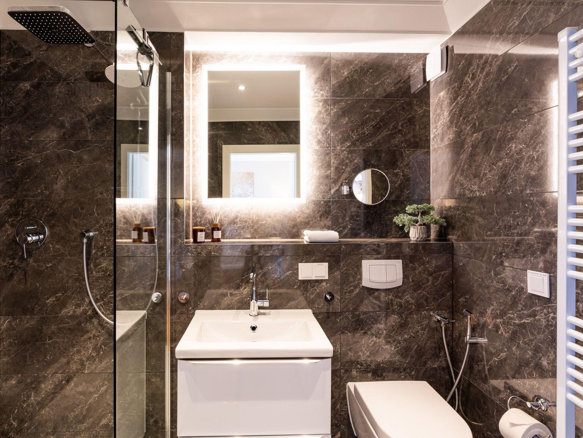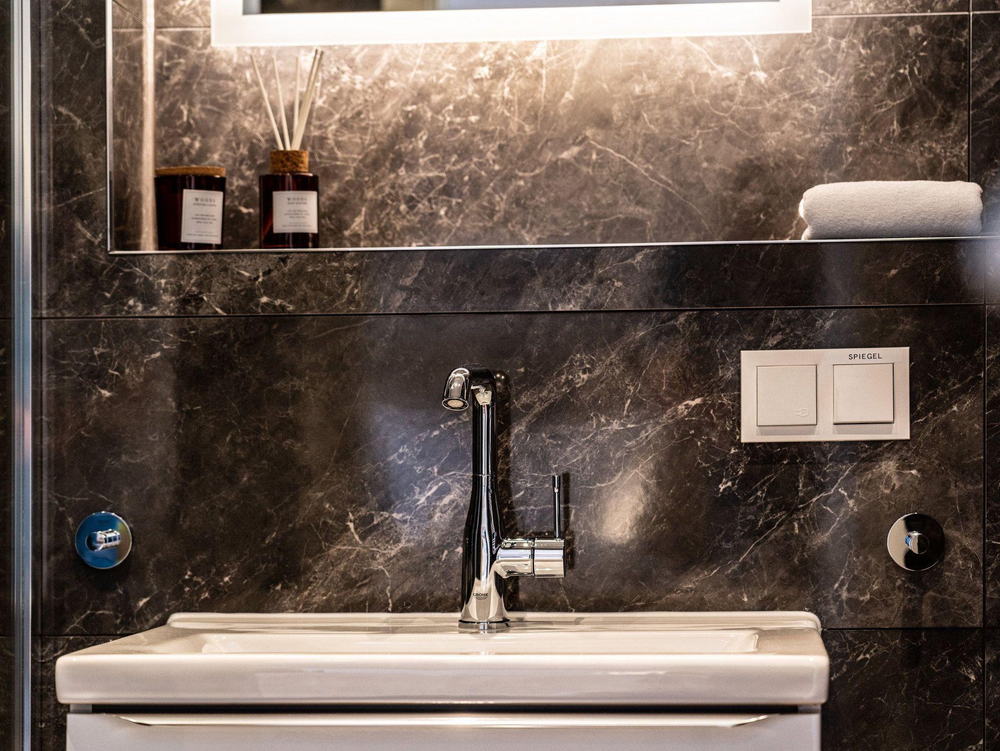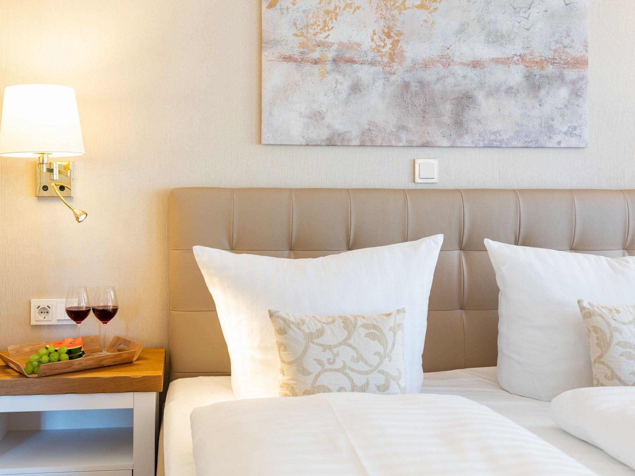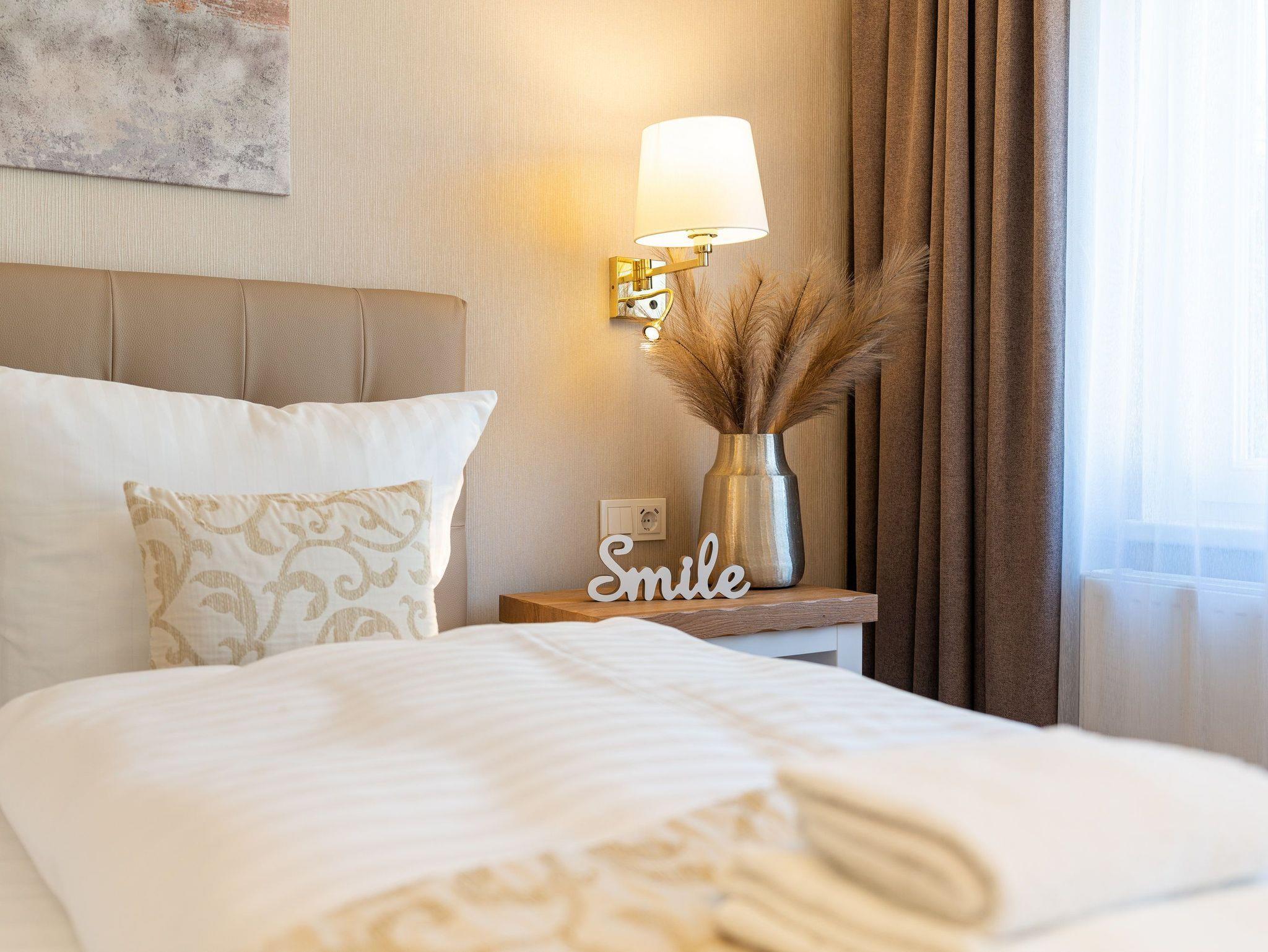 Das zweite Schlafzimmer verfügt ebenfalls über ein Boxspringbett (160 x 200cm / zwei getrennte Matratzen), TV und Staumöglichkeiten. Highlight hier ist der angrenzende Balkon. Genießen Sie von diesem die ersten Sonnenstrahlen des Tages bei einer guten Tasse Kaffee. Ein zweites Badezimmer mit bodengleicher Dusche und WC rundet den Urlaubskomfort für dieses Appartement hervorragend ab. Damit Sie Ihre wohlverdiente Urlaubszeit bereits am Anreisetag in vollen Zügen genießen können, haben wir das Bett für Sie und das für Ihre lieben Mitreisenden bereits bezogen und ein Duschtuch sowie ein kleines Handtuch bereitgelegt.