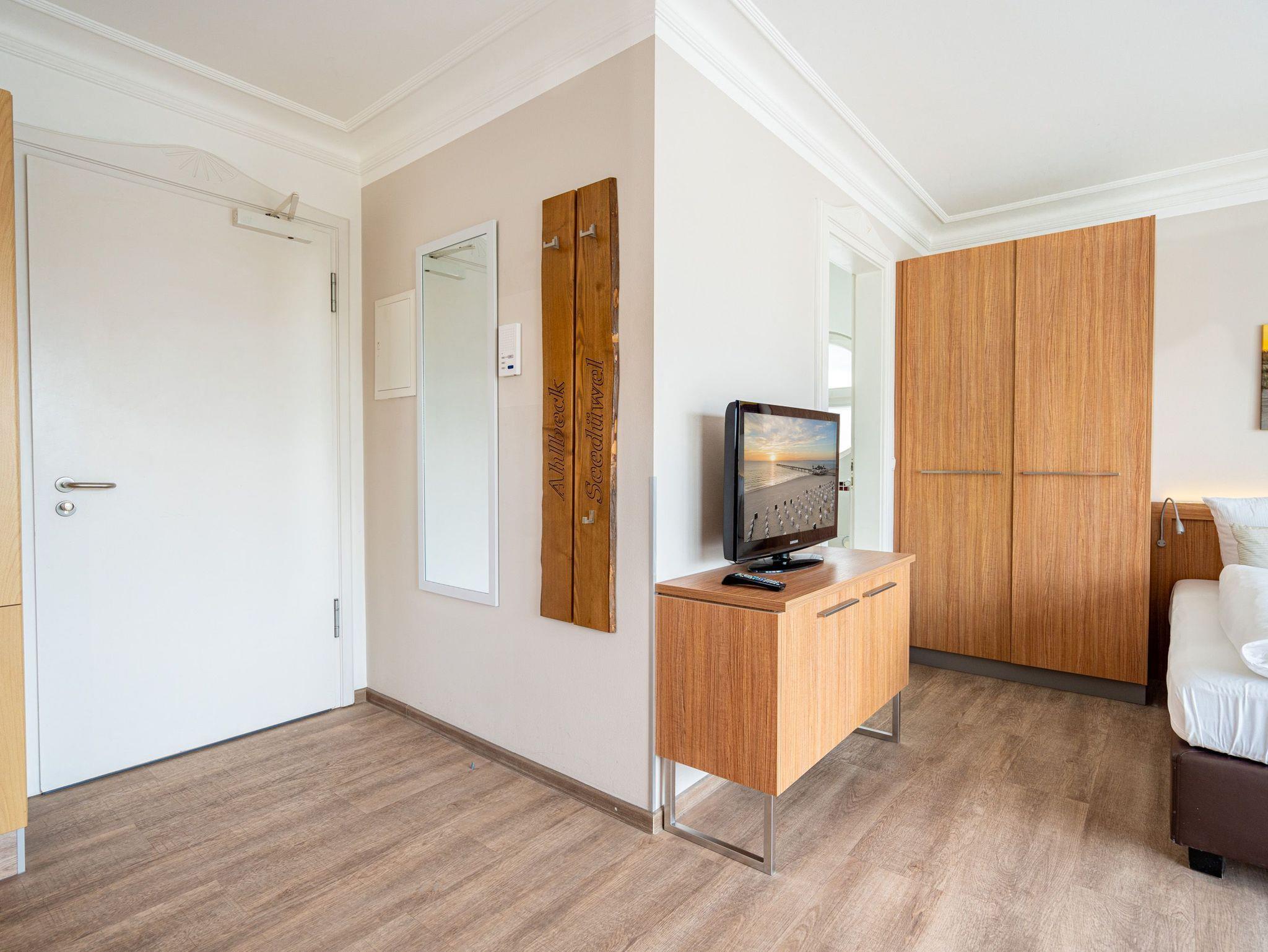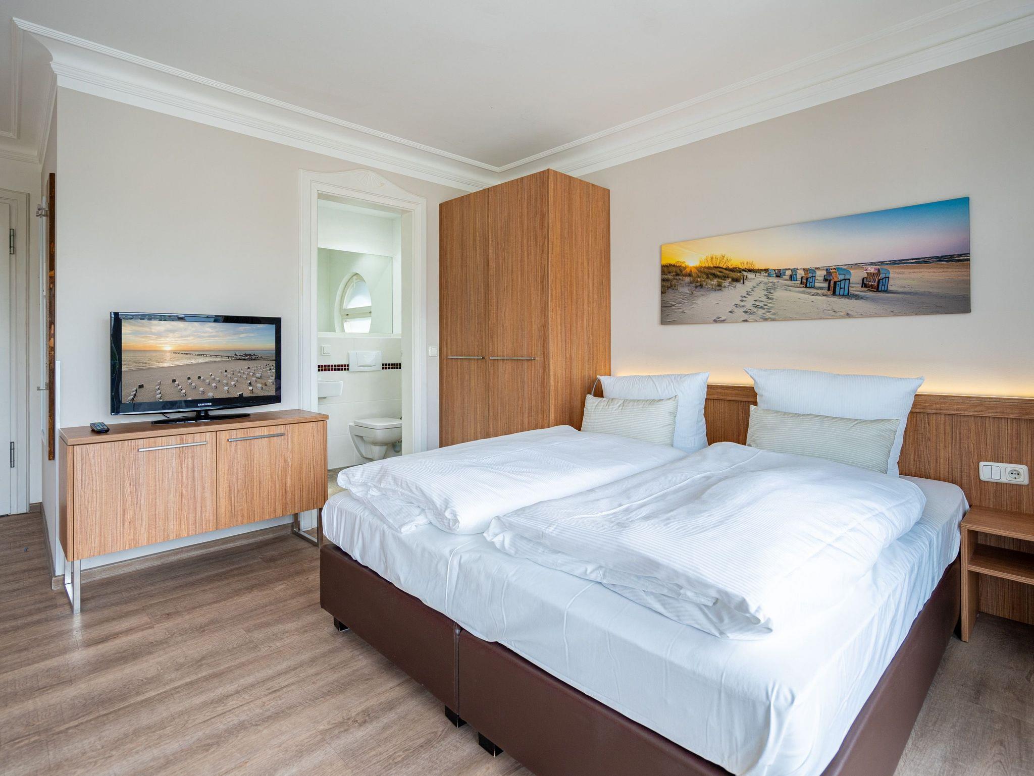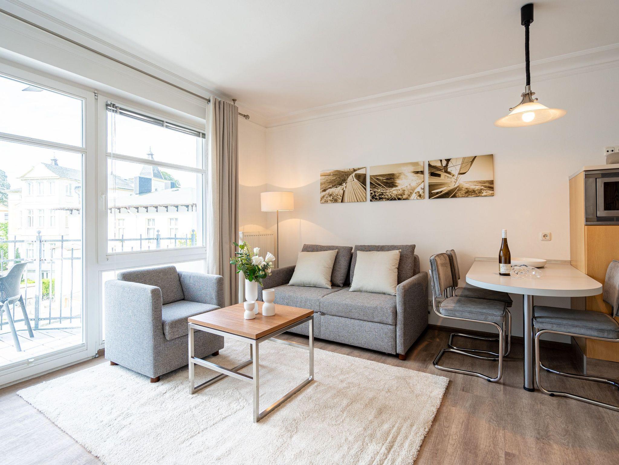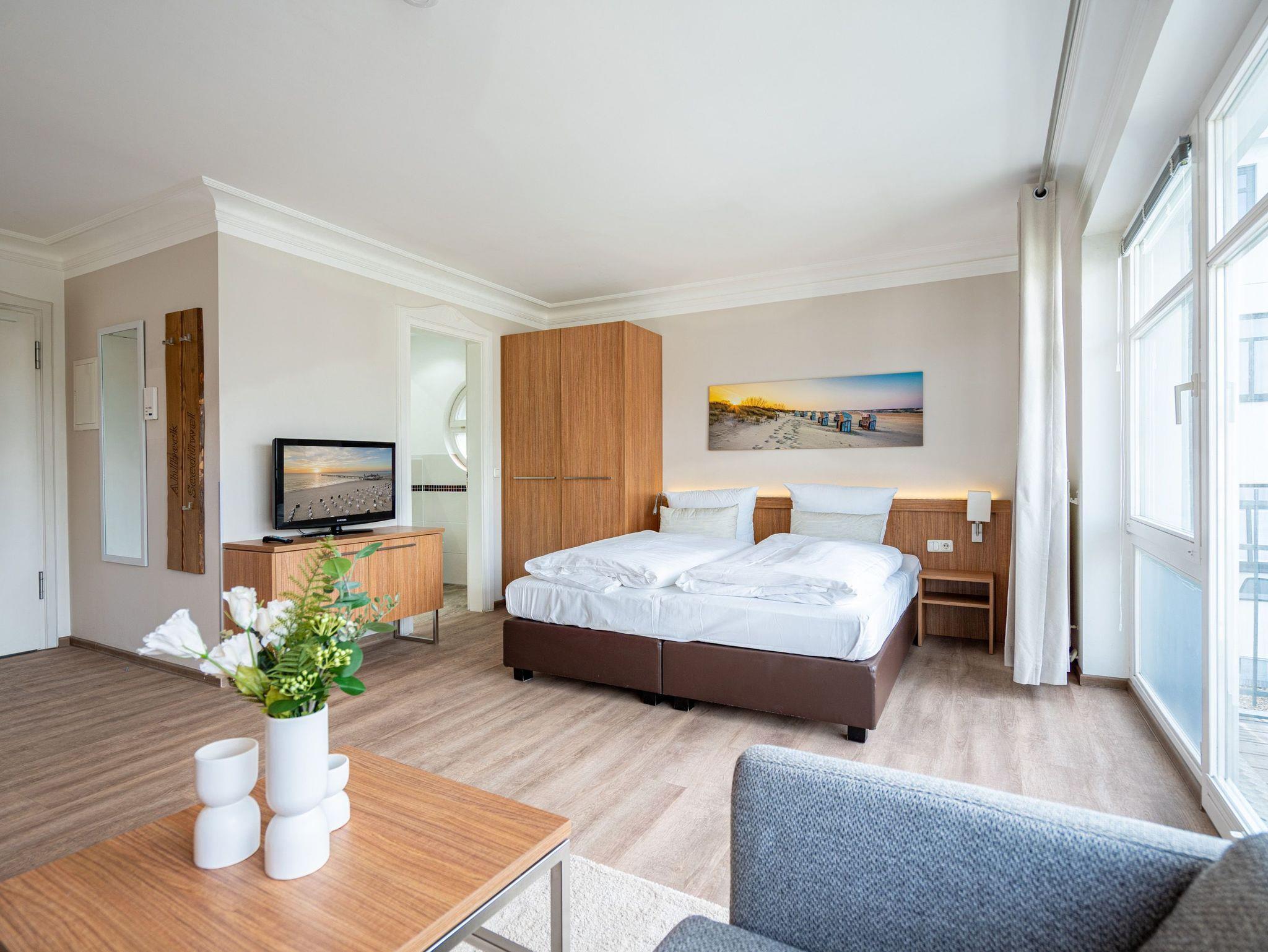 Die 1-Raum-Ferienwohnung Nr. C08 in der Villa Seedüwel bietet auf 35 qm idealen Platz für zwei Personen und befindet sich im 2. Obergeschoss. Der offene Wohnbereich verfügt über eine gut ausgestattete Küchenzeile mit einem 2-Platten-Cerankochfeld, einer Mikrowelle und einem Kühlschrank mit Gefrierfach. Ein Essplatz für zwei Personen, eine gemütliche Sitzgruppe und ein Flat-TV sorgen für eine angenehme Atmosphäre. Das komfortable Doppelbett (1,80 m x 2,00 m), eine Kommode und ein Kleiderschrank sind ebenfalls Teil des Wohnbereichs. Von hier aus gelangen Sie auf den sonnigen Süd-West-Balkon. Das Tageslicht-Bad ist mit einer Dusche, einem Waschbecken und einem WC ausgestattet. Ein Stellplatz in der Tiefgarage ( Einfahrthöhe 2,03m) des benachbarten Hauses „Strandterrasse“ ist für Sie reserviert. WLAN steht Ihnen kostenfrei zur Verfügung.