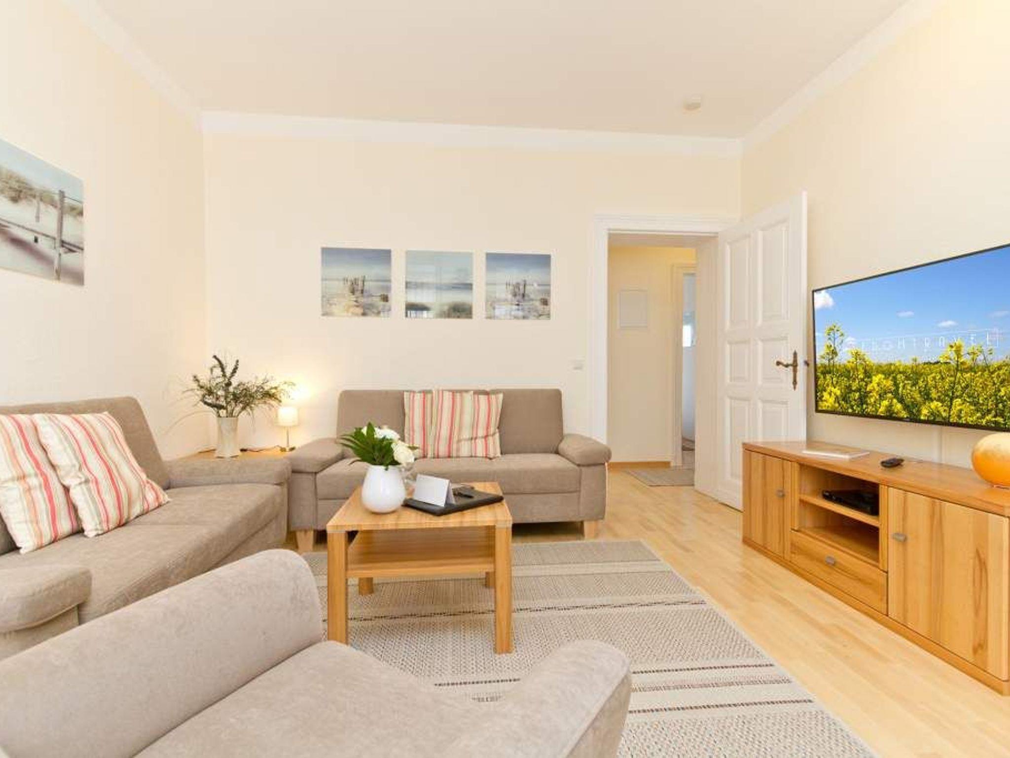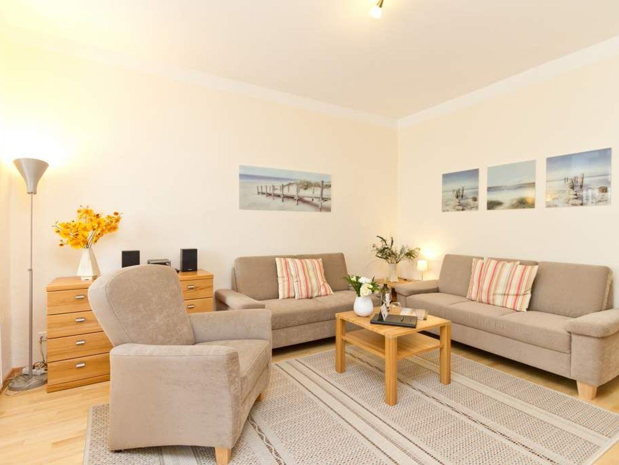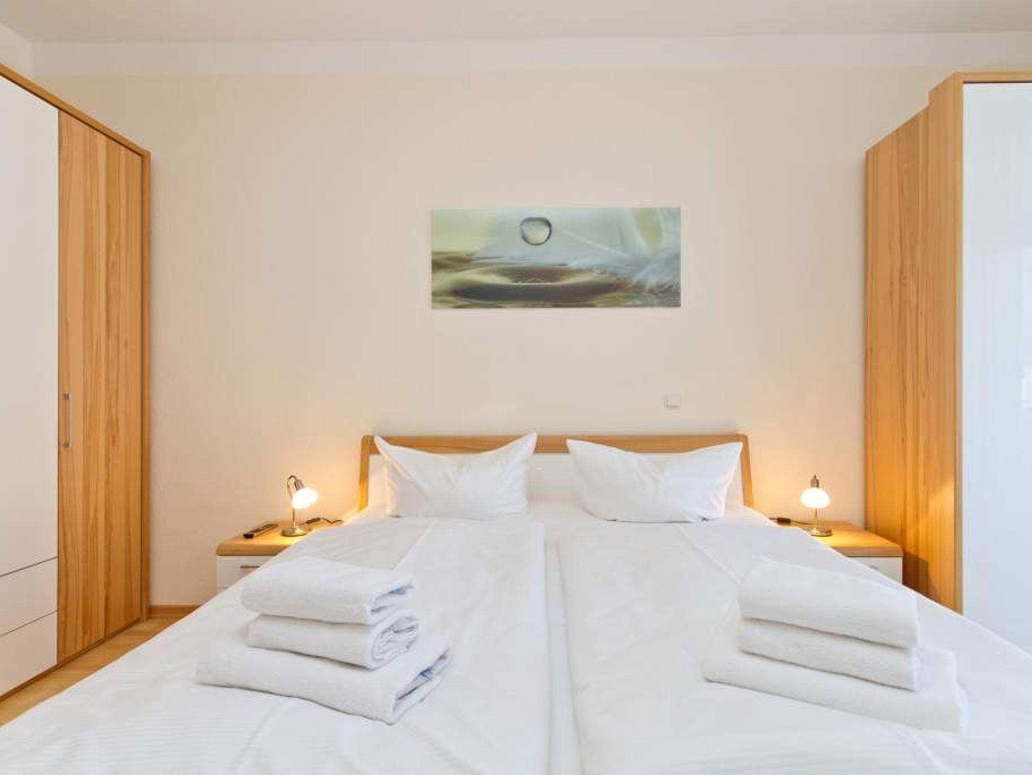 Diese schöne 3-Raum-Ferienwohnung im Erdgeschoss ist modern und sehr komfortabel eingerichtet. Die Wohnung bietet Ihnen ein großes Wohnzimmer, eine verglaste Veranda mit Essbereich, eine komplett ausgestattete Küchenzeile, ein Schlafzimmer mit Doppelbett, ein zweites Schlafzimmer mit Schlafcouch (1,50m x 2,00 m). Beide Schlafzimmer sind mit einem Fernseher ausgestattet. Das Bad ist komfortabel mit Dusche, WC, BD, Föhn und Schminkspiegel ausgestattet. Auf Ihrem großzügigen Balkon genießen Sie die Morgensonne.