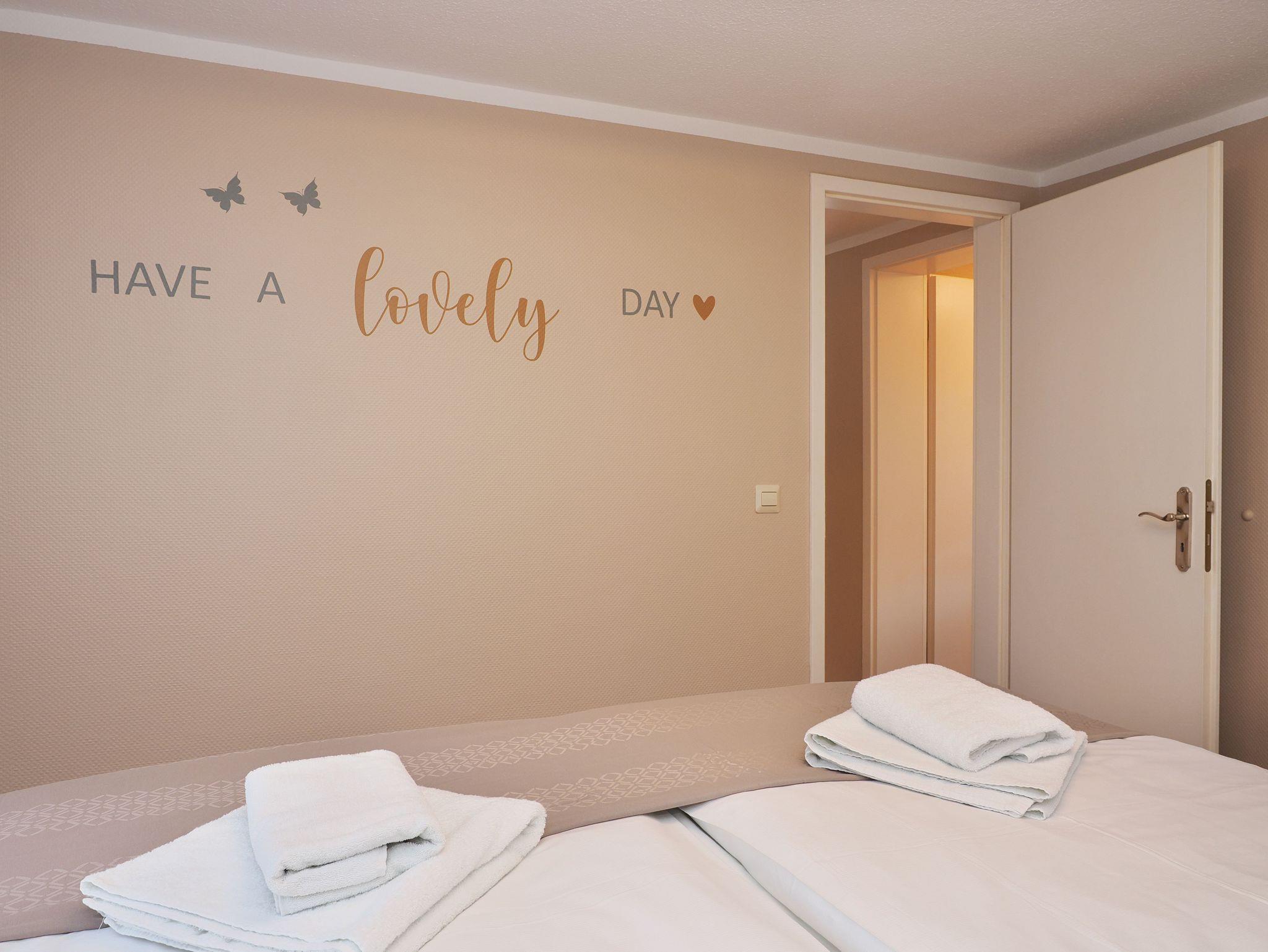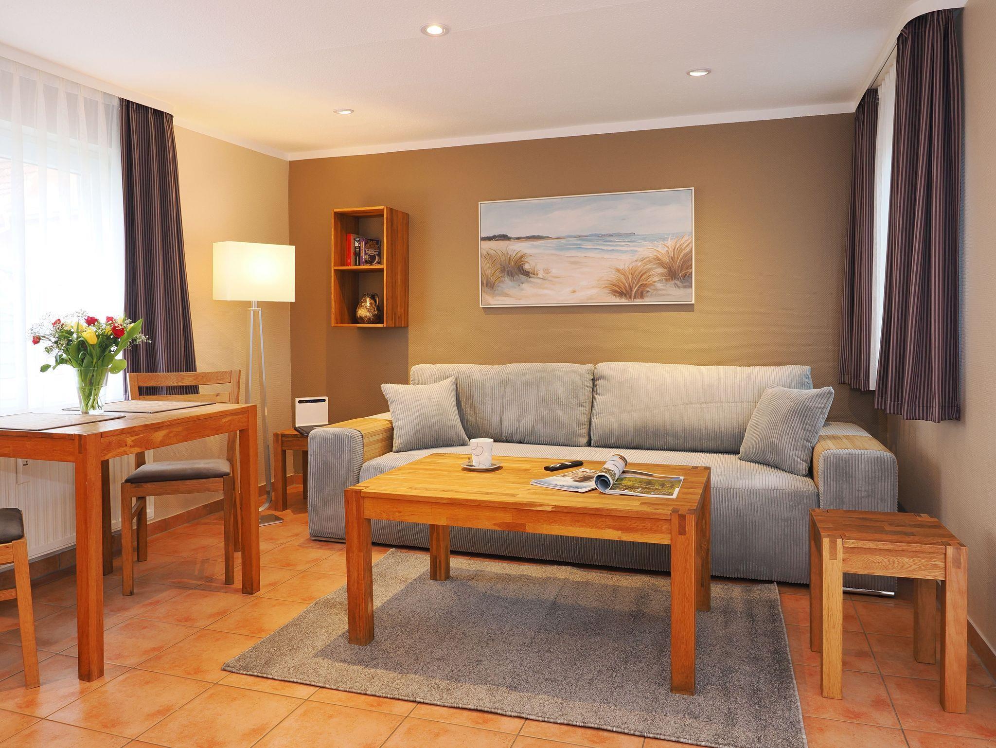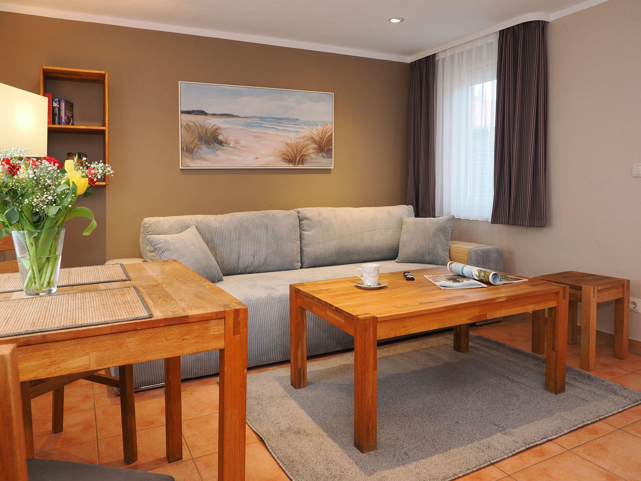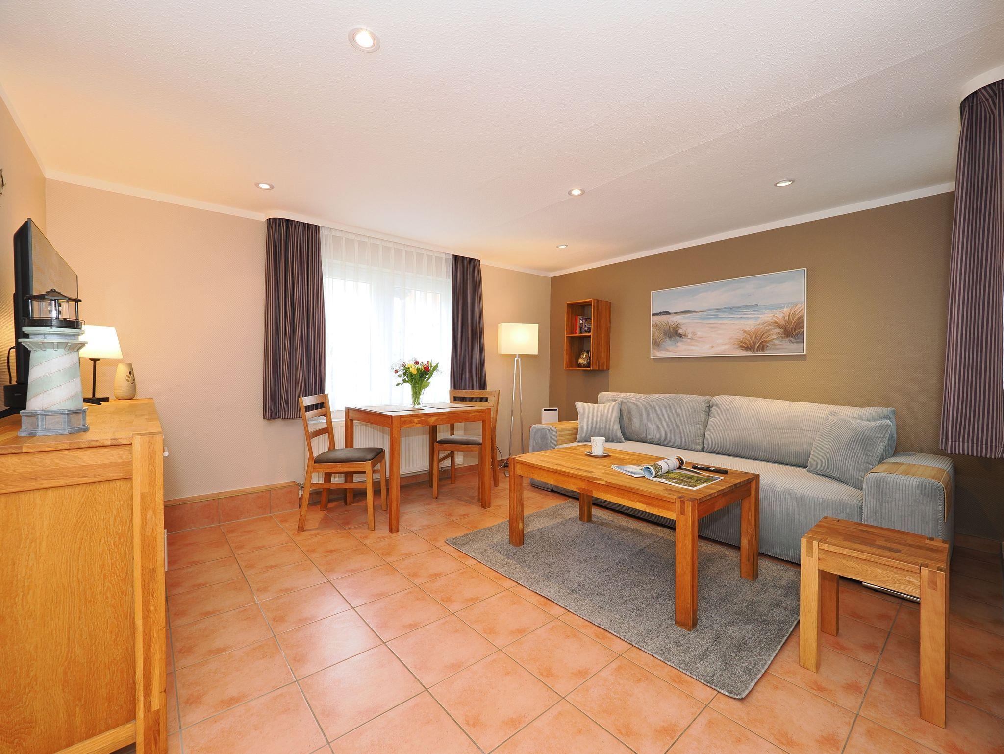 Das Wohnzimmer verfügt über eine Schlafcouch, die als Aufbettung für die 3. Person dient (180 x 200cm) und einen großen TV, der auch an ungemütlichen Tagen für Unterhaltung sorgt.