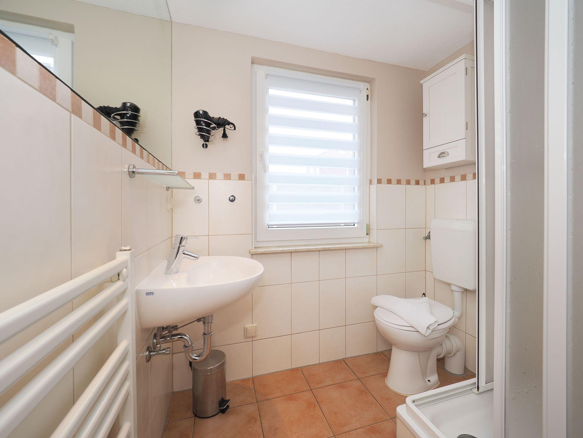 Das kleine aber feine Tageslichtbad verfügt über ein WC und eine Dusche.