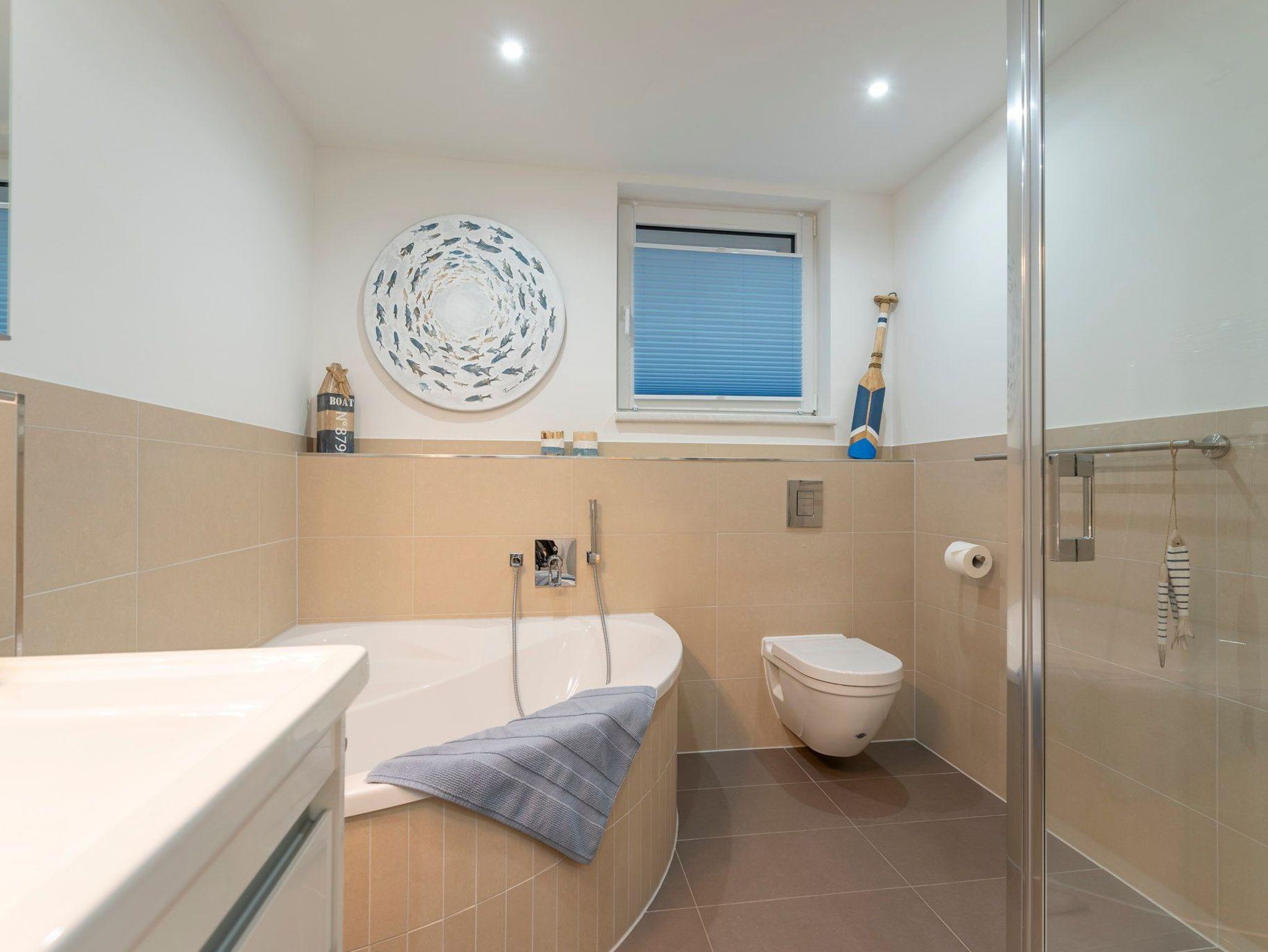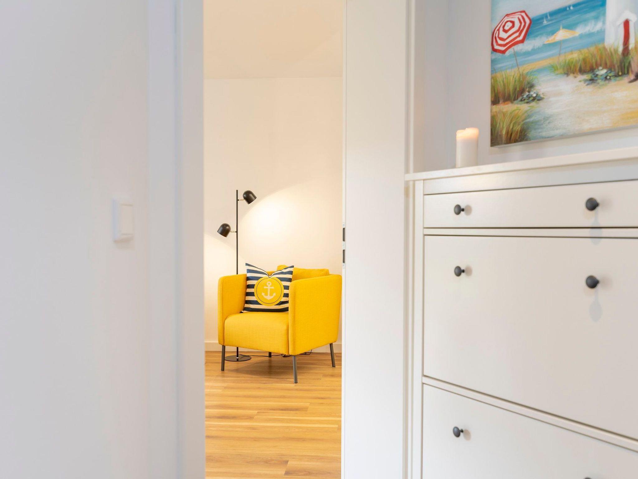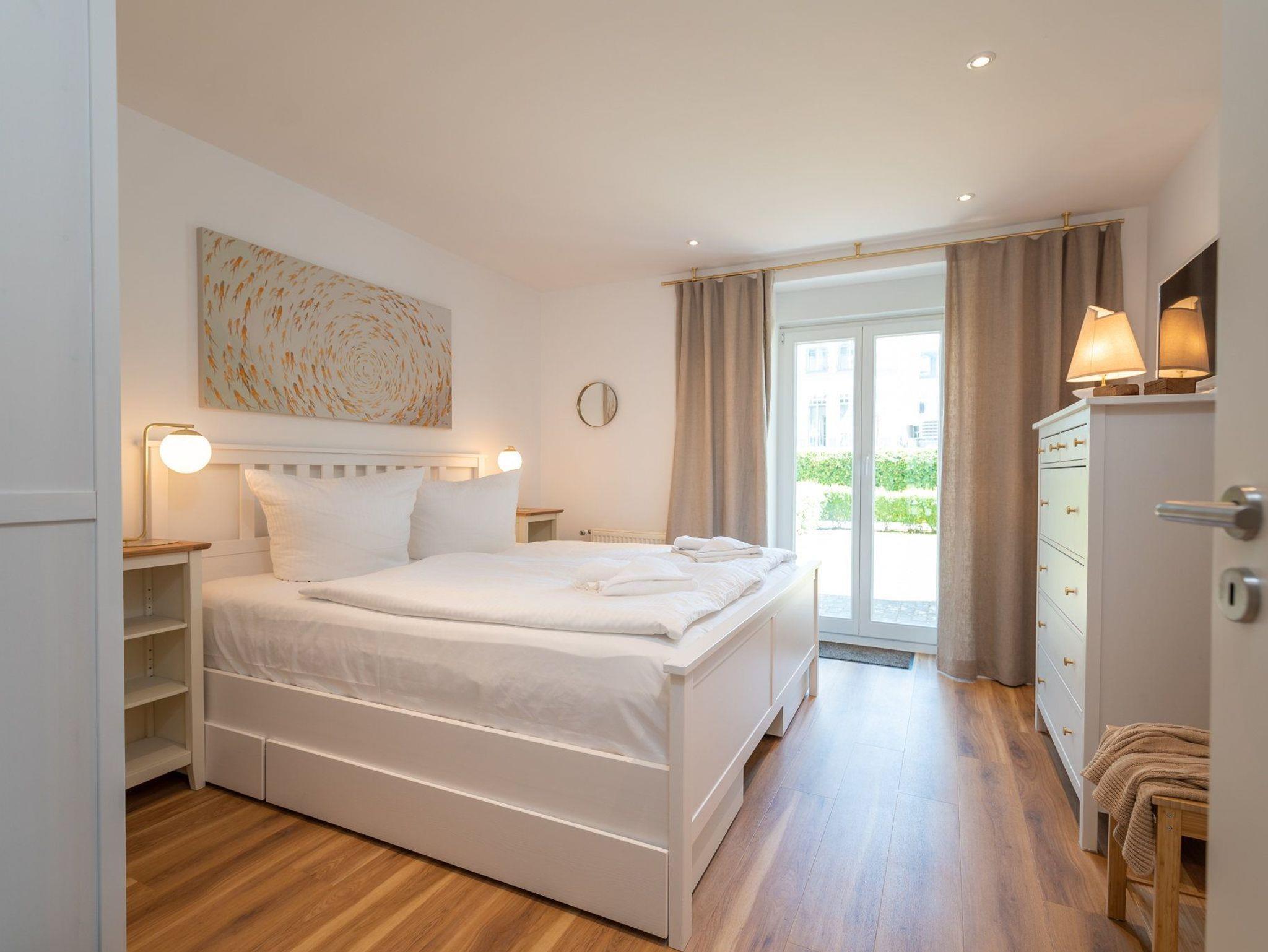 Im Gartengeschoss des Hauses begrüßen wir Sie, dank der warmen Farbgebung, in wohliger Atmosphäre auf 67 Quadratmetern zur schönsten Zeit des Jahres: Ihrer Urlaubszeit. Der gemütlich gestaltete Wohn- und Essbereich lädt dank bequemer Eckcouch sowie Esstisch mit Sitzgelegenheit für bis zu vier Personen zum gemütlichen Beisammensein ein. Die hochwertige und komplett ausgestattete Küche ist vom Wohnbereich optisch etwas abgetrennt und lässt Dank Geschirrspüler, Kühlschrank mit Gefrierfach, Wasserkocher, Toaster, Kaffee- und Nespresso Maschine, Mikrowelle, Kochfeld ein jedes Kochherz höher schlagen; so können Sie sich auch im Urlaub jederzeit eine Ihrer Lieblingsspeisen im Nu zubereiten. Lassen Sie den Abend entspannt im Anschluss vor dem Flat TV oder beim Blick ins Grüne ausklingen. Auf der angrenzenden Terrasse mit eigenem Gartenbereich können Sie sich für ein Sonnenbad oder einem gemütlichen Abend an der Ostseeluft zurückziehen. Im Schlafzimmer erwartet Sie ein bequemes Doppelbett beginnen Sie einen neuen Urlaubstag frisch ausgeschlafen und gut erholt.