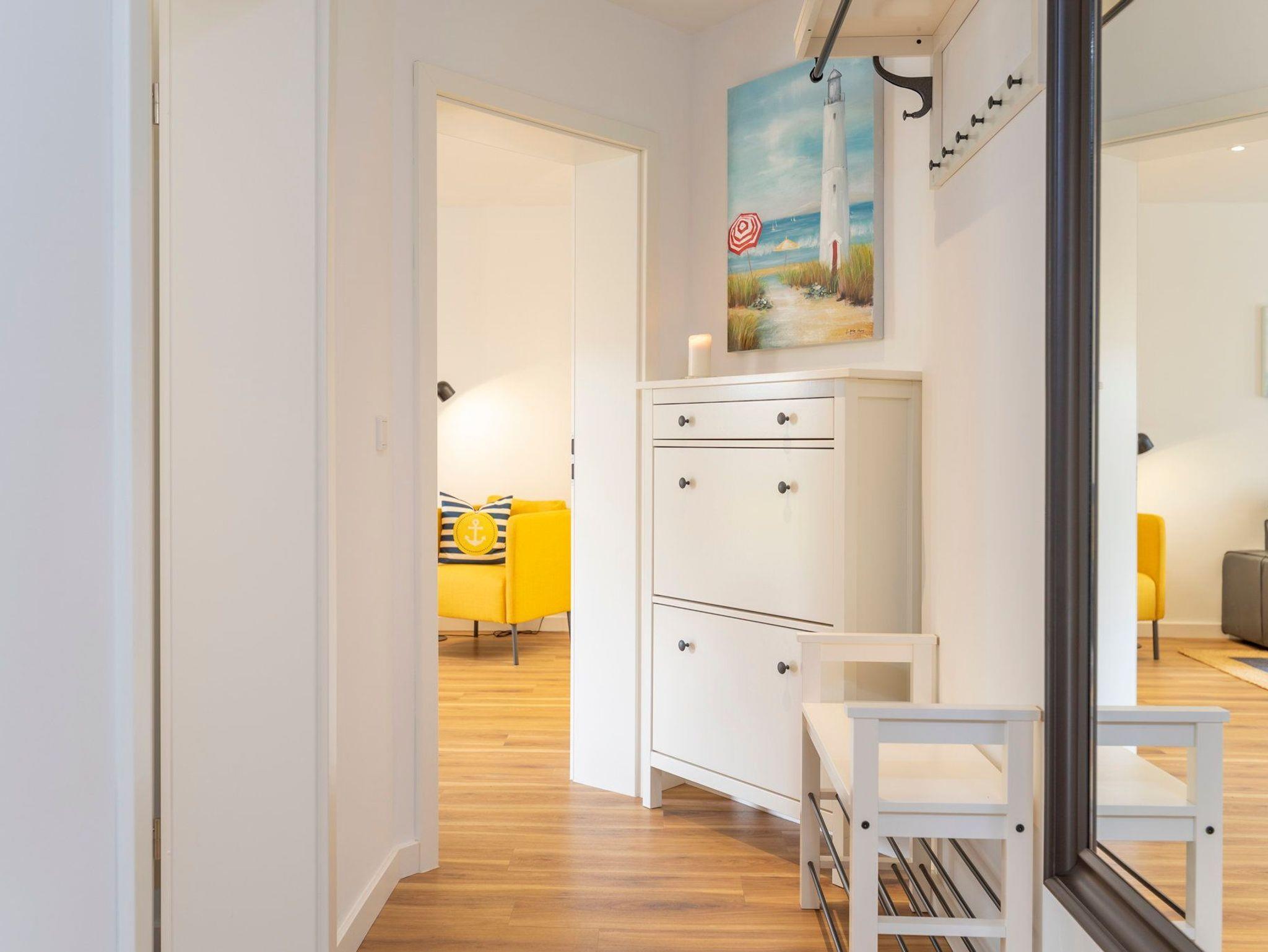 Damit Sie Ihre wohlverdiente Urlaubszeit bereits am Anreisetag in vollen Zügen genießen können, haben wir das Bett für Sie und das für Ihre lieben Mitreisenden bereits bezogen und ein Duschtuch sowie ein kleines Handtuch bereitgelegt. Die Schlafcouch (Liegefläche ca. 160 x 200cm) mit bequemer Matratze im Wohnbereich lässt sich im Handumdrehen für die dritte und vierte Person in ein weiteres Schlafgemach umwandeln. Ein weiteres Highlight Ihrer Urlaubsunterkunft ist das Badezimmer, welches über eine Eckbadewanne, Dusche und Waschmaschine sowie einen Trockner verfügt. Des Weiteren ist ein WC und Haarfön vorhanden. Kostenfreier WLAN-Zugang, ein gemeinschaftlich nutzbarer Fahrradabstellraum sowie ein Stellplatz in der Tiefgarage runden die Annehmlichkeiten dieses Appartements ab.