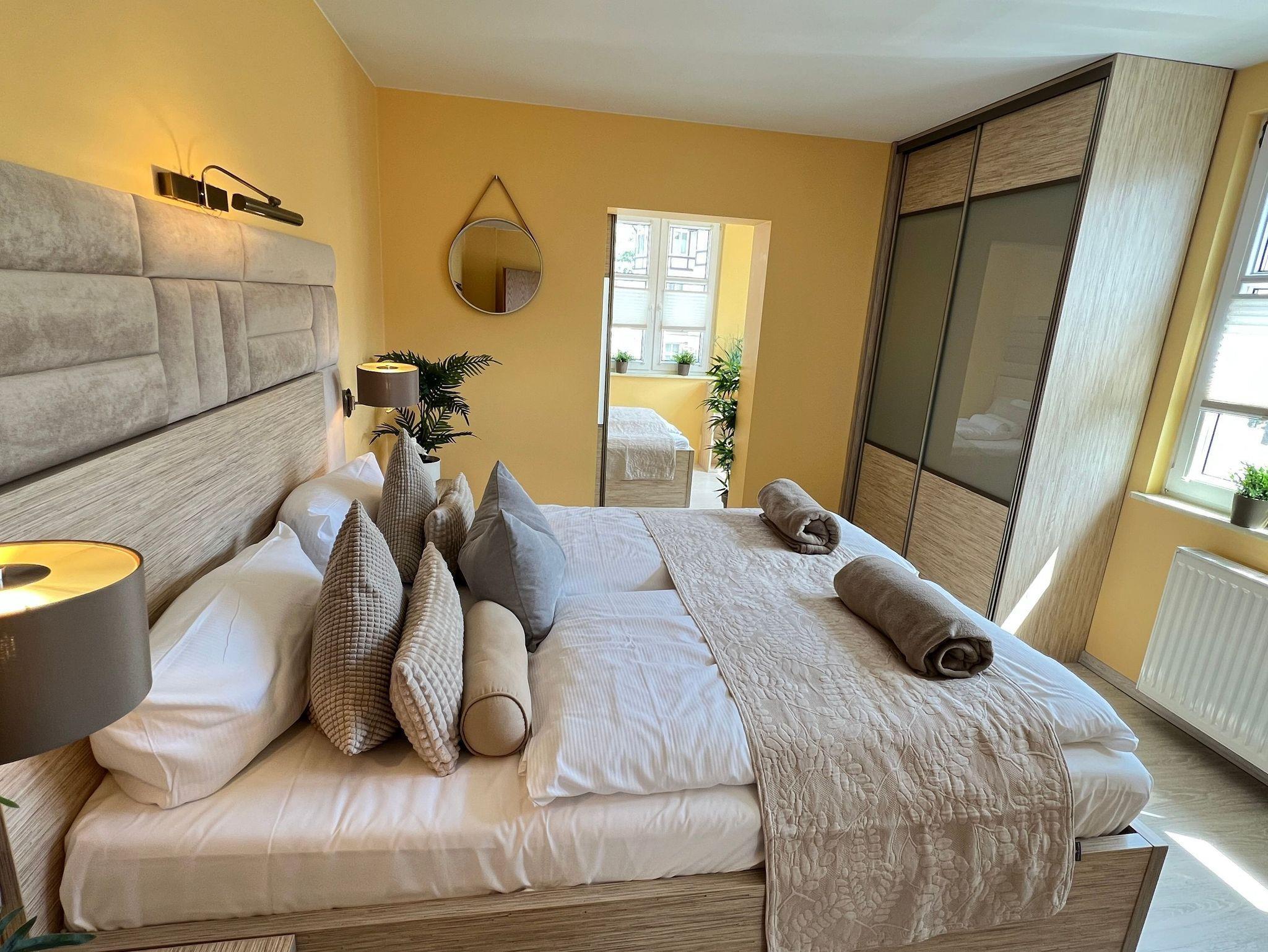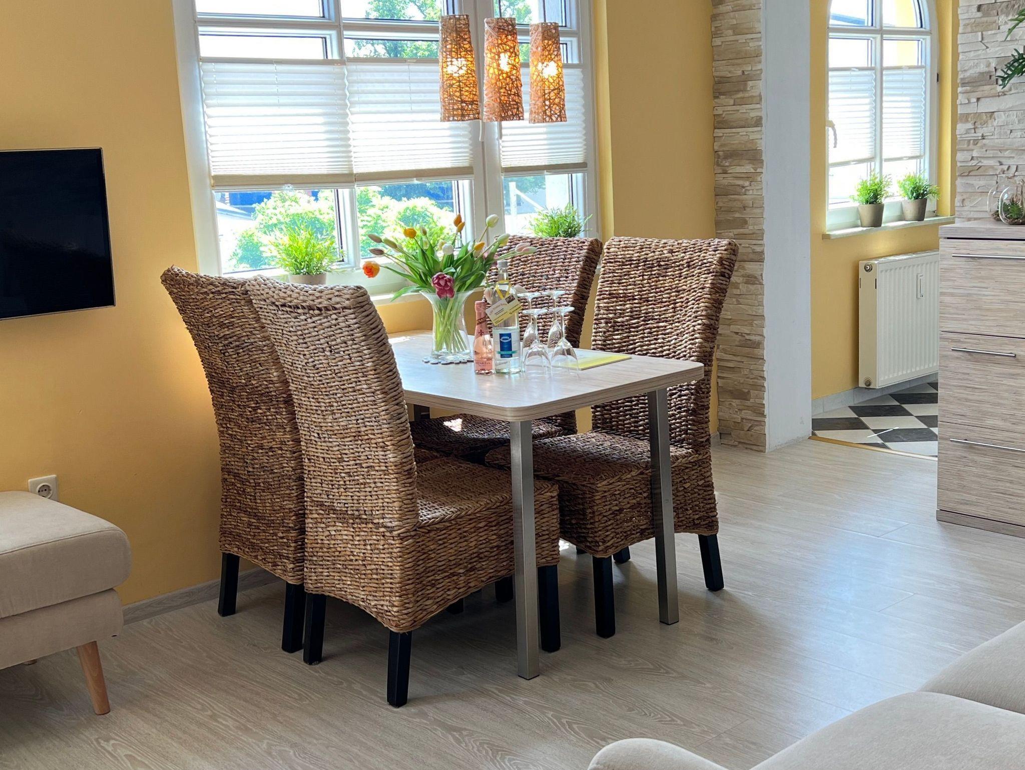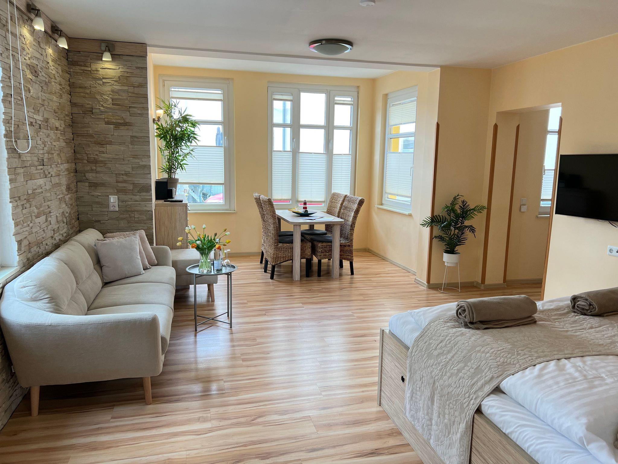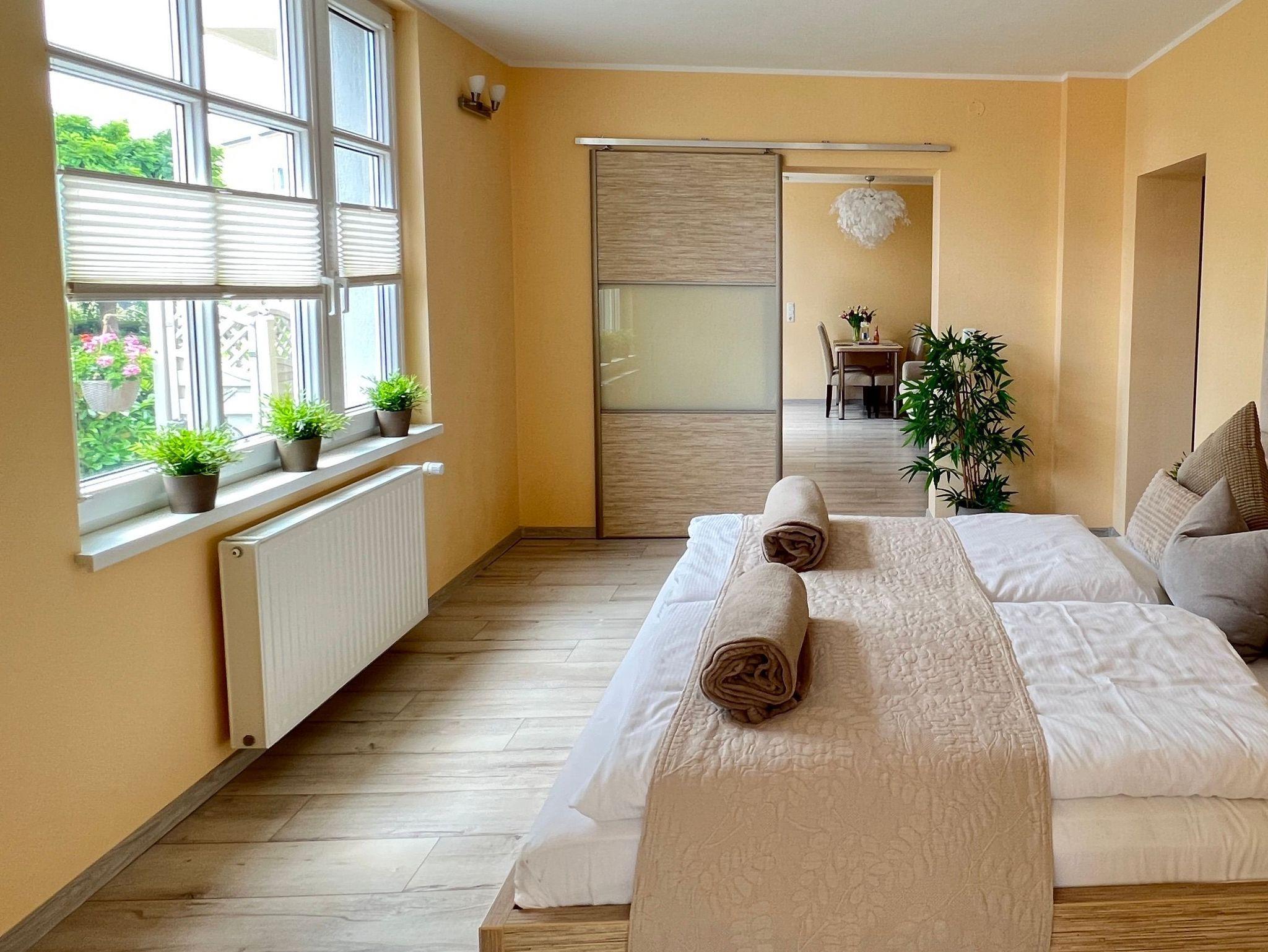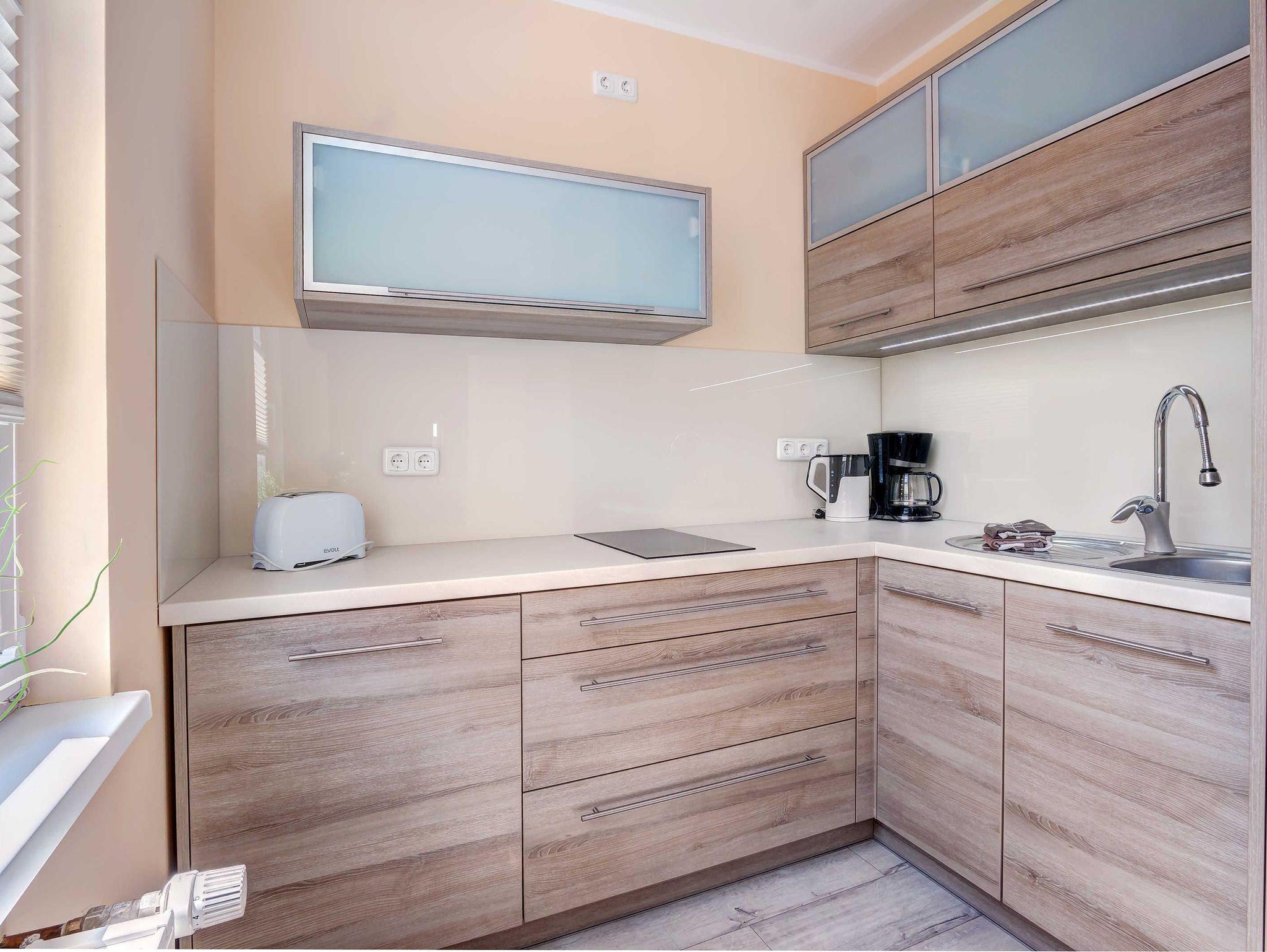 Die nur 80 Meter vom Strand entfernte Erdgeschosswohnung hat einen separaten Eingang. Sie ist besonders familienfreundlich und für Rollstuhlfahrer geeignet durch einen stufenlosen Zugang. Selbst die gesamte Ferienwohnung ist barrierefrei. Allergiker fühlen sich so wohl wie unsere Nichtraucher. In den Schlafzimmern befinden sich zwei extrahohe, bequeme Betten (160cm und 140cm). Selbstverständlich erwartet Sie eine komfortable Vollausstattung. Ansprechende Laminat- und Steinfliesenböden sorgen für Behaglichkeit und eine warme, heimische Atmosphäre. Die gesamte Ferienwohnung wird von einer Fußbodenheizung erwärmt. Im separaten Wohnzimmer steht Ihnen ein LED-SMART-TV, freier Internetzugang sowie eine moderne, grundausgestattete Einbauküche zur Verfügung. Ein Parkplatz direkt vor Ihrem Feriendomizil sorgt für kürzeste Wege. Weiße, kräftige Baumwollbettwäsche und weiche Handtücher werden Ihnen schmeicheln. Geschirrtücher sowie Duschvorleger sind ebenfalls vorhanden. Hochstühle und Kinderreisebetten können nach Rücksprache zur kostenlosen Nutzung bereitgestellt werden. Toilettenhalterung und behindertengerechte Duschhocker sind für unsere bedürftigen Gäste ebenfalls auf Anfrage inklusive. Jungen Familien und gehandicapten Personen werden sämtliche, barrierefreien Zugänge zum Strand, zur Seebrücke und der Ortschaft Ahlbeck sehr entgegenkommen.