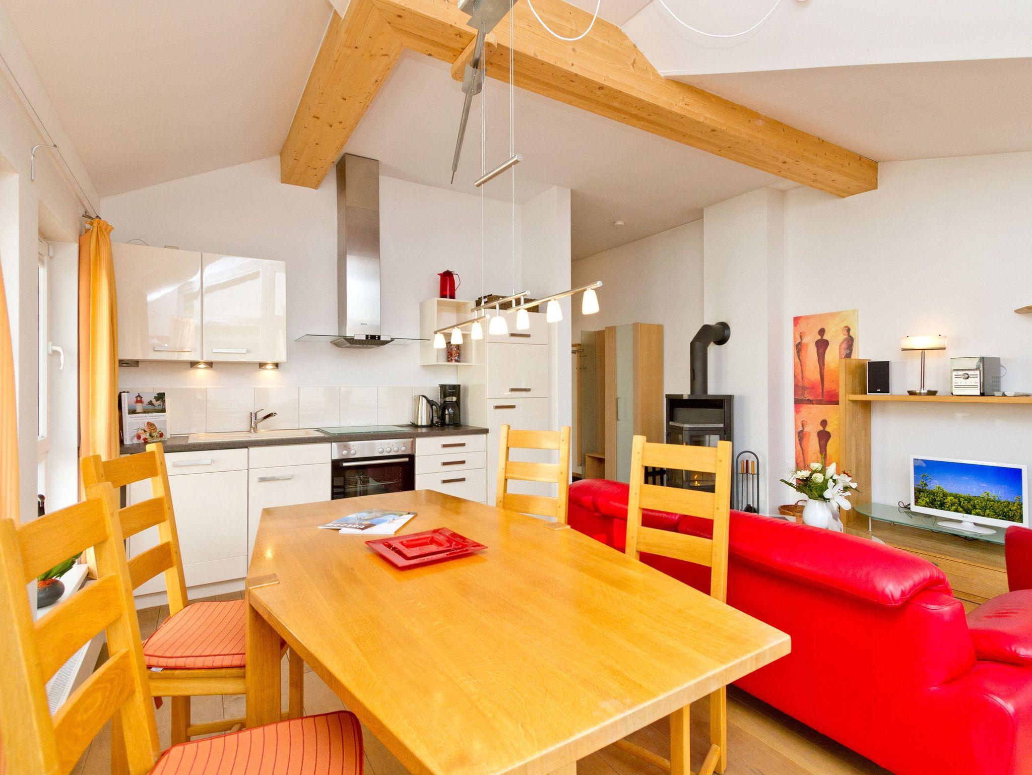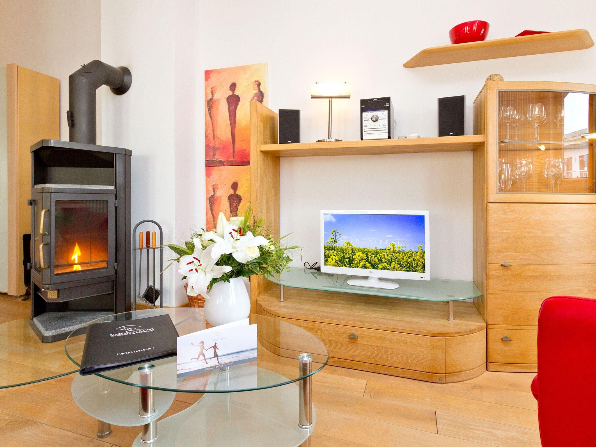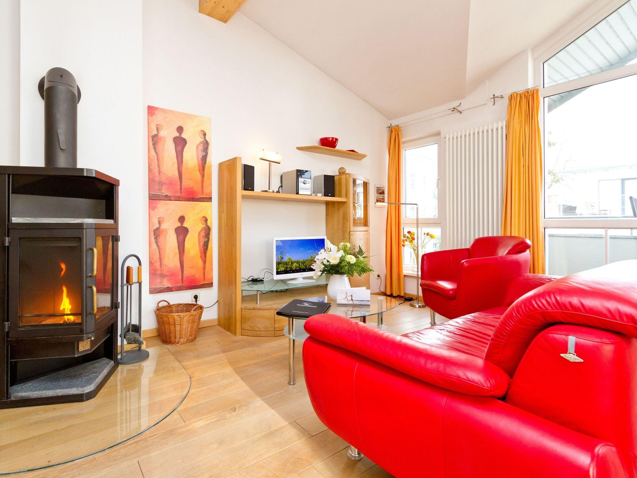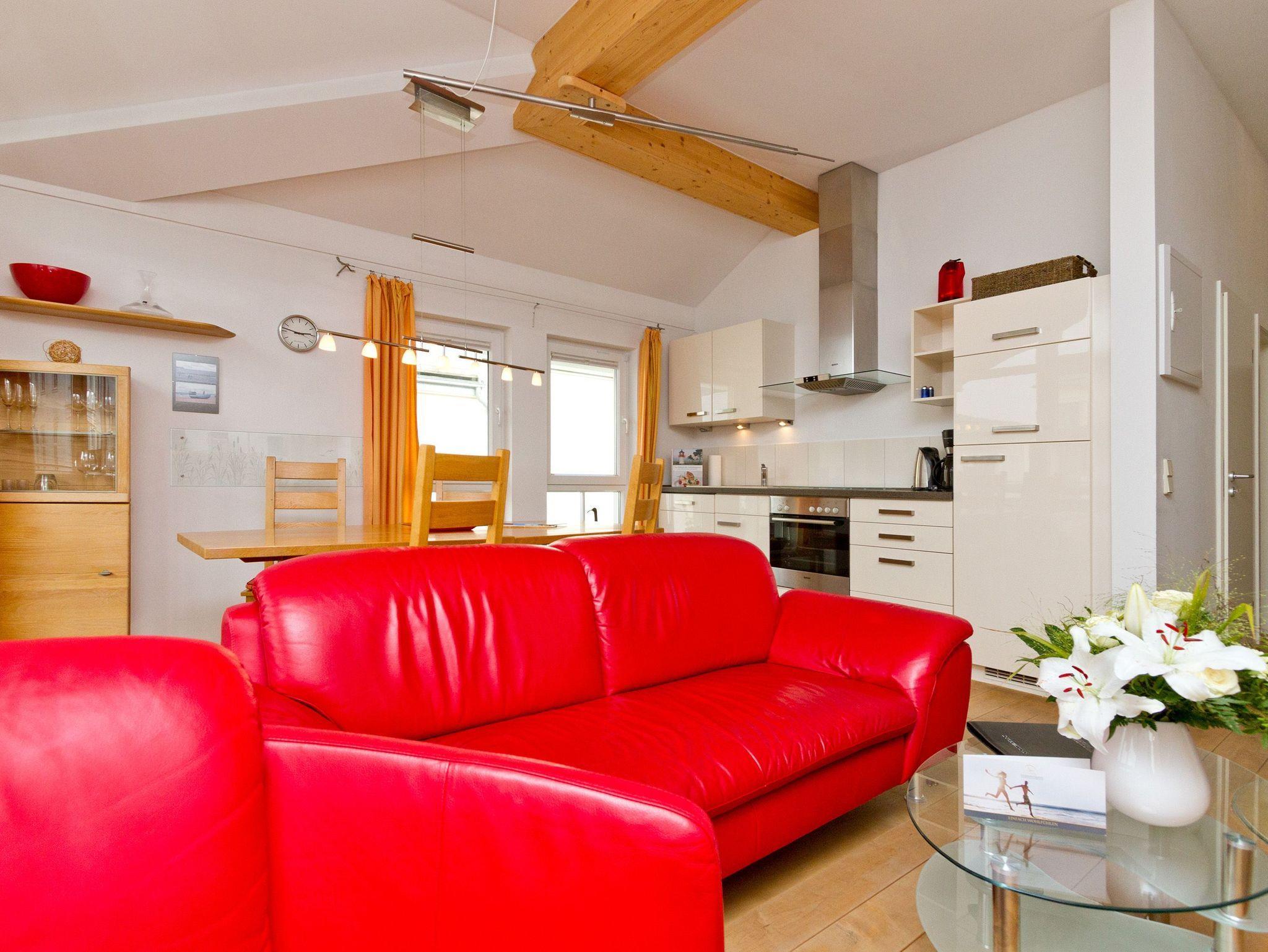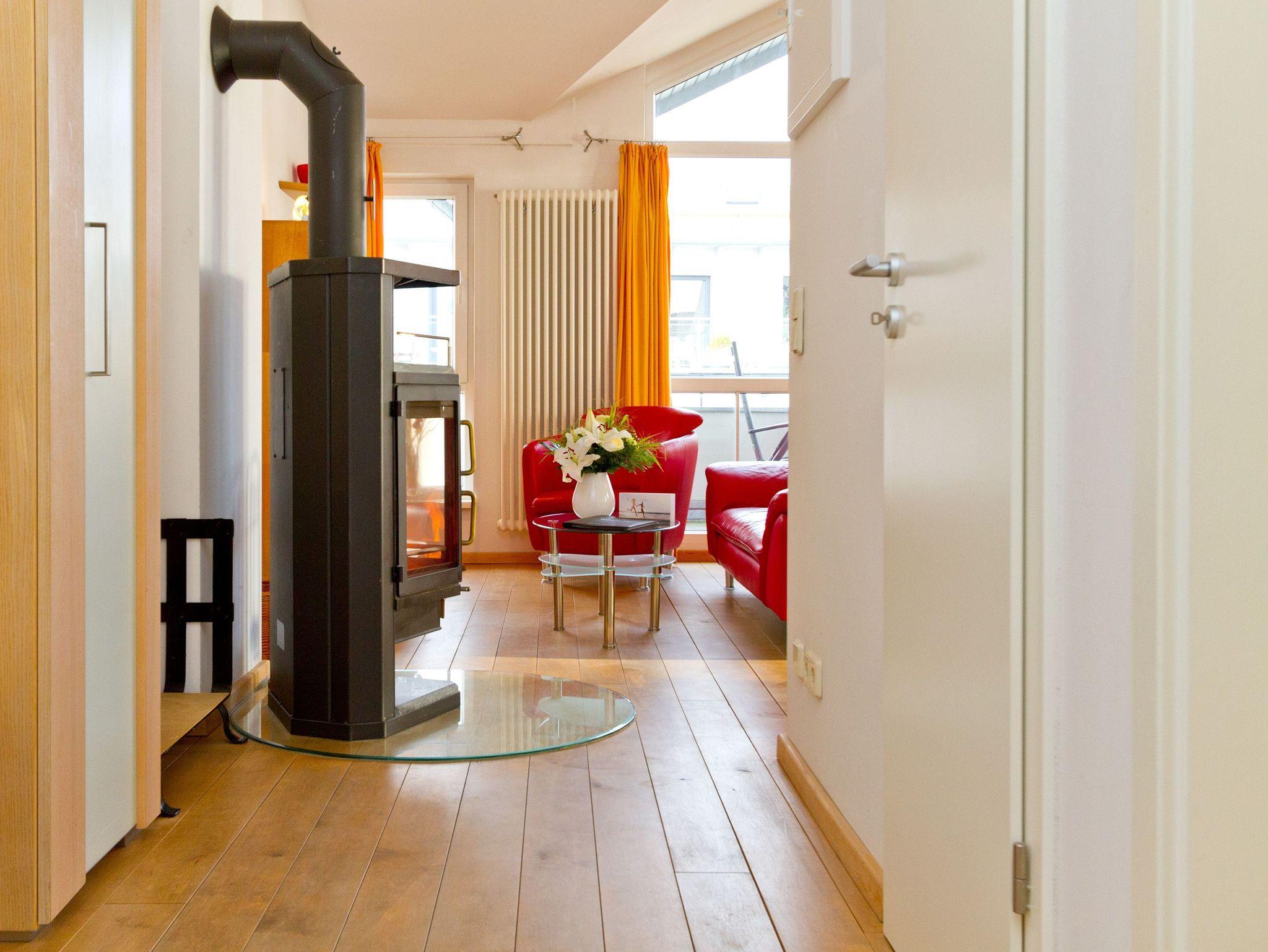 Genießen Sie Ihren Usedomurlaub in vollen Zügen. Die Ferienwohnung 14 im Obergeschoss der Residenz ist mit hochwertigen Holzmöbeln und einem schönen Dielenboden eingerichtet. Das stylische, rote Ledersofa mit Blick auf den Kaminofen wird sicher zu Ihrem Lieblingsplatz. Vielleicht aber auch der Balkon, von dem man sogar ein wenig die Ostsee sieht. Das Schlafzimmer ist mit einem Doppelbett ausgestattet und verfügt über einen eigenen Balkon, auf dem man windgeschützt in der Morgensonne frühstückt. Ergänzt wird die Wohnung durch die integrierte, voll ausgestattete Küchenzeile und das Bad mit Dusche und Badewanne. Auf Wunsch stellen wir für unsere kleinen Gäste ein Kinderreisebett (ohne zusätzliche Matratze [&] Bettzeug) und einen Kinderhochstuhl ( gegen einen Aufpreis) zur Verfügung. Das Wäschepaket ( Bettwäsche [&] Handtücher) wird bei Buchung automatisch dazu gebucht.