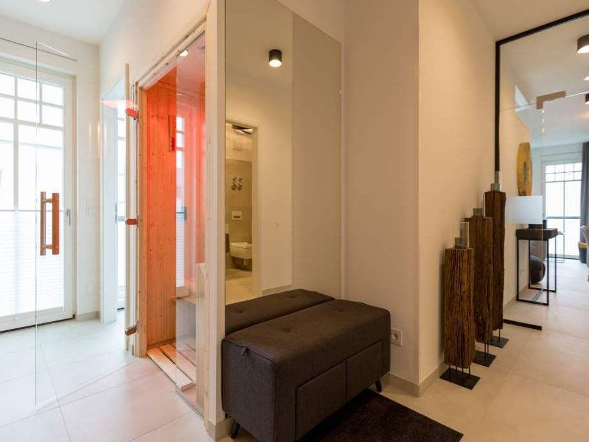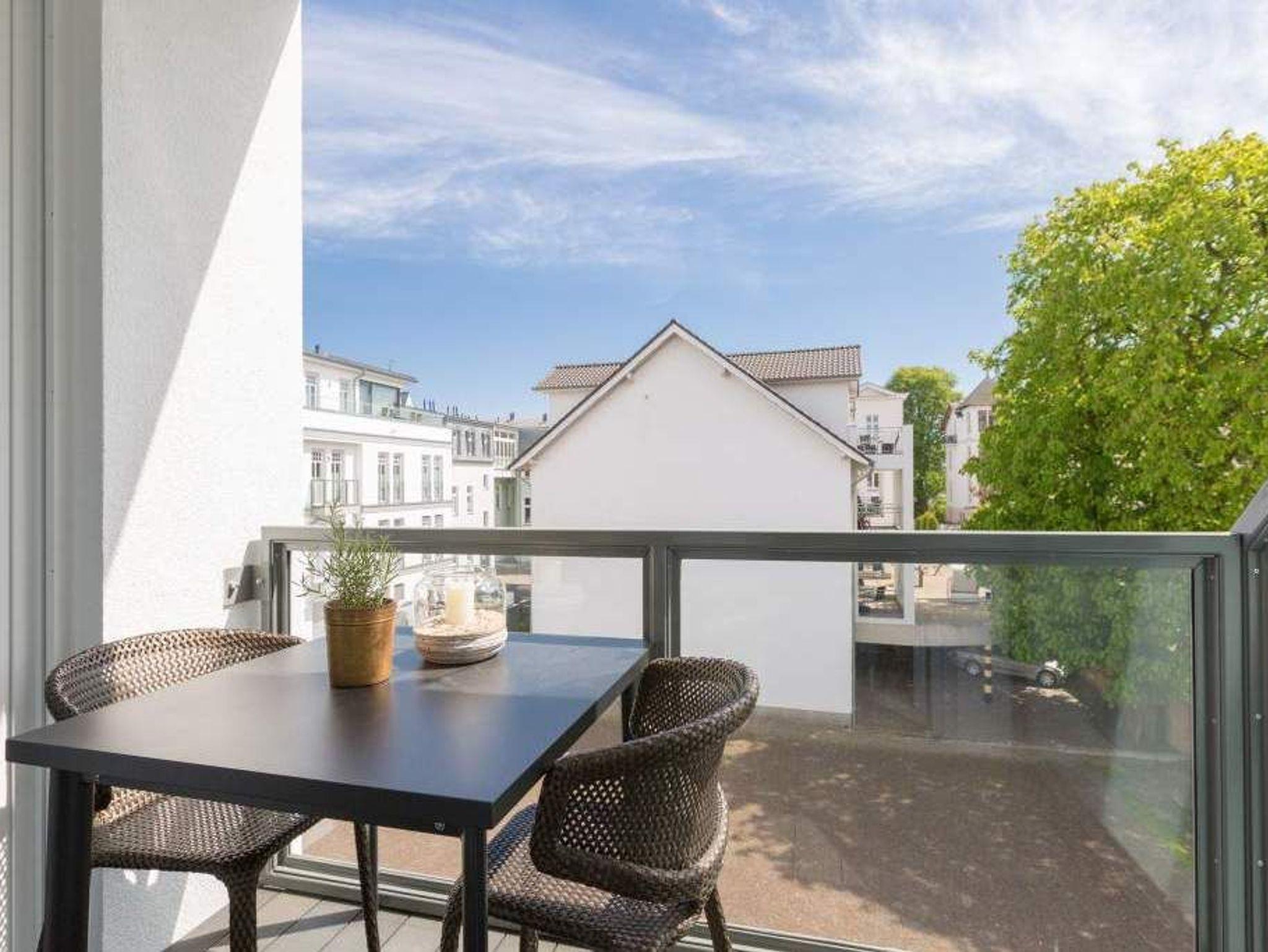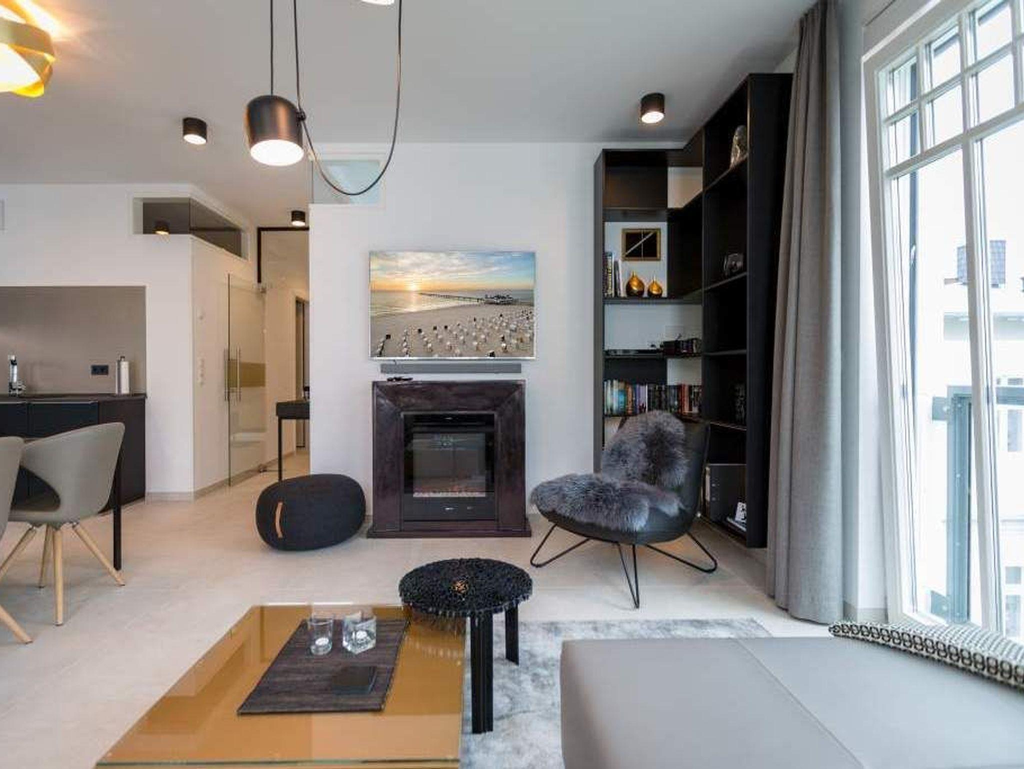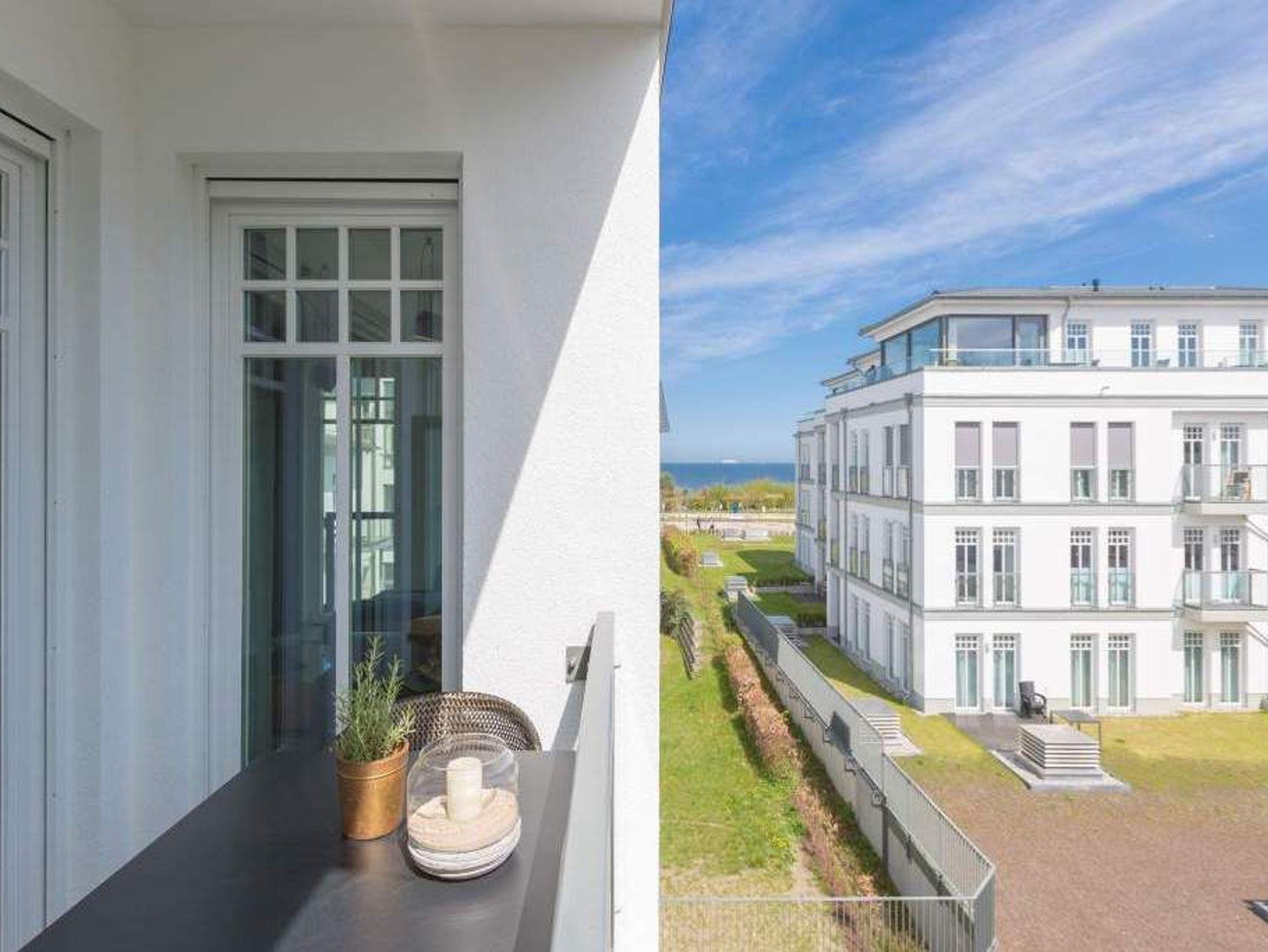Im zweiten Oberschoss des Westendpalais zur Seeseite genießen Sie nicht nur einen herrlichen Blick auf die Ostsee, sondern es erwartet Sie zudem ein Luxusquartier. Konsequent, bis ins kleinste Detail durchdacht, offeriert sich Ihnen diese luxuriöse 2-Raum-Ferienwohnung auf großzügigen 70 qm (buchbar für 2 Personen [&] 1 Kleinkind bis 3 Jahre im Kinderreisebett). Eine Lounge von Rolf Benz, ein Essplatz von Molteni [&] C. mit Tonon Chairs, Stoffe von Gucci, Leuchten von Marchetti, Möbel von Lambert, Außenmöbel von Dedon, kombiniert mit auserlesenen Accessoires machen dieses Urlaubsnest zu einer Besonderheit. Für Multimedia ist gesorgt ? zwei große Flat-Screen-TV´s und Blue-Ray-Player lassen nichts vermissen. Der traumhafte Süd/Ost Balkon bietet Ihnen bereits zum Frühstück die Gelegenheit, die Kraft der Sonne zu tanken. Eine gemütliche Atmosphäre in der kalten Jahreszeit erweckt der Elektrokamin durch einen beruhigenden Blick in das Feuer. Das großzügige Schlafzimmer (abdunkelbar) mit Boxspring-Doppelbett inkl. Meerblick sogar im Liegen und die Diele mit geräumigem Einbauschrank befinden sich im westlichen Teil der Wohnung. Dieser Bereich wurde zusätzlich durch eine Glastür vom offenen Apartment abgetrennt und bietet Ihnen jederzeit die Möglichkeit zum Zurückziehen und Abschalten.[nbsp] Erleben Sie hier, wie unkompliziert und komfortabel sich das eigene Bad mit besonderen Wasseranwendungen zum Home Spa aufwerten lässt ? und so zu einem wesentlichen Bestandteil Ihrer persönlichen Gesundheits- und Wellness-Strategie wird. Durch das exklusive Konzept-Duschbad mit Dornbracht-Armaturen, Waterfall-Schwallbrause, Water-Points Seitenbrausen, großer ebenerdiger Walk-In Dusche, Keuco Design Badmöbeln, puristische Formen bei Waschtisch und WC und einer angrenzenden Sauna mit Farblichtanwendung möchten wir Ihre Urlaubserwartungen an Wellness und Gesundheit (Healthness) erfüllen. Zudem bieten wir Ihnen vital [&] köstlich exklusiv in diesem Appartement belebtes GRANDER Trinkwasser für mehr Lebensenergie und gesteigertes Wohlbefinden an. Für Ihren Komfort sind die Betten bei der Anreise bezogen und Handtücher liegen bereit. Ein überaus großzügiger Pkw-Stellplatz steht in der Tiefgarage zur Verfügung. Eine Waschmaschine in der Wohnung ist gegen Gebühr nutzbar. Auf Wunsch stellen wir ein Kinderreisebett (ohne zusätzliche Matratze [&] Bettzeug) und einen Kinderhochstuhl gegen einen Aufpreis zur Verfügung.