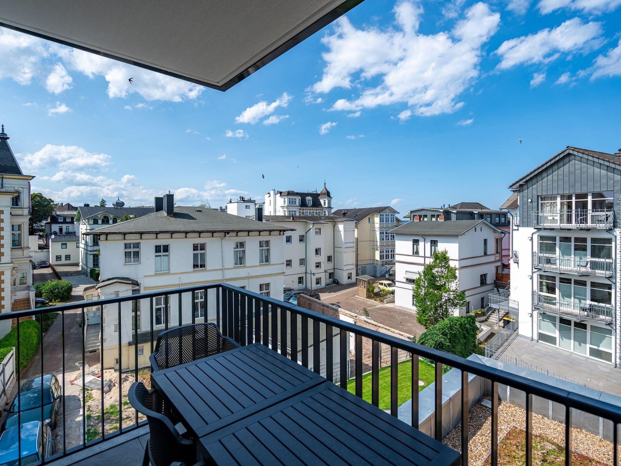 Die 2024 fertig gestellte Strandterrasse liegt direkt an der belebten Strandpromenade und bietet einen einzigartigen Ausblick auf die Grand Dame der historischen Seebrücken sowie die historische Konzertmuschel, einem beliebten Treffpunkt für Kunst und Kultur. Dahinter liegt die Ostsee ? ein Panorama, das zu den schönsten in den Kaiserbädern gehört. Es ist wie das Abtauchen in eine andere Zeit. In eine Zeit, in der man mit Stock, Sonnenschirm und Hut fürs ?Sehen und gesehen werden? über die Promenade schlenderte; aber auch in eine Zeit, in der ? damals wie heute ? Zeit einmal für eine kurze Weile keine Rolle spielt. Weil man angekommen ist im Loslassen, Entspannen und Genießen. Es ist dieser besondere Geruch nach Meeresluft und Freiheit, der in Erinnerung bleibt. Dazu die Bilder, die man mitnimmt. Von langen Strandspaziergängen, vom Lachen in fröhlich schäumenden Ostseewellen, von der Zeit in einem wunderschönen Urlaubsdomizil. Denn genau das ist die Strandterrasse mit ihren 56 modernen und exklusiven Ferienappartements direkt gegenüber der Ahlbecker Seebrücke. Die Ein-, Zwei- oder Dreizimmerwohnungen ? zwischen 40 und 70 Quadratmeter groß ? sind von einer Innenarchitektin gemeinsam mit unserem Erfahrungsschatz an Gästewünschen mit viel Liebe zum Detail und ganz individuell konzipiert worden. Entspannung und Wohlfühlen stehen an erster Stelle. Alles ist aufeinander abgestimmt und sorgt für eine gemütliche Atmosphäre. Wählen Sie zwischen einem Domizil in einem hellen, sandfarbenen Designkonzept oder einem Appartement mit anthrazitfarbenen Farbakzenten. Alle Appartements verfügen gleichermaßen über eine stilvolle und komfortable Einrichtung, die passgenau angefertigt worden ist, sowie über moderne Küchen und Bäder. Jedem Schlafzimmer ist ein eigenes Bad mit Dusche zugeordnet (außer App. B4.5). Die Appartements besitzen fast alle einen Balkon ? viele schauen sogar zur Ostsee hinaus. Die meisten Feriendomizile haben einen Elektrokamin und Infrarotsaunen. Im Erdgeschoss befindet sich ein separater Gemeinschaftsraum für Fahrräder. Außerdem besteht die Möglichkeit, im Gemeinschaftswaschraum 2 Waschmaschinen [&] Trockner zu nutzen. Ergänzt wird das Angebot durch eine Gemeinschaftssauna, die täglich von 11:00 bis 22:00 Uhr nutzbar ist. In der Tiefgarage (Einfahrtshöhe 2,03 Meter) steht für jede Wohnung 1 Pkw-Stellplatz zur Verfügung. Ist alles zur Zufriedenheit untergebracht? Dann kann der Urlaub ja beginnen. Und beim Blick vom Balkon über die Ostsee treffen sich zum Sonnenaufgang das Heute und das Damals. Gelassenheit legt sich beim Gang hinunter an den Strand auf die Seele. Jetzt darf die Zeit stehenbleiben.