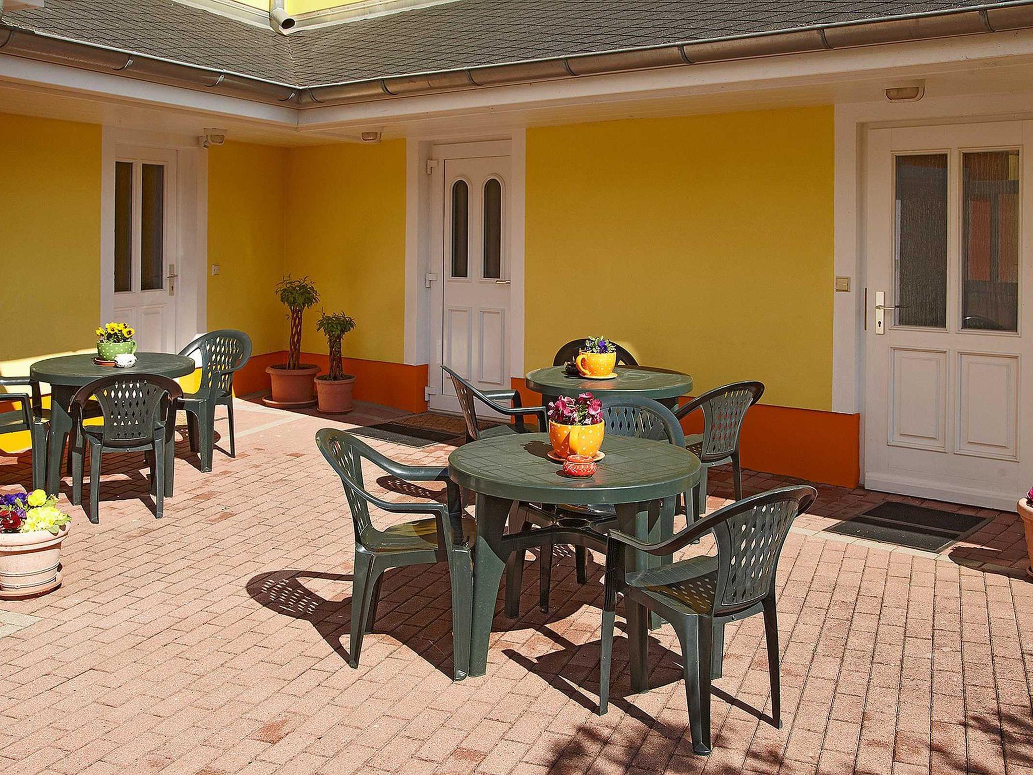 Eine Sitzecke vor dem Eingangsbereich rundet diese schöne Ferienwohnung ab.