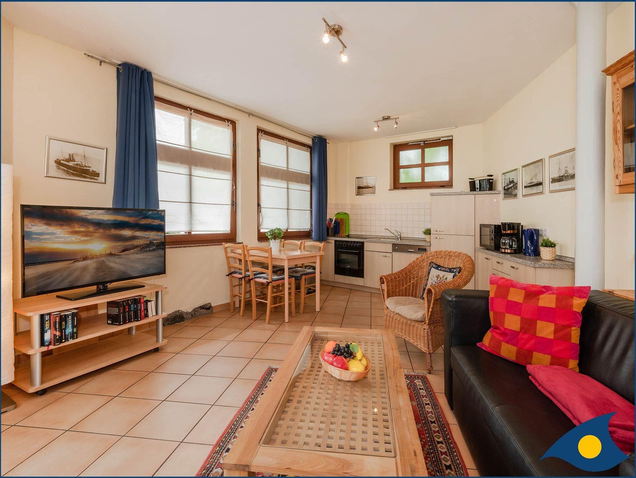 Die Wohnung 1 befindet sich im Erdgeschoss des Hauses Ricarda mit separatem Eingang. Die Wohnung ist rollstuhlgeeignet. Sie ist eine komplett ausgestattete 47m² große 2-Raum-Ferienwohnungen mit offener Küche und für bis zu 4 Personen ausgelegt.