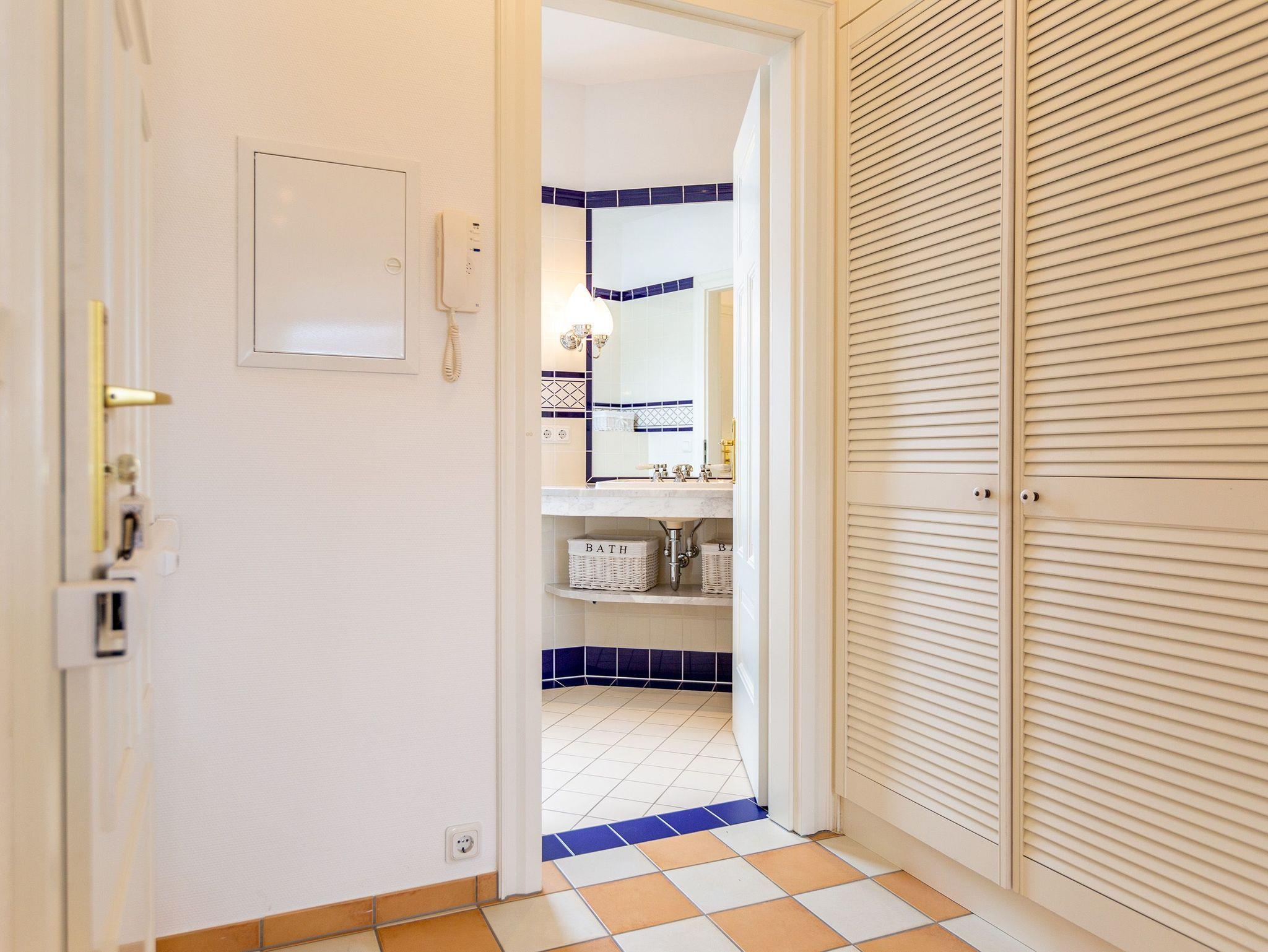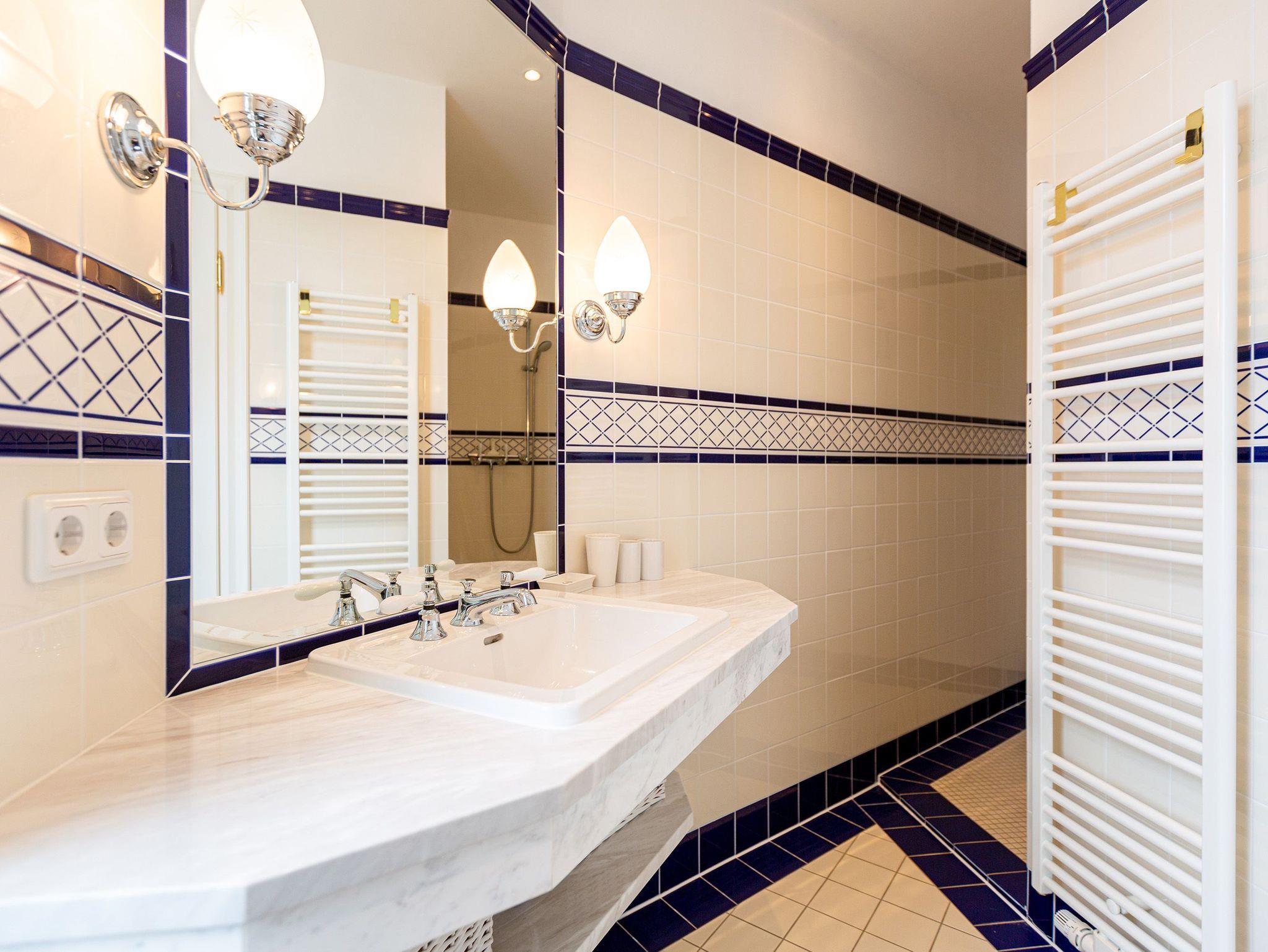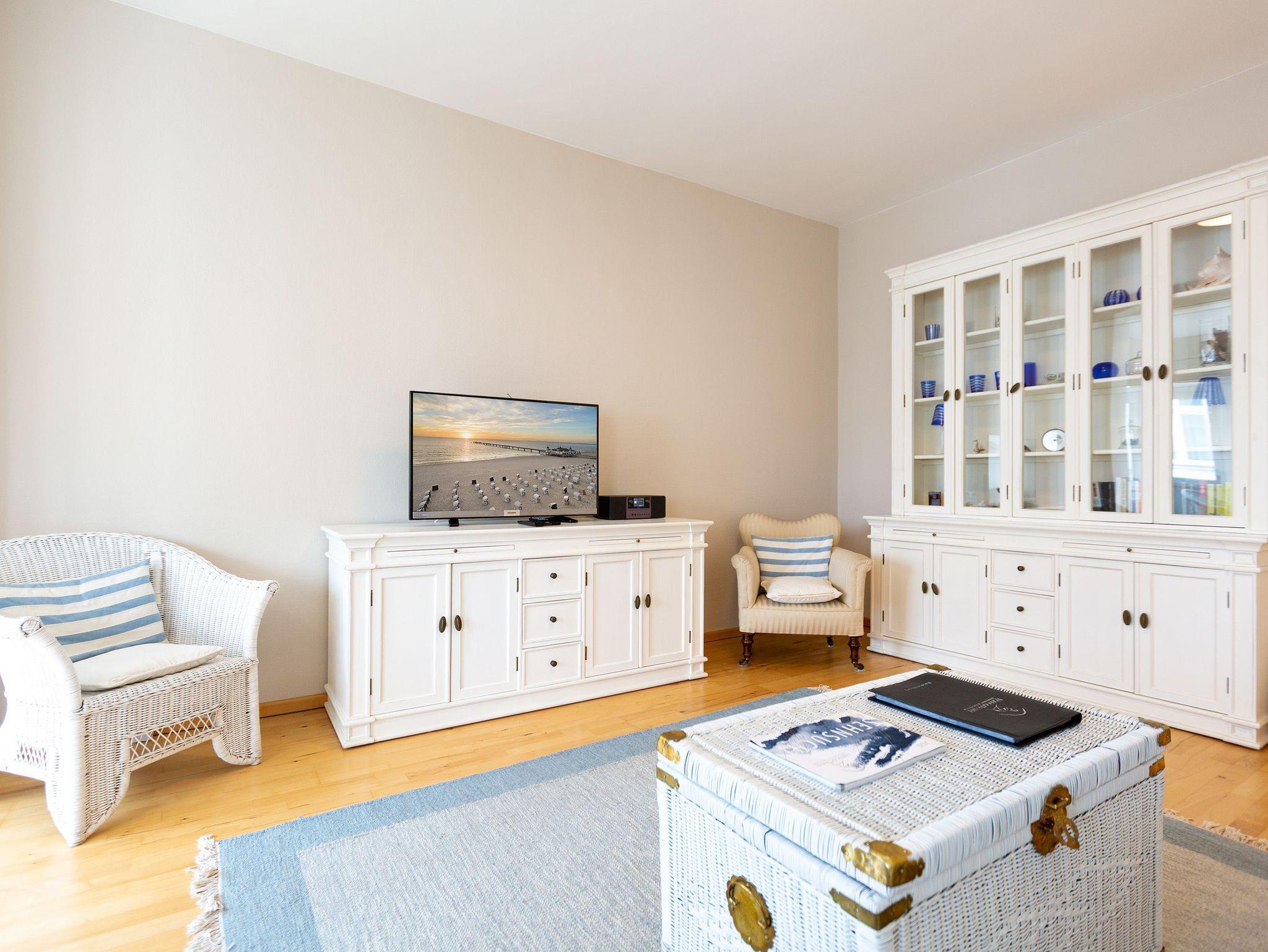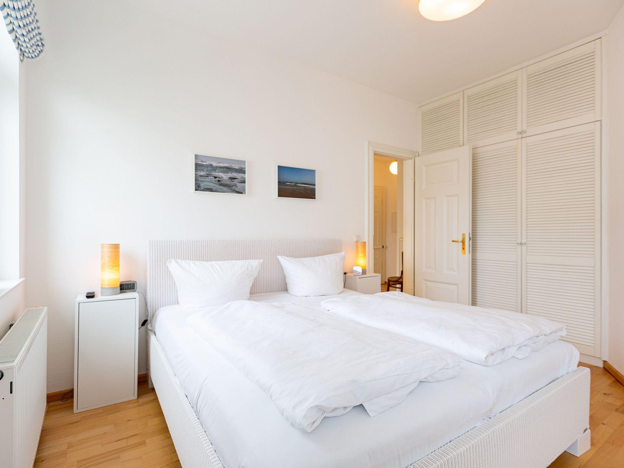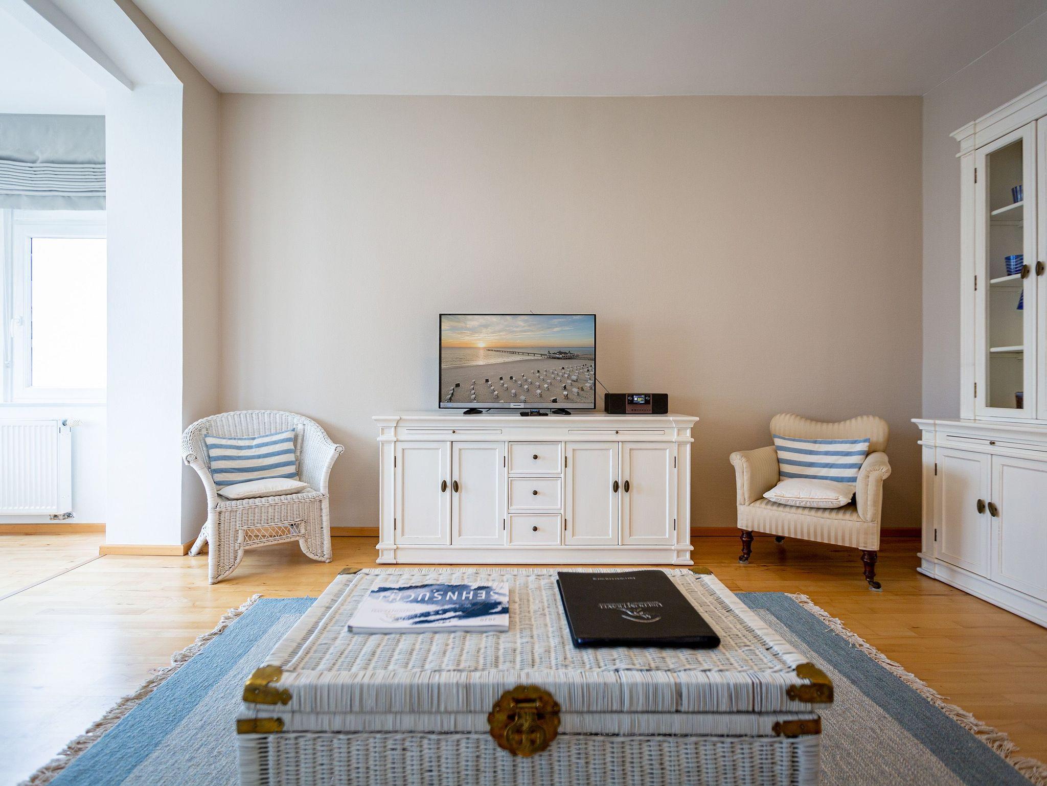 Leichtigkeit und Klarheit strahlt das Appartement Nummer 8 in der 1. Etage aus. Mit viel Liebe zum Detail sind die 57 Quadratmeter eingerichtet, bieten Platz für zwei Personen plus eine Aufbettung (eventuell für ein Kind bis 15 Jahre) auf dem Schlafsofa. Lagom nennen es die Schweden, wenn sich alles, womit man sich umgibt, in einer harmonischen Balance befindet. Das in skandinavischem Landhausstil eingerichtete Zwei-Zimmer-Appartement empfängt Ostseeliebhaber mit genau diesem Lagom. Lichtdurchflutet ist das geräumige Wohnzimmer mit der offenen Loggia, von der aus Sie sogar seitlichen Meerblick haben. Viel Weiß herrscht vor ? kombiniert mit maritimen Farbakzenten und maritimen Accessoires. Das bequeme Sofa, das zu einer Schlafcouch umfunktioniert werden kann, lädt zum Entspannen ein. Ein großer Flat-TV mit DVD-Player gehört zur Ausstattung des Raumes dazu. In der glasumrandete Veranda befindet sich ein schöner Essplatz für drei Personen. Die Küche ist voll ausgestattet mit Herd, Geschirrspüler, Kühl-Gefrierschrank, Kaffeevollautomat, Mikrowelle und Wasserkocher. Auch Geschirr finden Sie in den Schränken. Ein gemütlicher Rückzugsort ist das Schlafzimmer mit großem Doppelbett (1,80 m x 2,00 m). Passend zum mondänen Charme der alten Bädervilla ist die Ausstattung des Tageslichtbades äußerst schick und nobel. Eine ebenerdige Dusche, die viel Platz zum ausgiebigen Berieseln bietet, ein großzügiger Waschtisch, WC und Bidet gehören dazu. Handtücher liegen für Sie bei Anreise bereit. Und auch das Bett ist bezogen. Das WLAN ist kostenfrei und in der Tiefgarage ist für Sie der Stellplatz Nummer 8 reserviert.