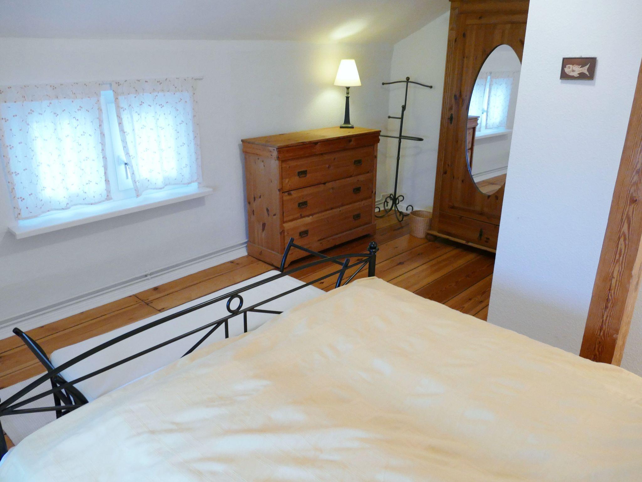 Genießen Sie Ihren Urlaub in unserer charmanten Dachgeschosswohnung mit Meerblick im 2. Obergeschoss. Die liebevoll eingerichtete Nichtraucherwohnung bietet auf drei Zimmern - Wohnzimmer mit offener Küche, Schlafzimmer mit Doppelbett sowie Gästezimmer mit Schlafcouch - ausreichend Platz für Paare, Familien oder Freunde. Die gesamte Wohnung ist mit originalen Holzdielen aus der Gründerzeit, hochwertigen Massivholzmöbeln und stilvollen Rattanmöbeln ausgestattet, was ihr ein besonderes, wohnliches Flair verleiht. In der modernen Küchenzeile finden Sie alles, was Sie im Urlaub benötigen: Herd, Backofen, Spülmaschine, Kühlschrank und Mikrowelle. Das gemütliche Wohnzimmer lädt zum Entspannen ein - ausgestattet mit Fernseher und CD-Player. Auch eine Waschmaschine steht Ihnen direkt in der Wohnung zur Verfügung. Ein eigener Parkplatz gehört zur Ferienwohnung, sodass Sie Ihr Auto bequem und sicher abstellen können. Für Familien bieten wir auf Anfrage Kinderbett und Hochstuhl kostenlos an. Bettwäsche und Handtücher können gegen Aufpreis hinzugebucht werden.