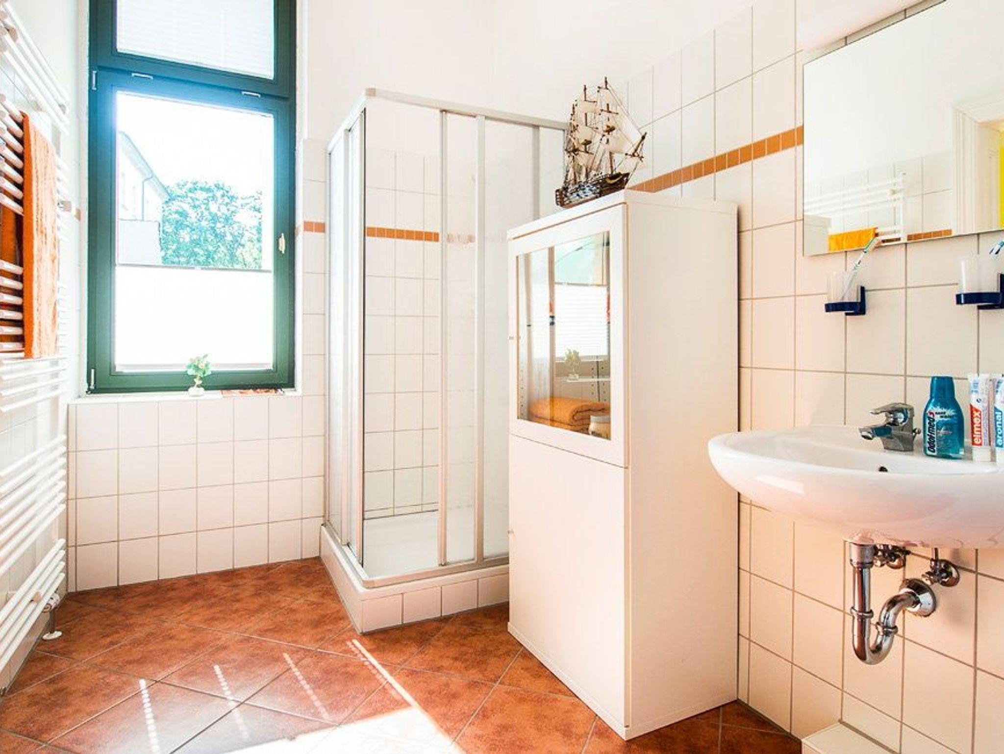 Damit Sie Ihre wohlverdiente Urlaubszeit bereits am Anreisetag in vollen Zügen genießen können,? haben wir das Bett für Sie und das für Ihre lieben Mitreisenden bereits bezogen und ein Duschtuch sowie ein kleines Handtuch bereitgelegt. Beginnen Sie den Urlaubstag mit frischer Ostseeluft bei einem Kaffee auf dem angrenzenden und sonnigen Balkon. Das großzügige Badezimmer ist mit Dusche, Waschtisch, Handtuchheizkörper und einem Haarfön ausgestattet.
