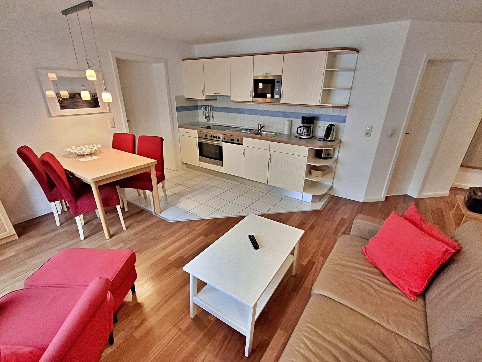 Die freundliche 3-Zimmer-Wohnung Uferschnepfe im 2. Oberschoss mit Balkon für max. 4 Erwachsene und 1 Kind bis 14 Jahre befindet im Nebengebäude der stilvoll restaurierten Villa Ahlbeck - nur wenige Schritte von der Promenade und dem Strand entfernt. Im Wohnbereich befinden sich neben der gemütlichen Couch auch ein Sessel mit passendem Fußhocker sowie ein Esstisch mit 4 Stühlen. Das Highlight der Wohnung ist der Balkon in Nord-Ost-Ausrichtung, wo Sie bei schönem Wetter bereits morgens Ihren Kaffee genießen oder den Abend bei einem Glas Wein ausklingen lassen können. Die moderne Küchenzeile mit Ceranherd, Backofen, Geschirrspüler, Mikrowelle, Kaffeemaschine, Wasserkocher und Toaster lässt keine Wünsche offen. Für die Unterhaltung sorgen ein Flachbild-TV, Radio-CD-Player und kostenfreies W-LAN. Die beiden Schlafzimmer verfügen jeweils über ein Doppelbett und das Badezimmer hat DU/WC.