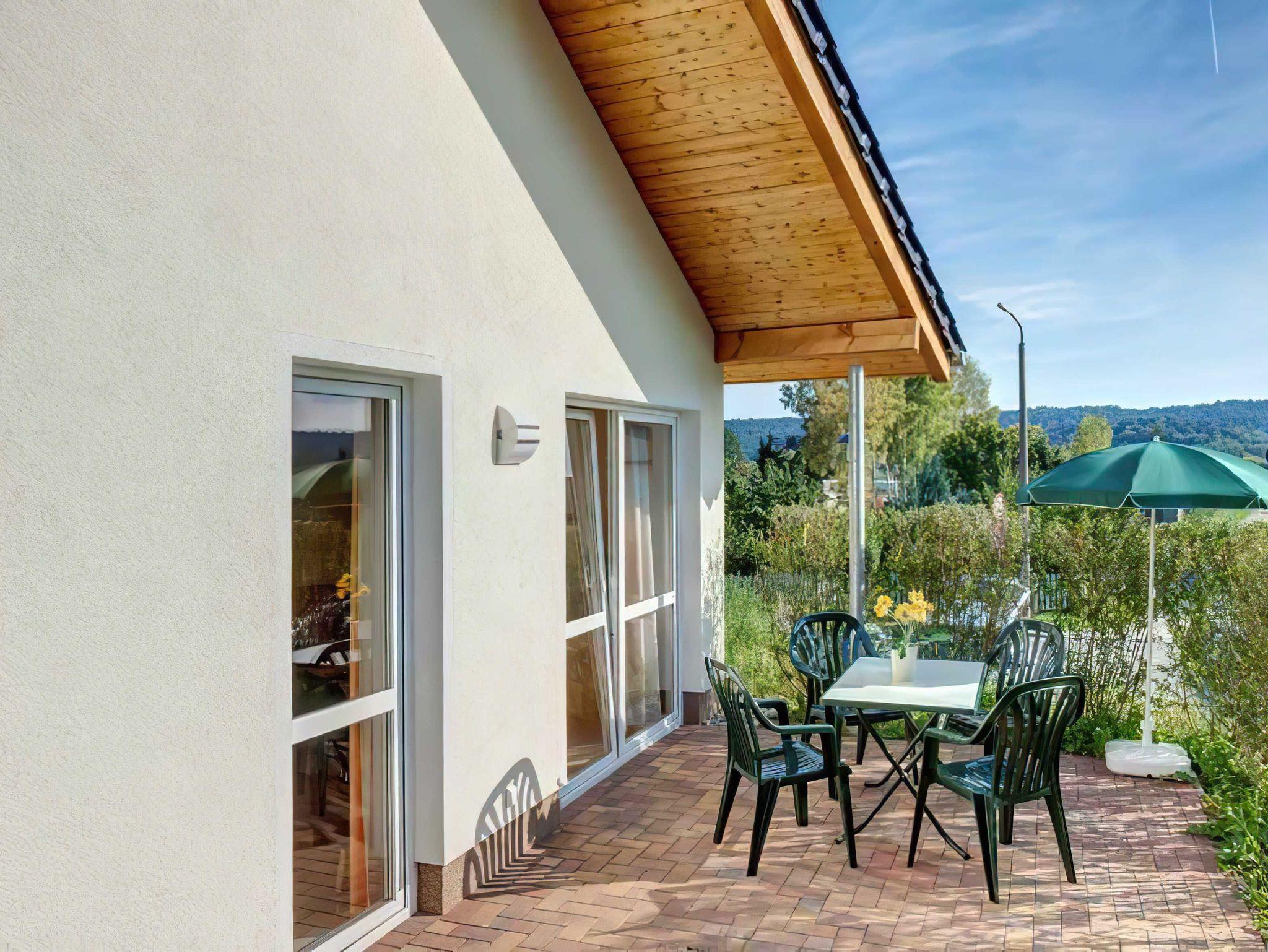 2 Etagen, ca. 54 m² (4 Personen) Zur Ausstattung gehören ein Schlafzimmer mit Doppeltbett und ein Schlafzimmer mit 2 Einzelbetten. Zur weiteren Ausstattung gehören ein Wohnzimmer mit integrierter vollausgestatteter Küche (Geschirrspüler, Ceranherd mit Backofen, Mikrowelle, Kaffeemaschine) einem Bad mit Dusche/WC und einer großen Terrasse mit Sitzmöglichkeiten.