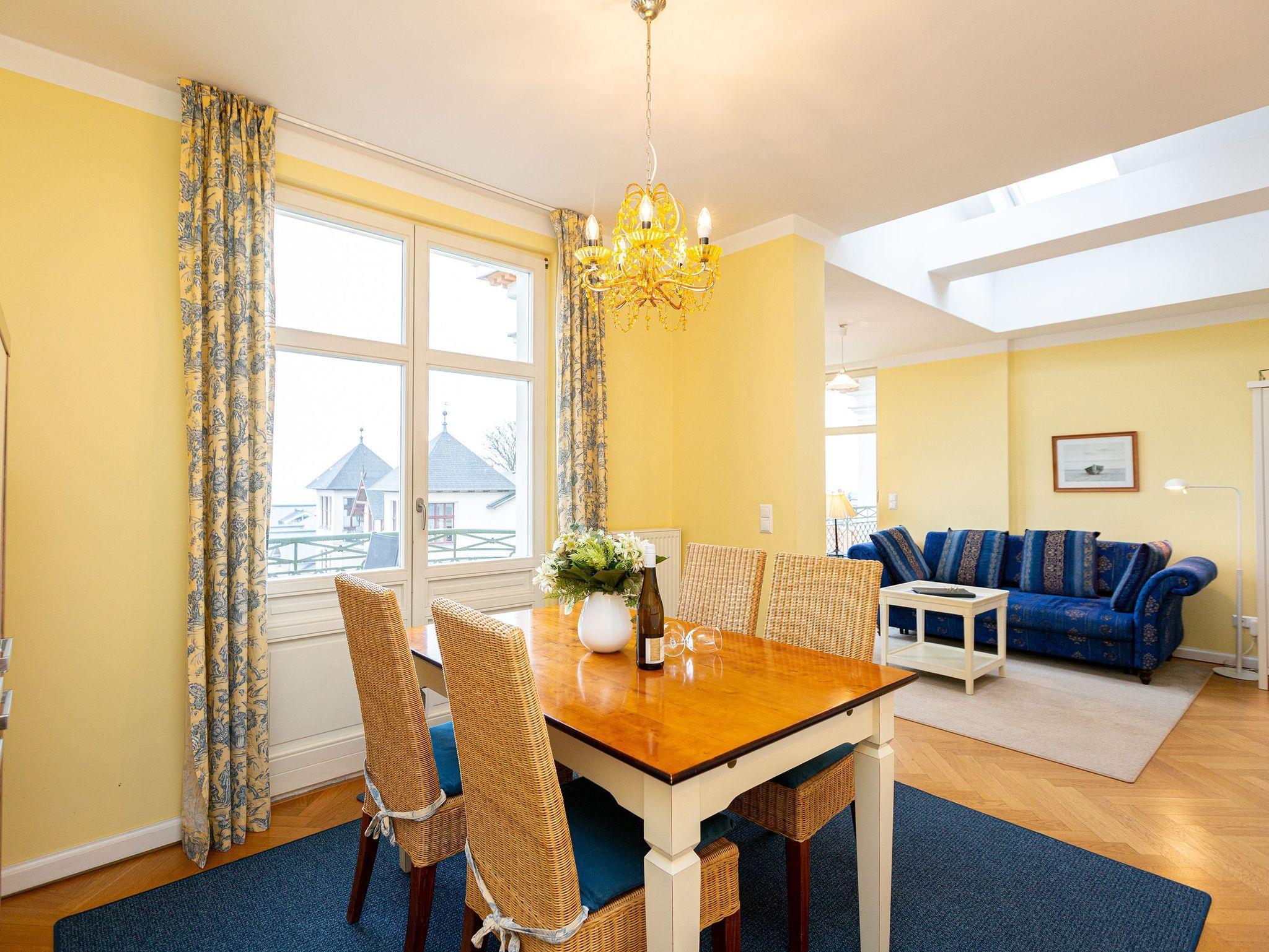 Mit diesem Domizil entscheiden Sie sich für eine exklusive Möglichkeit, Ihren Urlaub in den Kaiserbädern zu verbringen. Die 1898, im wilhelminischen Baustil errichtete Villa, präsentiert Ihnen seit Januar 2005 hochherrschaftliches Wohnen in ruhiger Lage. Großzügige Räumlichkeiten, historische Veranden und Balkone sorgen für rundherum gelungene Urlaubstage. Der große Saunabereich (kostenfrei) im Untergeschoss der Villa bietet Ihnen an kälteren Tagen eine angenehme Abwechslung. Für jede Wohnung steht ein PKW-Stellplatz am Haus zur Verfügung (größtenteils überdacht), für Fahrräder gibt es teilweise separate Abstellräume (abschließbar). Waschmaschine und Trockner (im Untergeschoss) im Haus sind gegen eine Gebühr nutzbar. Das WLAN-Netz steht kostenfrei zur Verfügung.