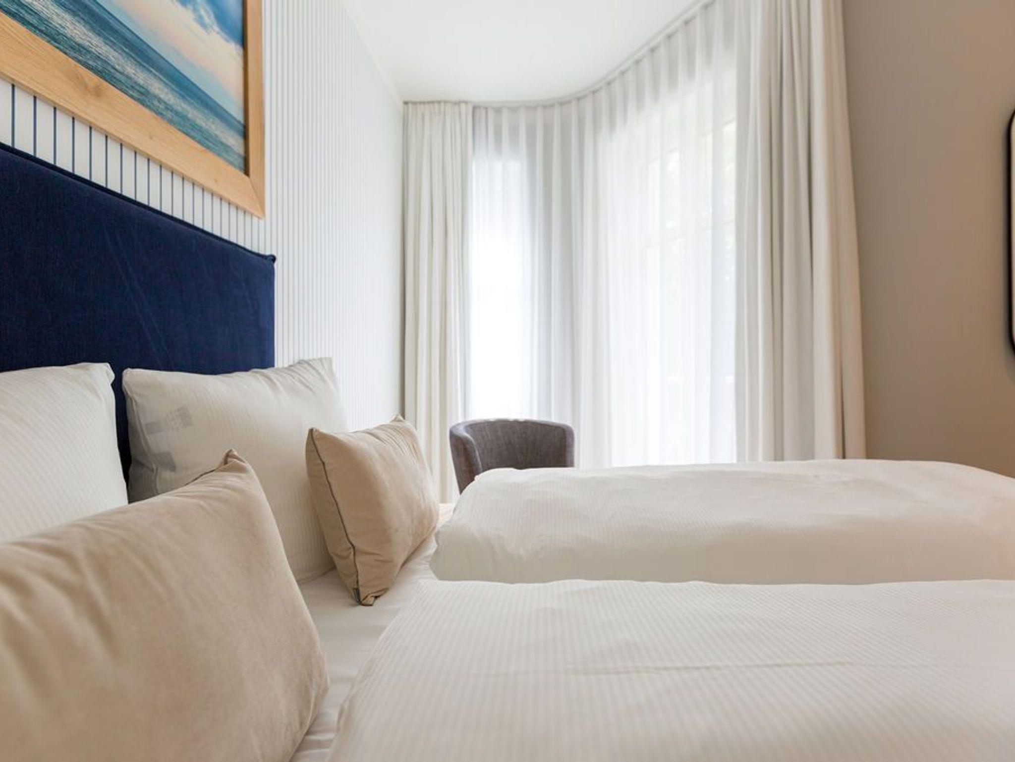 Mitten im Herzen des alten Seebades Ahlbeck wartet das neu gebaute Quartier gegenüber dem alten Kurpark nur darauf ostseehungrigen Auszeitlern mit einem exquisiten und komfortablen Domizil den ersehnten Urlaub zu verschönern. Und das in unmittelbarer Nähe zum Strand, zur Ostseeweite, zum Meeresrauschen. Nur ein paar Schritte entfernt ist das grenzenlose Meeres-Blau. Die berühmte Bäderarchitektur at its best umgibt das schmucke Ferienareal mit seinen 13 Appartements und verleiht dem Viertel mondänen Charme. Denn hier hat schon in den 1920er Jahren die Berliner Oberschicht die Sommerzeit verbracht. Das Quartier am Kurpark bietet mit seinen Zwei- und Drei-Zimmer-Appartements modernen Wohnkomfort in einem stylischen Ambiente. Jedes einzelne ist großzügig konzipiert und hat eine helle und gemütliche Atmosphäre. Die Einrichtungen sind geschmack- und stilvoll. Naturmaterialien und eine hochwertige Ausstattung zeichnen jedes einzelne Ferien-Appartement aus. In die Wohnungen in den Obergeschossen des Haupthauses gelangen Sie bequem mit dem Fahrstuhl. Alle Appartements besitzen Balkone oder Terrassen. Zur Ausstattung gehört zudem bei einigen eine vollausgestattete und hochwertige Küche, ein Kamin, eine Sauna, teilweise ein separates WC oder sogar Badezimmer sowie ein Tiefgaragenstellplatz (Tiefgarageneinfahrt/Höhe 2,05 m) . Aus den oberen Etagen haben Sie zum Teil Meerblick. Das an das Haupthaus angrenzende Gartenhaus verfügt über großzügig geschnittene Studios, die sich über zwei Etagen erstrecken. Wer nicht einfach nur eine Bleibe sucht, sondern sich im Urlaub mit Schönem umgeben möchte, findet im Quartier am Kurpark ein kleines Paradies auf Zeit.