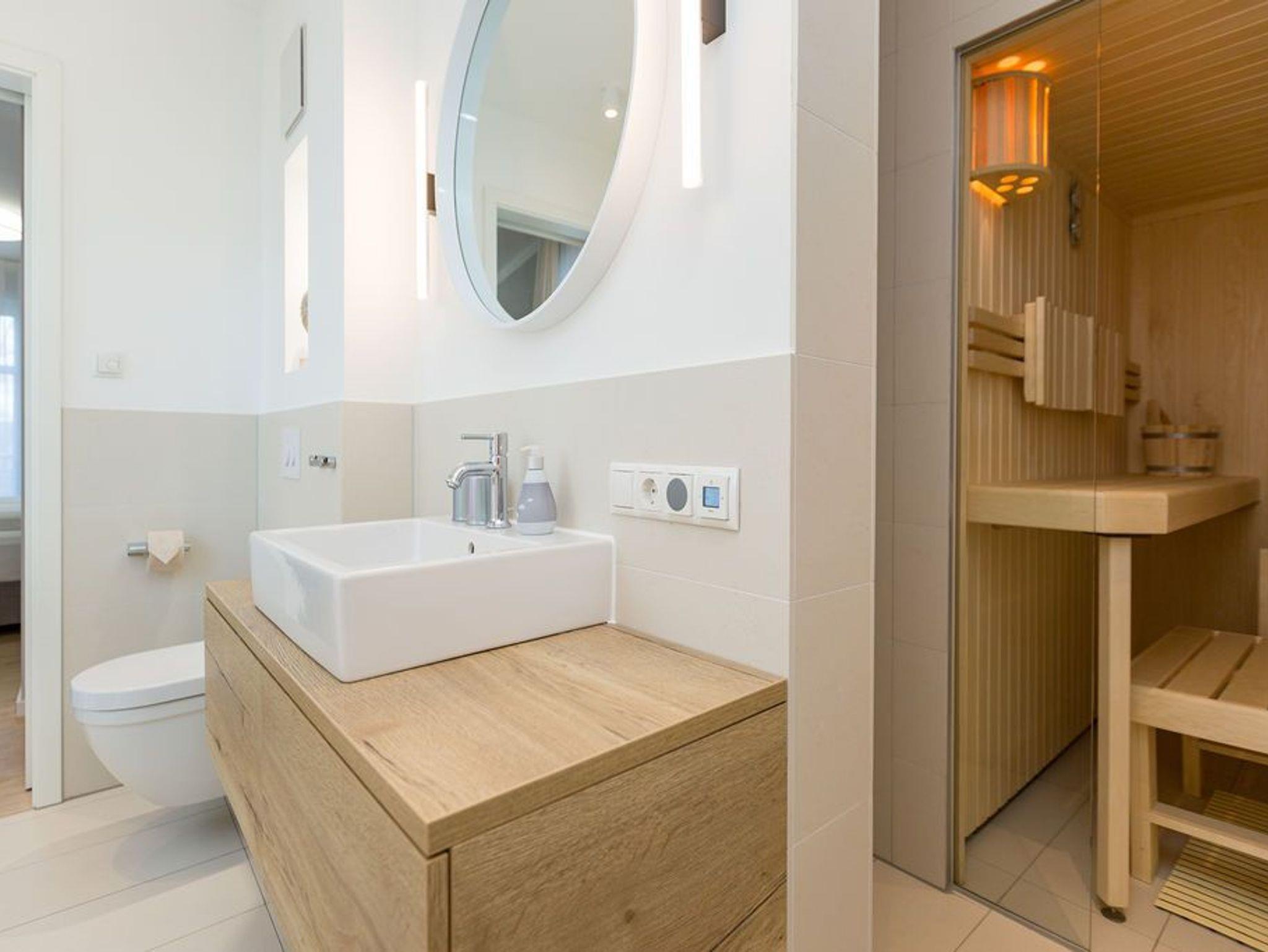 Die Räume - lichtdurchflutet, das Design - nordisch nobel: Für jeden, der ein geschmack- und stilvolles Urlaubszuhause an der Ostsee sucht, ist das Appartement Nummer 4 im ersten Obergeschoss genau das Richtige. Eine 74 Quadratmeter große Wohlfühlzone verteilt auf drei Zimmer wartet nur darauf, vier Urlaubssehnsüchtigen und einem Kleinkind bis zwei Jahre (im Kinderreisebett) ein unvergleichlich schönes und stylisches Domizil zu sein. Ein großes und geräumiges Wohnzimmer mit offener Küche, zwei Schlafzimmer, zwei Bädern und auch zwei Balkonen - da bleiben keine Urlaubswohnträume unerfüllt. Eine komfortable Sofalandschaft empfängt Auszeithungrige. Entspannen Sie vor dem Flammenspiel des 3-D-Gaskamins oder beim Schauen eines spannenden Films auf dem Flat-TV. Alles ist hell und freundlich. Der Design-Esstisch mit den Design-Stühlen lädt zum Schlemmen und gemeinsamen Zusammensitzen ein. Die dazu gehörige Küche ist mit hochwertigen Geräten der Marke Bosch voll ausgestattet. Induktionsherd, Mikrowelle, Geschirrspüler - alles Highend. Auch Geschirr ist in den Küchenschränken zu finden. Das Wohnzimmer hat einen Zugang zu einem der beiden Balkone in Richtung Nord-West. Wenn das Wetter es zulässt - was auf Usedom recht häufig der Fall ist - können Sie auch hier an den Gartenmöbeln entspannt dinieren. Der zweite Balkon in Richtung Süd-Ost ist von einem der beiden gemütlichen Schlafzimmer aus zugänglich. Maritimes Flair strahlen die beiden Zimmer aus. Je ein komfortables Boxspringdoppelbett (1,60 m x 2,00 m und 1,80 m x 2,00 m) schenkt erholsame Stunden. Jedes Schlafzimmer verfügt über einen Flat-TV und einen geräumigen Kleiderschrank. Das Master-Bad besitzt neben einer Dusche, Waschtisch und WC ein kleines Highlight. Eine Finnische Sauna heizt Ihnen an kühlen Tagen ordentlich ein. Das zweite Badezimmer hat ebenfalls eine Dusche, Waschtisch und WC. Wunderschöne Vintage-Fliesen geben ihm ein exklusives Ambiente. Zur Ausstattung der Wohnung gehört zudem ein Voll-Waschtrockner dazu. Um Handtücher oder das Beziehen der Betten, brauchen Sie sich nicht zu kümmern. Alles ist für Sie bei Anreise vorbereitet. Der Stellplatz Nummer 4 in der Tiefgarage ist für Sie reserviert.