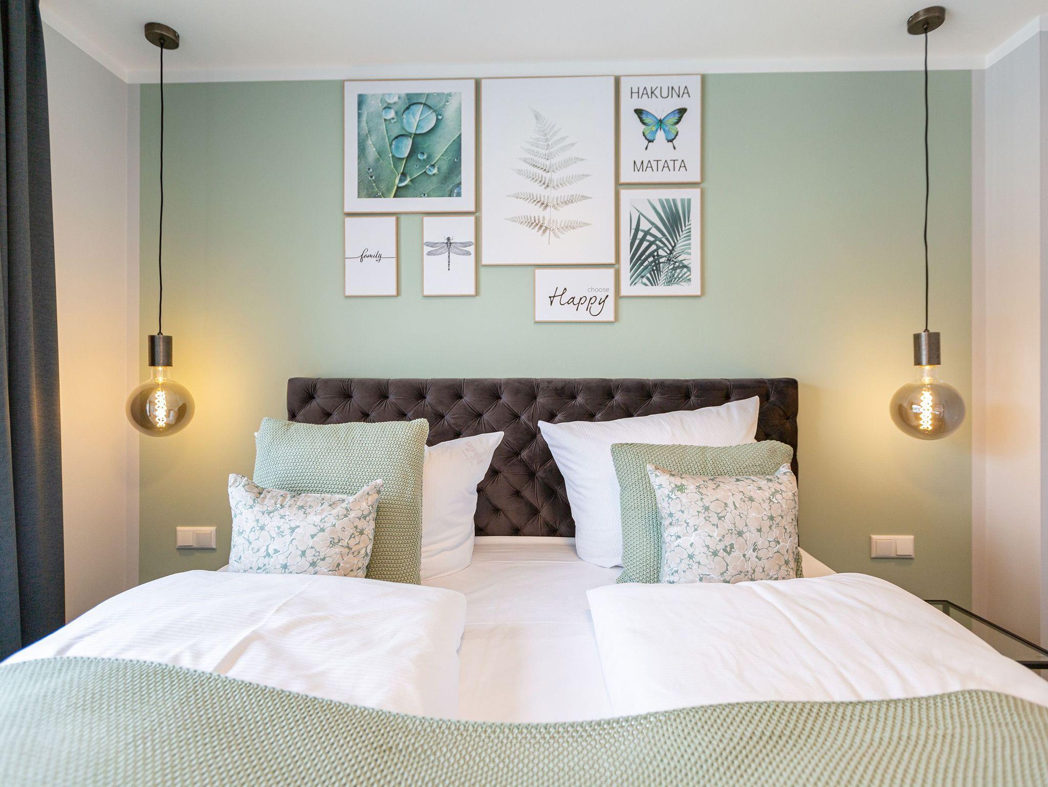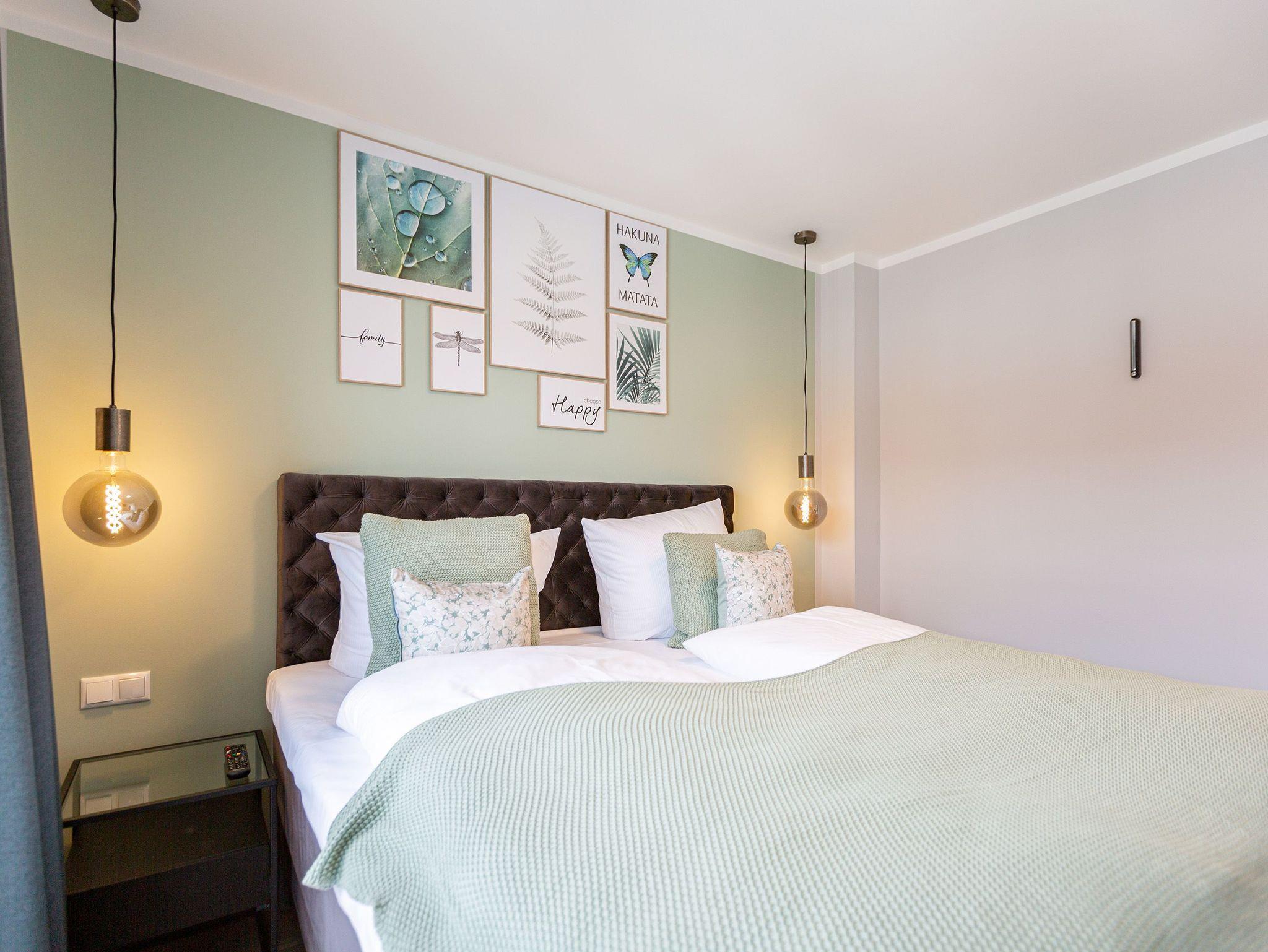 Das Appartement 11 unter dem Dach des Quartiers ist mit seinen 83 luftig hellen Quadratmetern etwas ganz Besonderes. Drei Zimmer für bis zu vier Personen und ein Kleinkind (im Kinderreisebett) finden hier Platz und Ruhe für eine entspannte Ostseezeit. Viel Gemütlichkeit und wohliger Komfort erwartet die Bewohner auf Zeit. Pastelltöne, modernes Design und Wohnkomfort gehen in dieser Wohnung Hand in Hand. Ein geräumiges Wohn-Esszimmer weiß, mit bequemen Möbeln in den richtigen Urlaubsmodus zu versetzen. Eine Sofa-Sessellandschaft, ein Flat-TV, ein schöner, großer Esstisch ? alles ist erlesen und ausgewählt. Ein Balkon lädt bei schönem Wetter dazu ein, viel Zeit an der frischen Seeluft zu verbringen - von hier aus hat man einen seitlichen Blick auf die Ostsee und auf die Ahlbecker Seebrücke. Die offene Küche ist voll ausgestattet, verfügt über einen Induktionsherd mit den passenden Töpfen, eine Spülmaschine, einen Toaster, eine Kaffeemaschine und Geschirr. Auch eine Waschmaschine ist vorhanden. Zwei Schlafzimmer laden mit ihren großen Boxspringdoppelbetten (1,80 m x 2,00 m) zum Kuscheln und Träumen ein. Jedes Schlafzimmer hat einen Schrank, eine Kommode und einen Flat-TV. Zwei Bäder mit Dusche und WC sorgen für entspannte Badzeiten. Handtücher liegen bereit und die Betten sind bei Anreise bereits bezogen. Freuen Sie sich dann noch auf einen Extra-Clou. Denn die Wohnung verfügt über eine wunderschöne Dachterrasse mit Sonnenliegen. Hier lässt sich ein Sommertag relaxed angehen. Zudem befindet sich auf der Terrasse der Zugang zu einer Sauna. Ihr kleiner Private SPA verfügt über eine Außendusche. So können Sie direkt aus der Wärme unter das kühle Nass springen. In der Tiefgarage gibt es für Ihr Auto 2 Stellplätze hintereinander und einen separaten Fahrradraum. Das WLAN ist kostenfrei nutzbar.